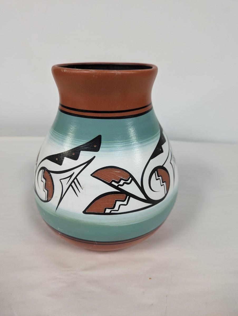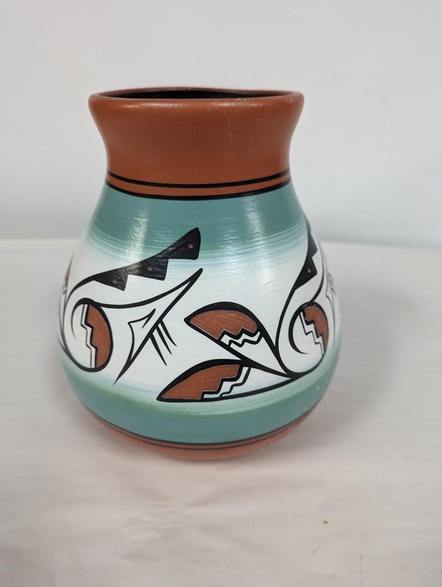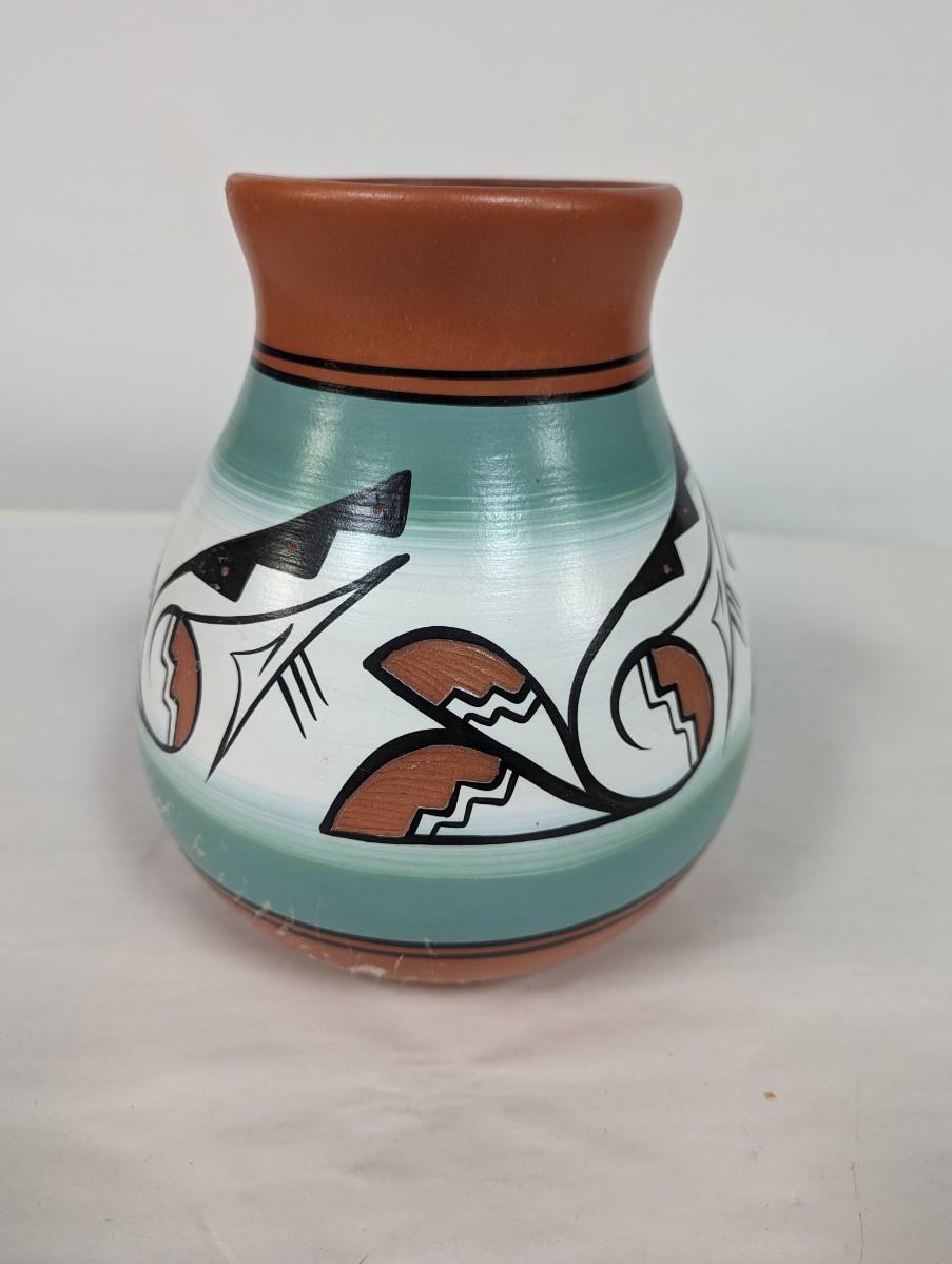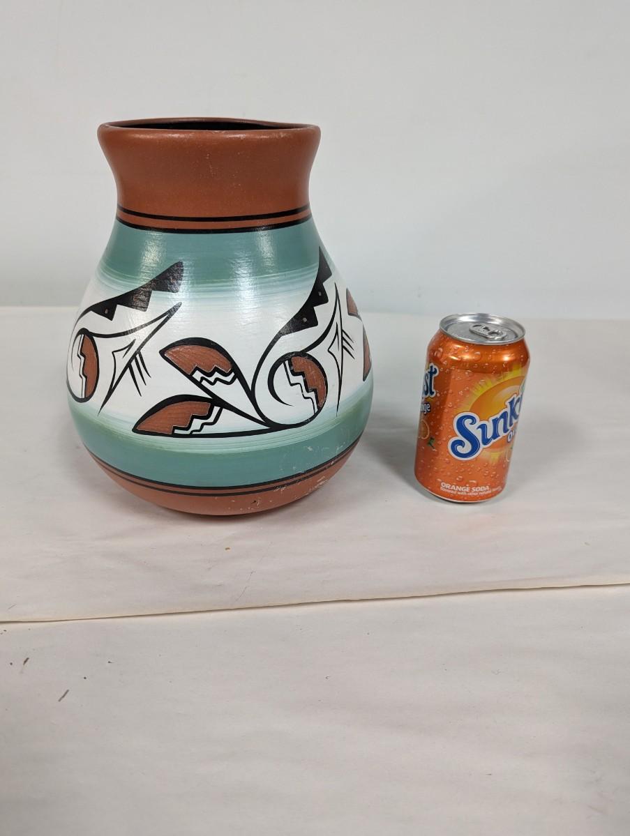 Signed Native American Style Hand Painted Pottery Vase