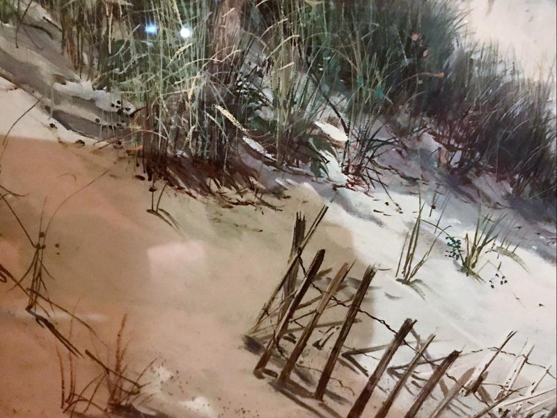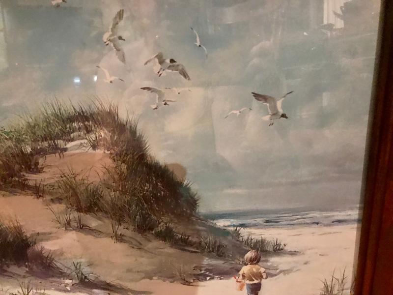 23 x 19 wooden framed print. Sealed backing no damage and well respected artist. Seascape print with Child on beach.