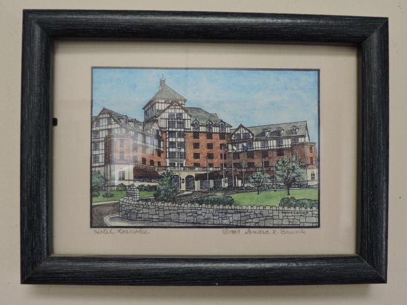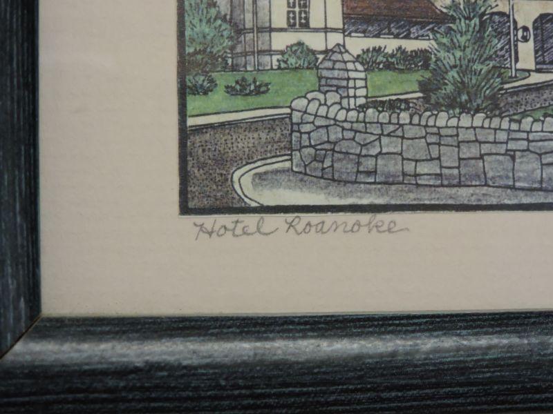 Signed Print - Hotel Roanoke - Sandra K. Brunk. Frame is 8x6. **Please read Terms and Conditions before placing a bid. Pick up is Sunday, September 15, 2019 from 11am to 4pm and Tuesday, September 17 from 4pm-7pm in Sicklerville. All sales are final. All sales are as is, where is. Please review all photos. Any props included in photos are not included in listing. All measurements are approximate.