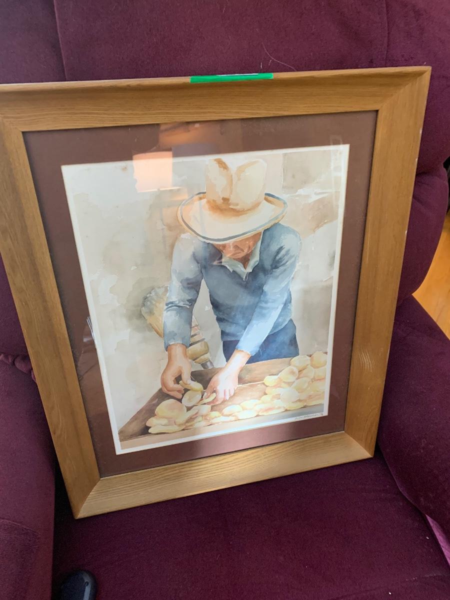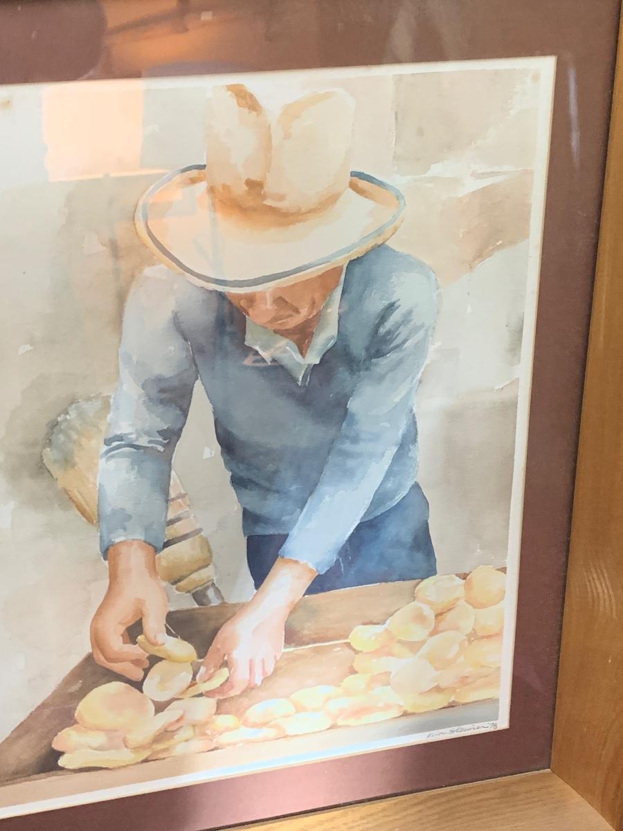 Signed & Framed Original Watercolor - Man Making Tortillas