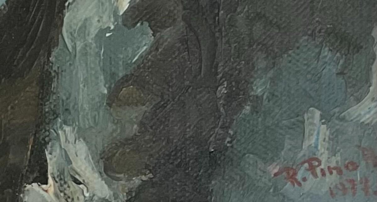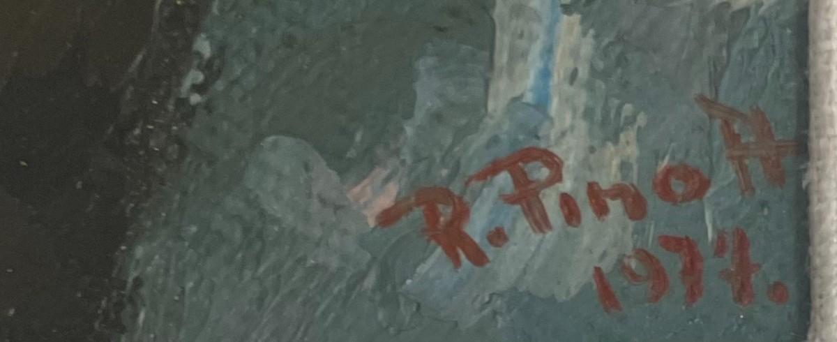 Description: Signed R. Pinnott Oil PaintingMaterial: Oil on board/ Glass framed Measurement approximate: 16"x14"(framed); 12"x10"(picture)