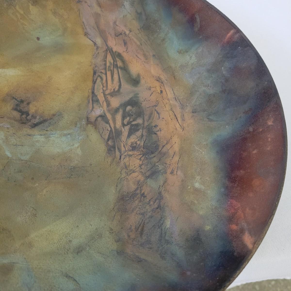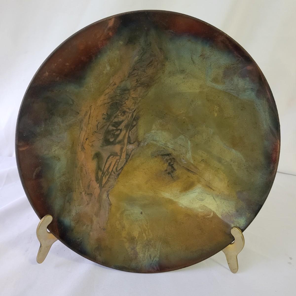 Signed Raku Pottery Plate and Brass Stand (P-DW)