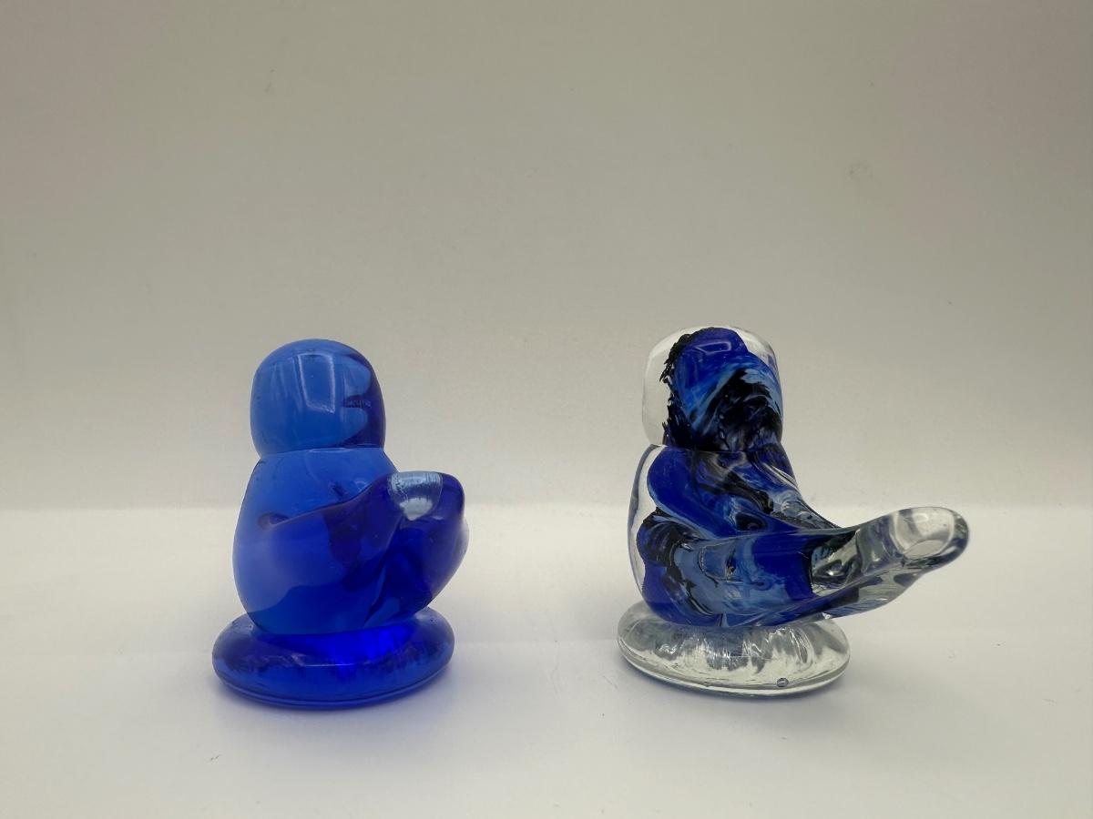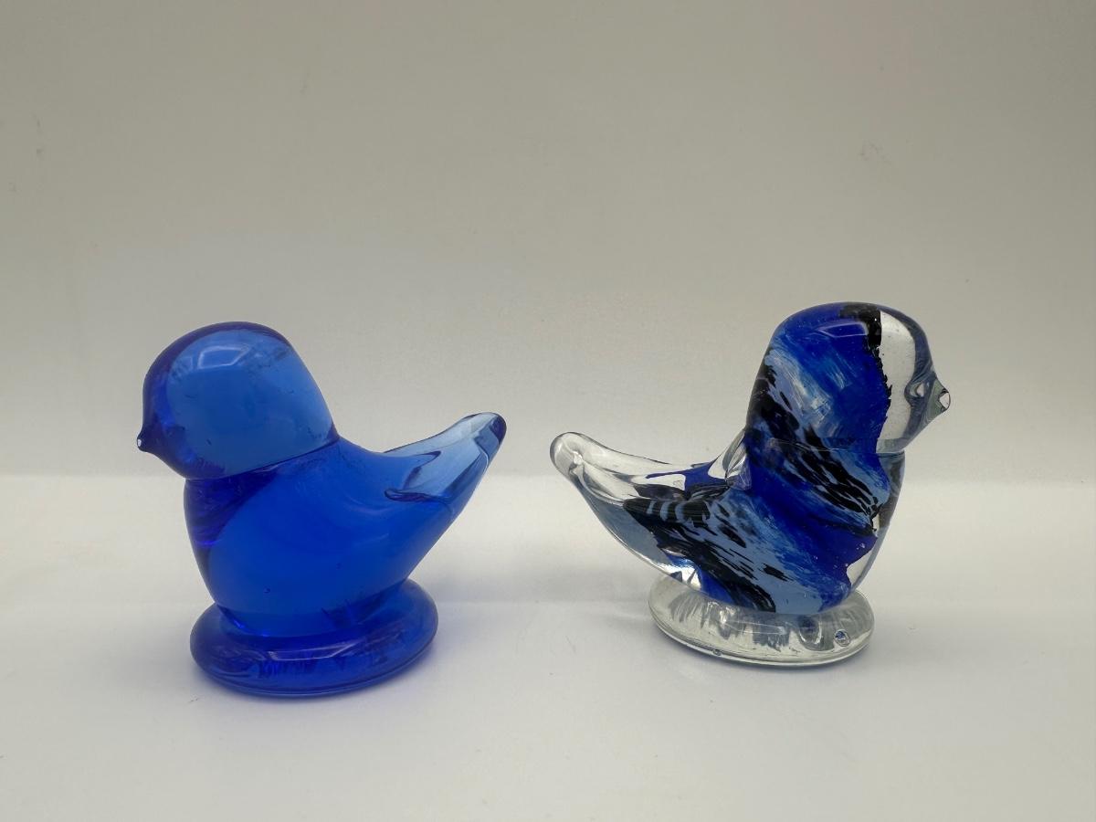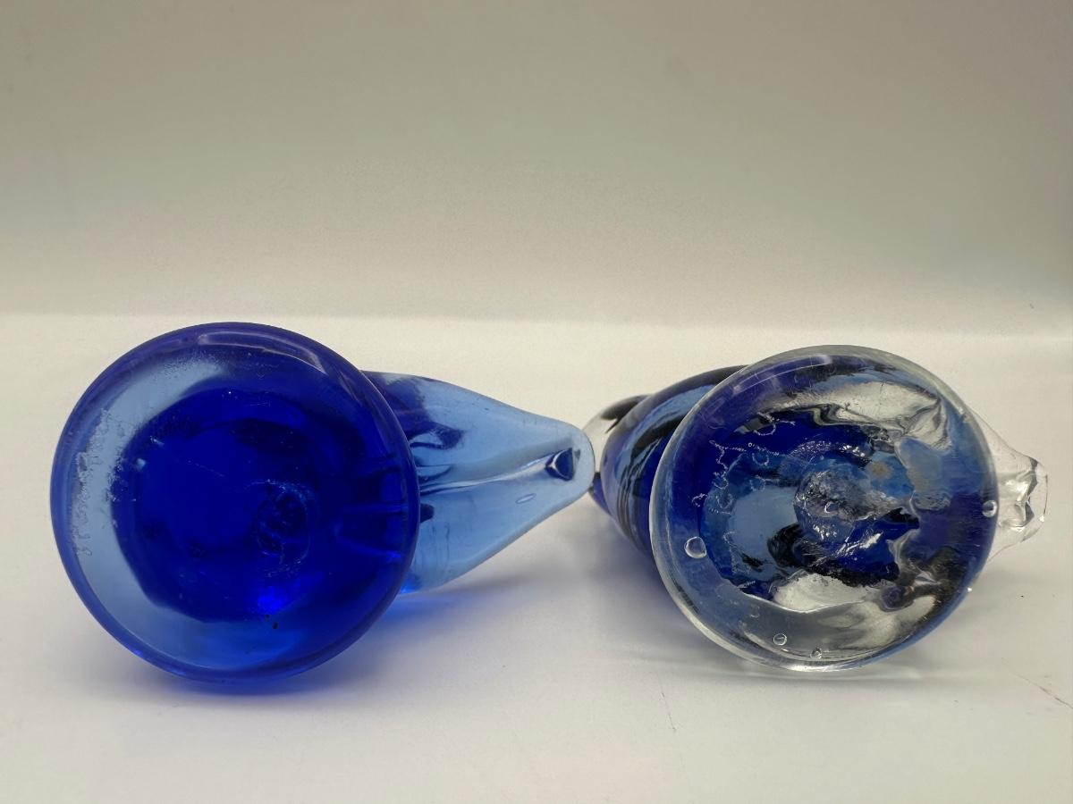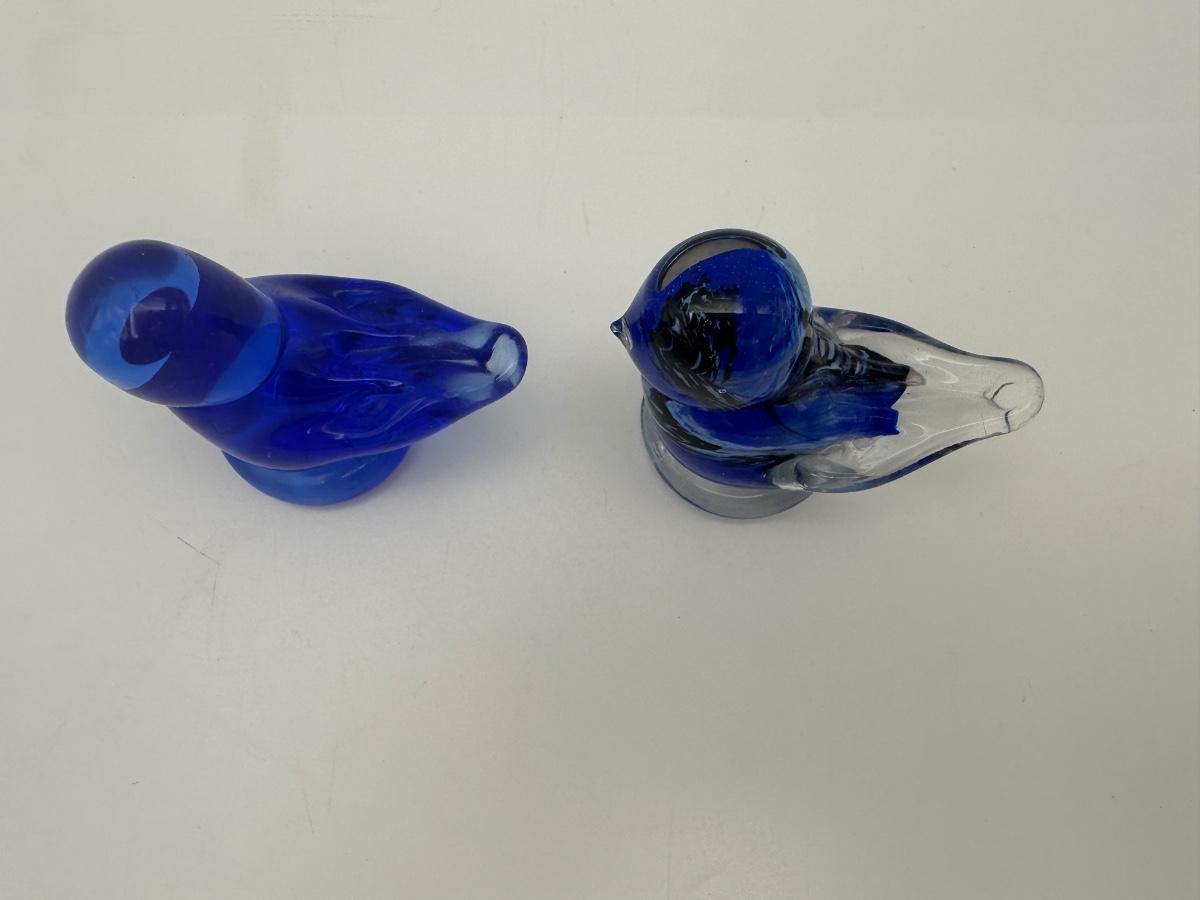 Signed Ray Ron Hand Blown Glass Blue Birds (2)