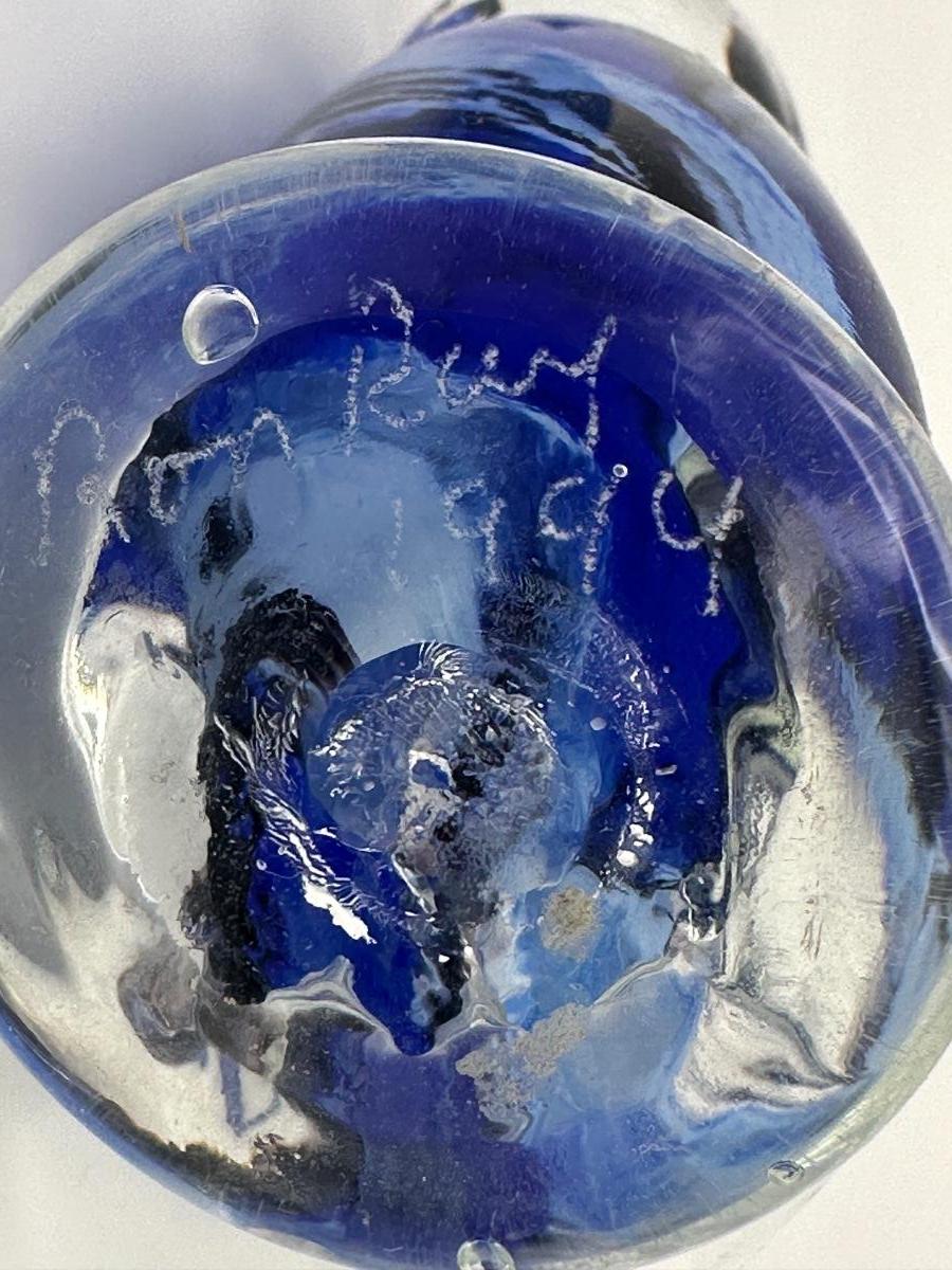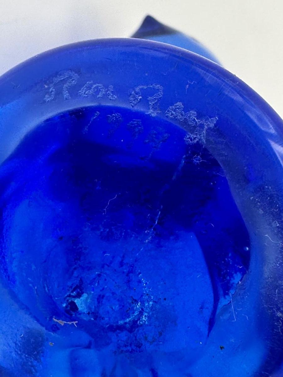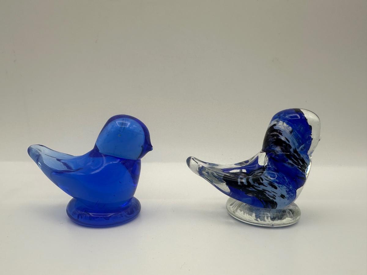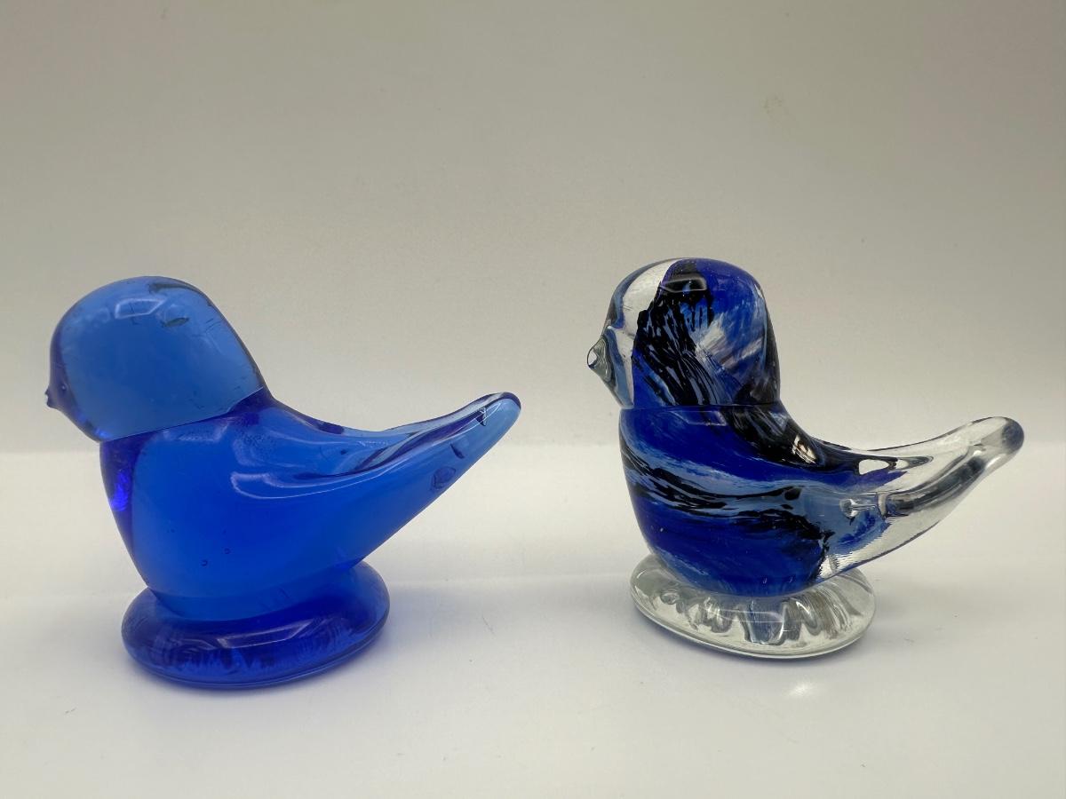 Signed Ray Ron Hand Blown Glass Blue Birds (2)