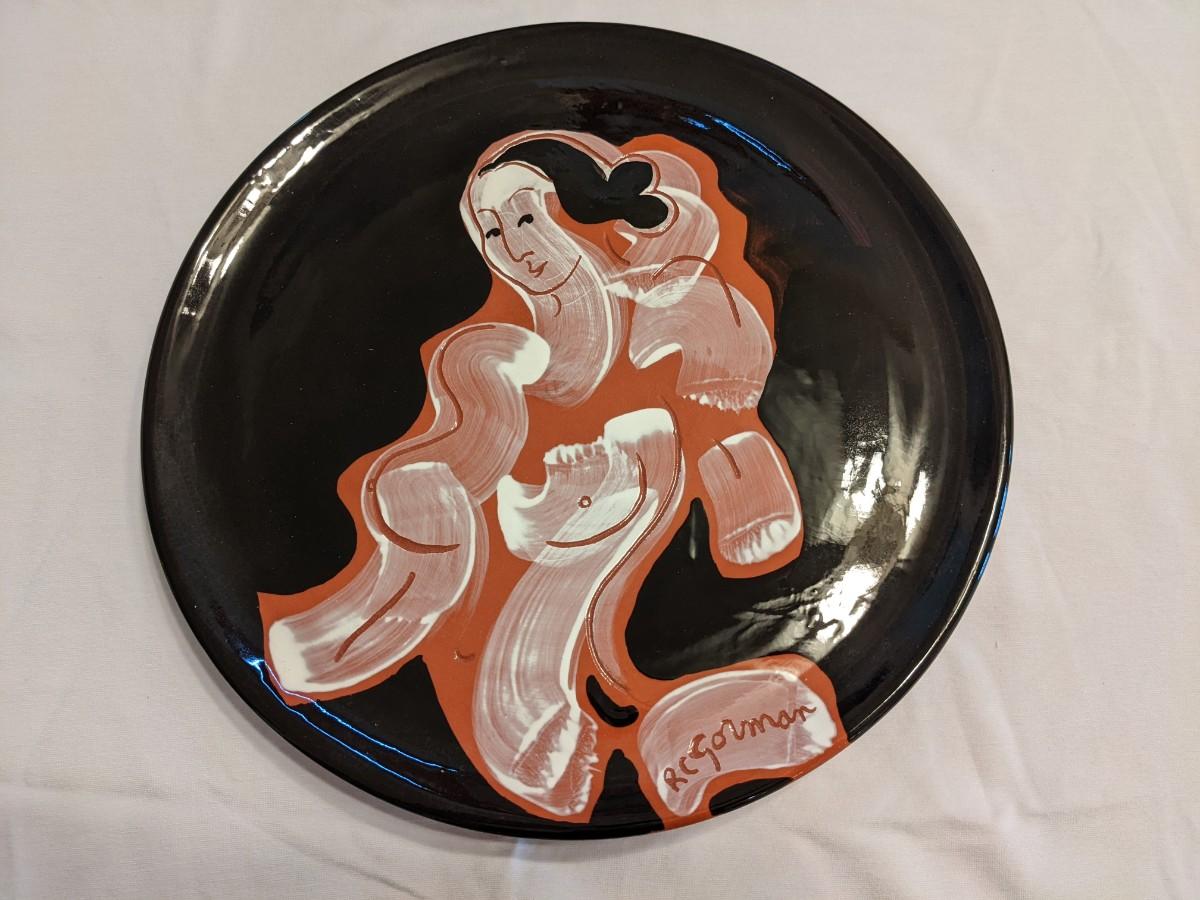 Signed R.C Gorman Original, One of a Kind, Ceramic Plate, Dancing Nude