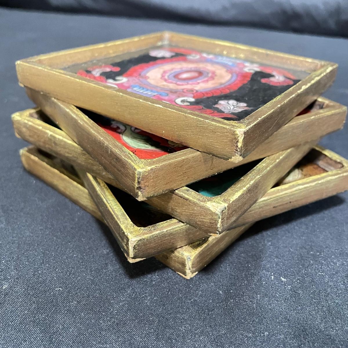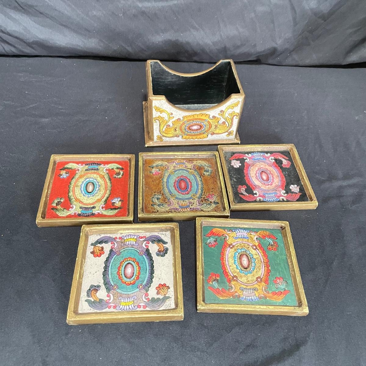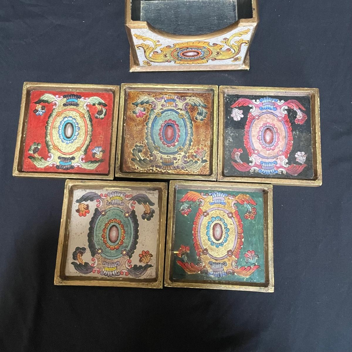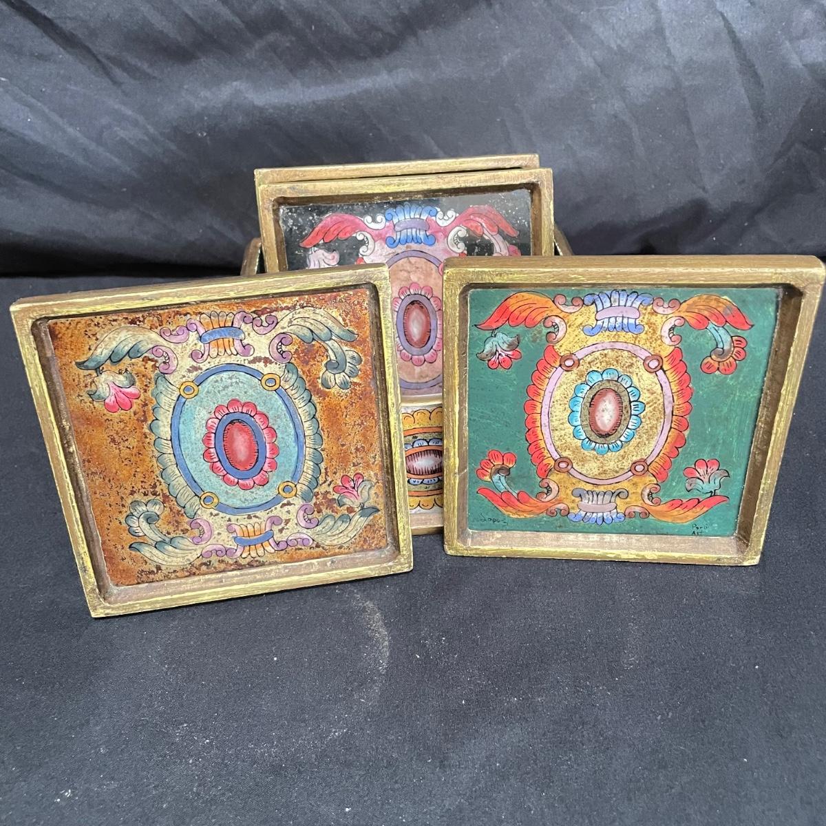 Signed Reverse Painted Glass & Wood Coasters + More Bohemian Decor (LR-SS)