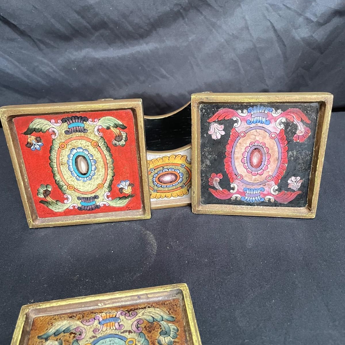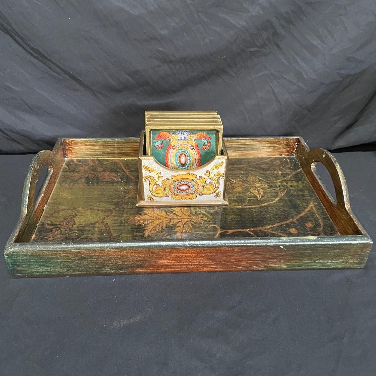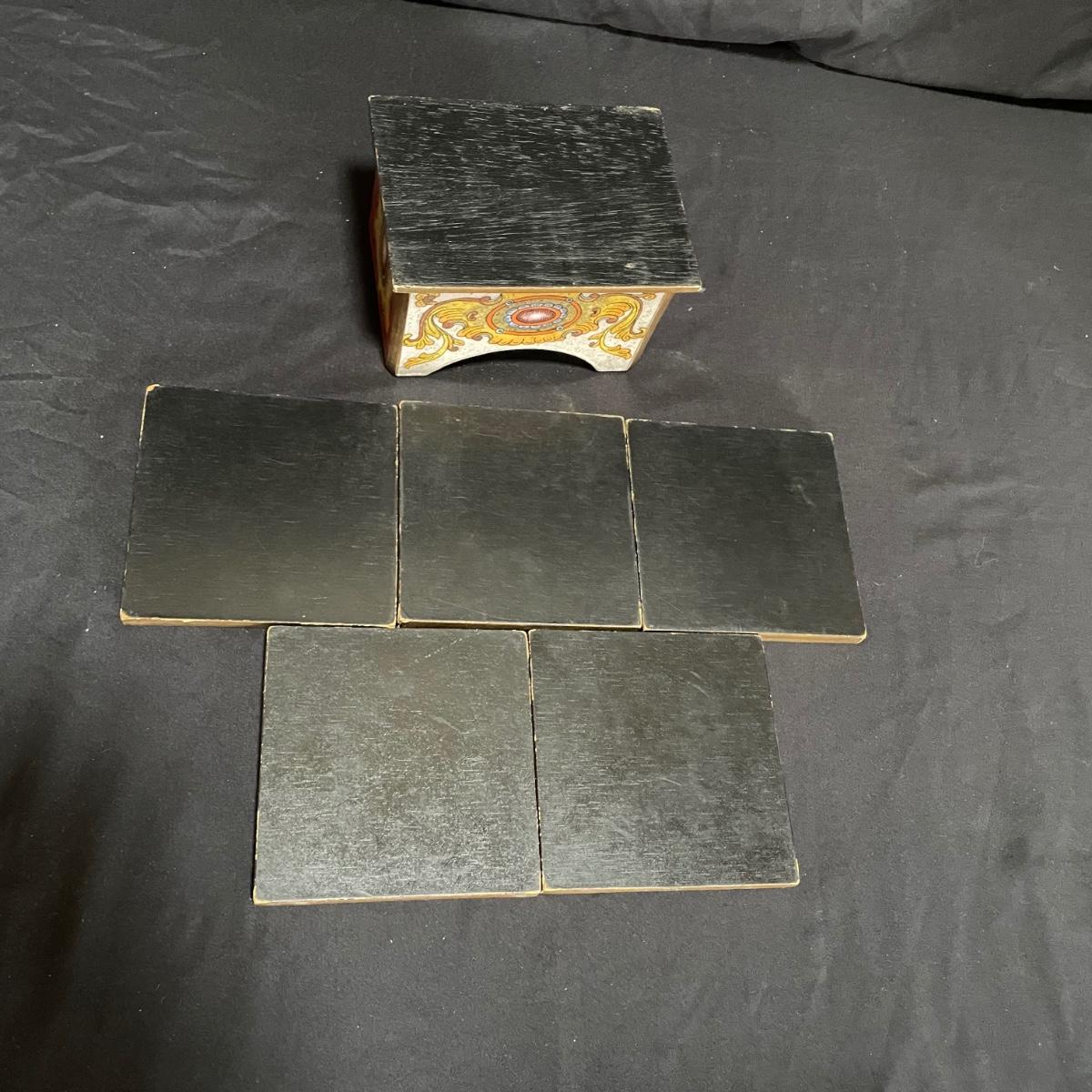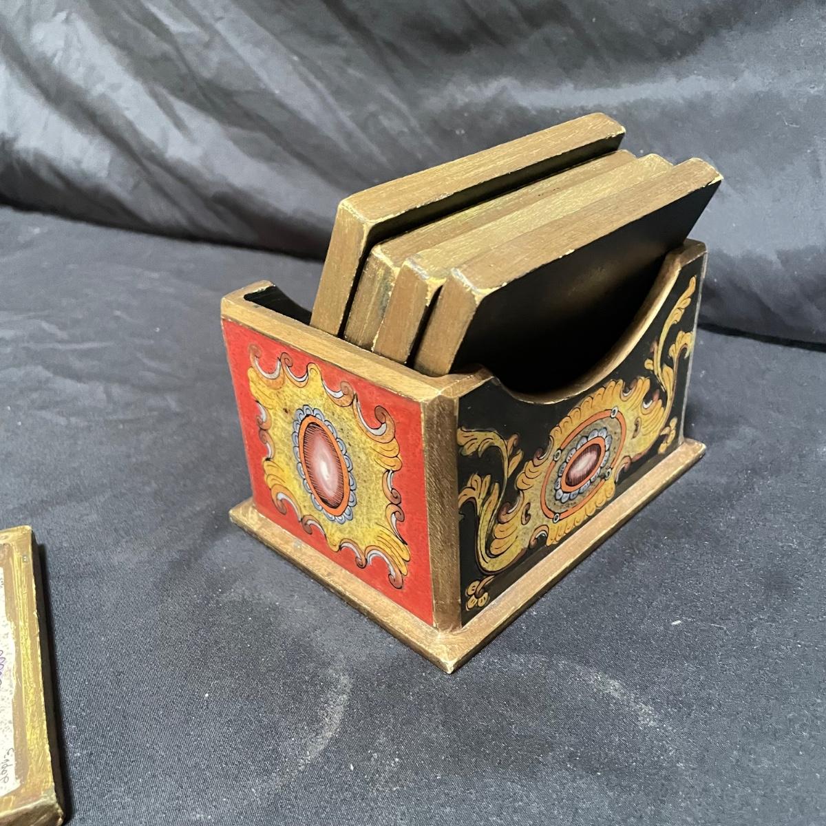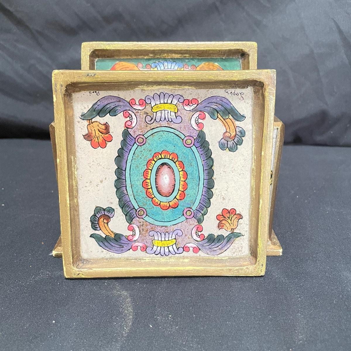 Signed Reverse Painted Glass & Wood Coasters + More Bohemian Decor (LR-SS)
