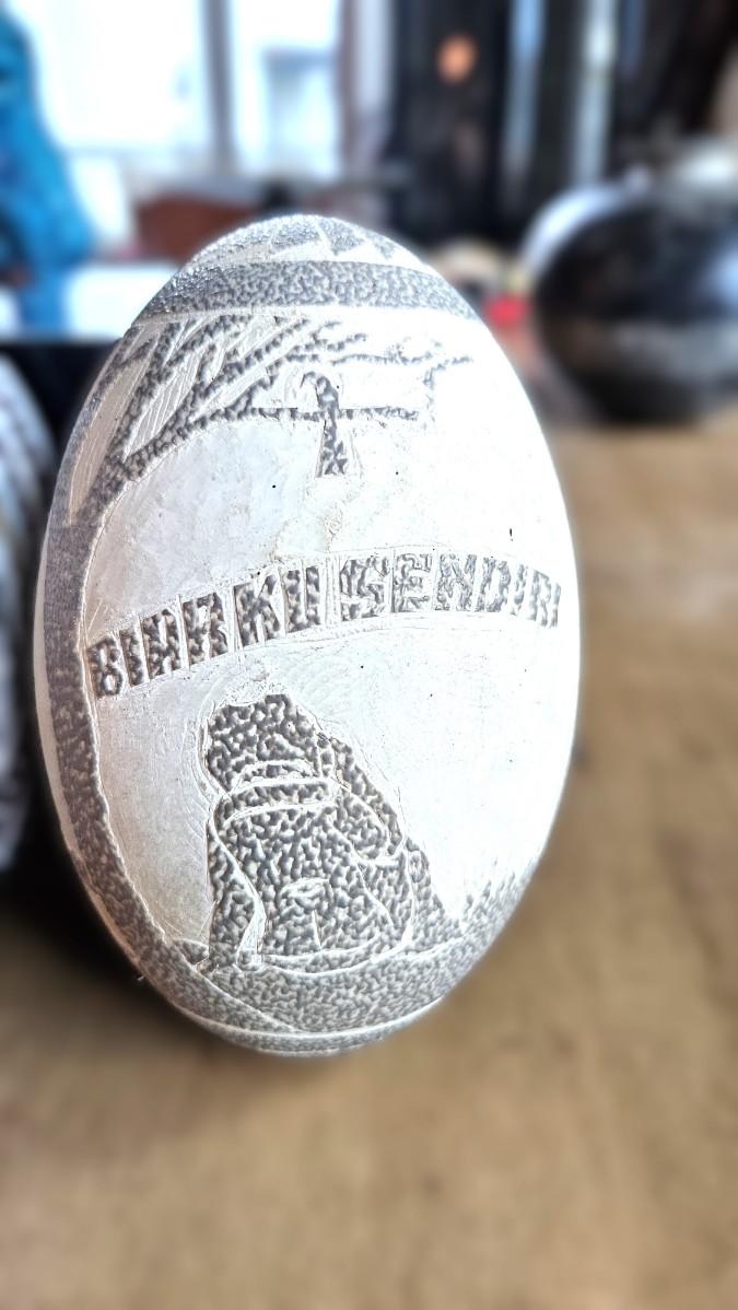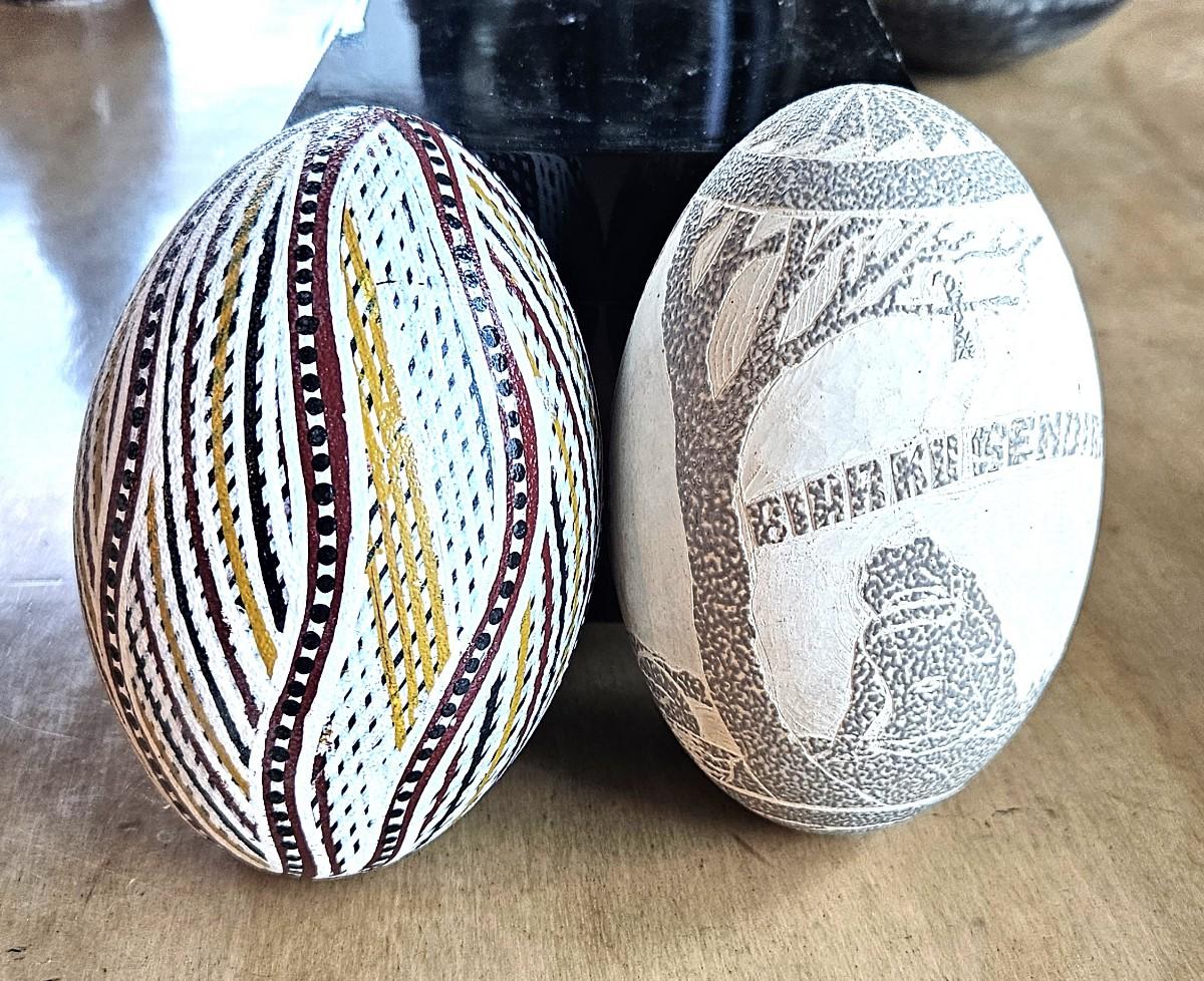 Signed Rhea Egg and Ukrainian Pysanka Egg