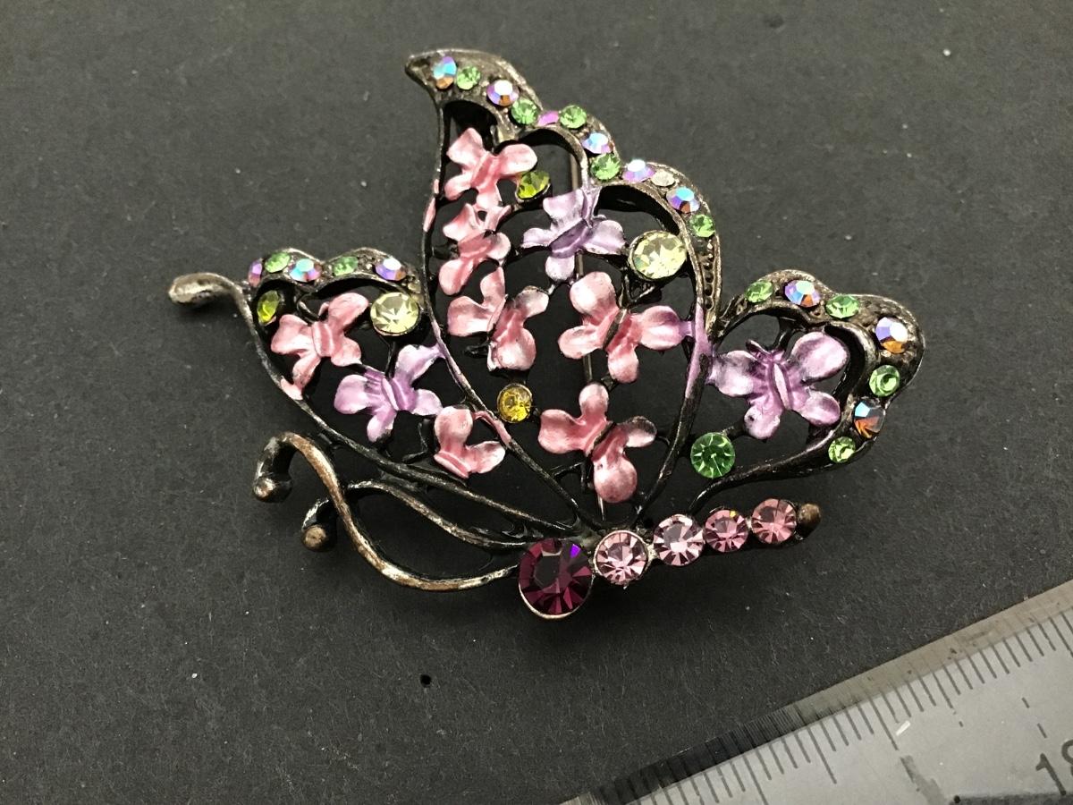 Signed Rucinnii Rhinestone Butterfly Brooch