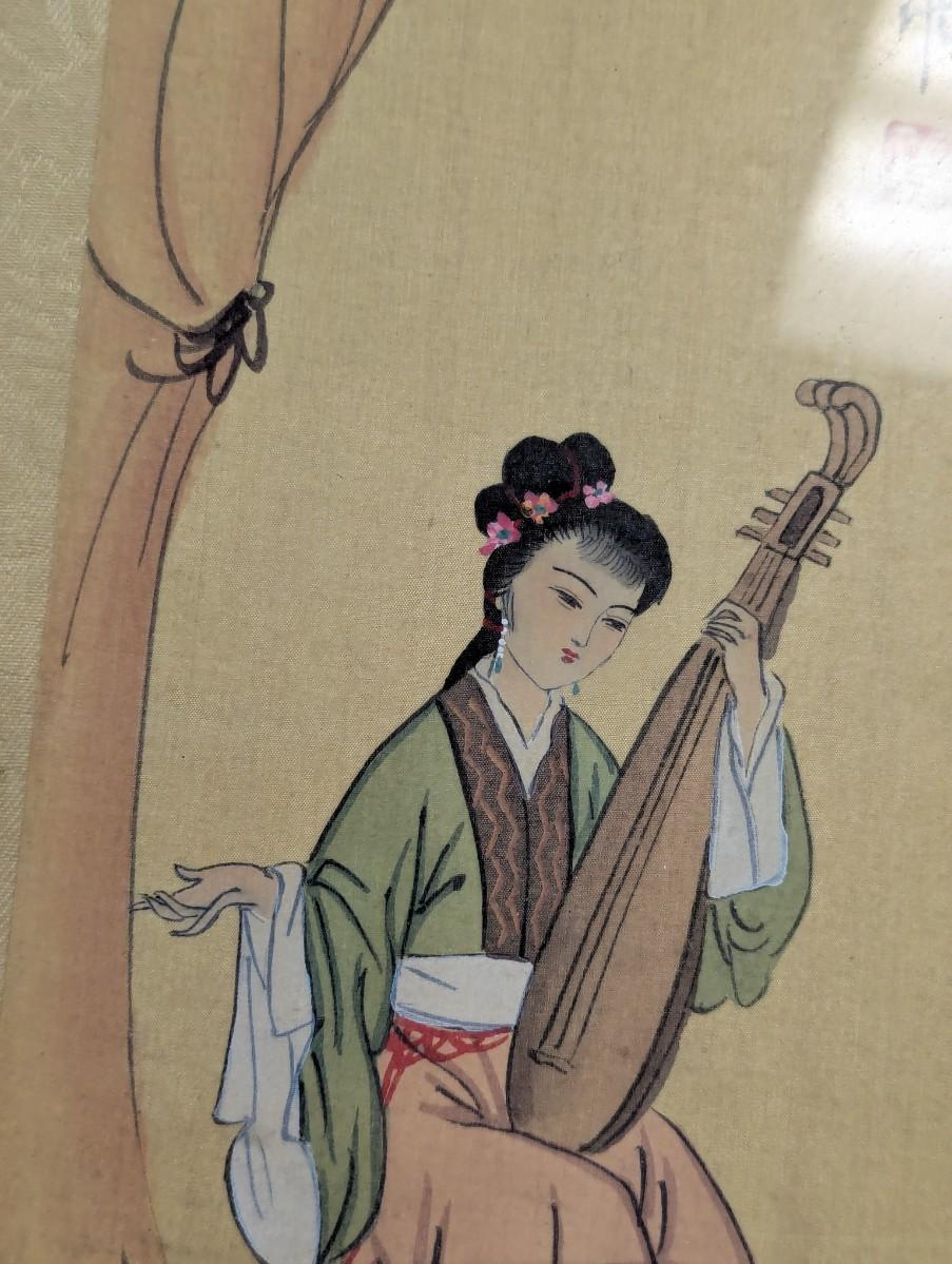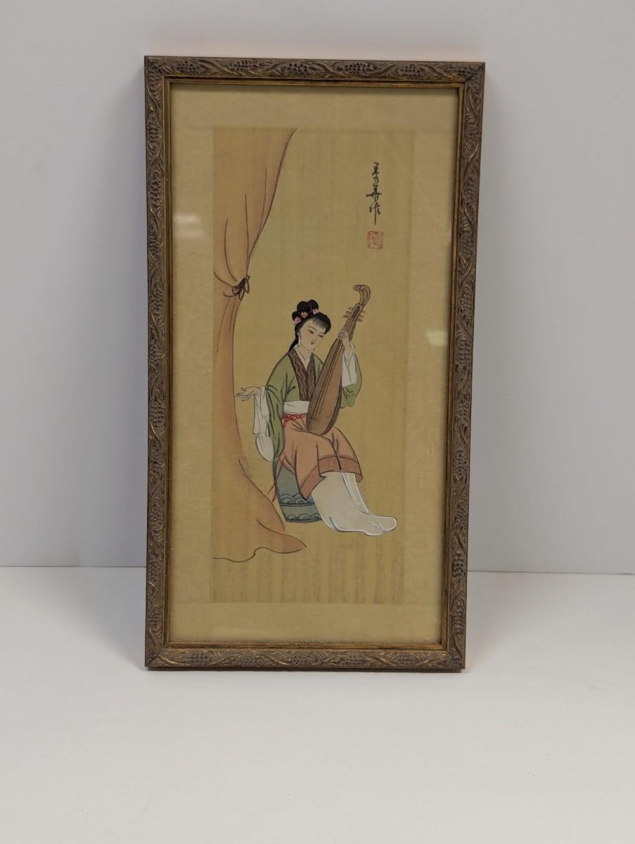 Signed Silk Fabric Painting Chinese Woman Chinese Landscape