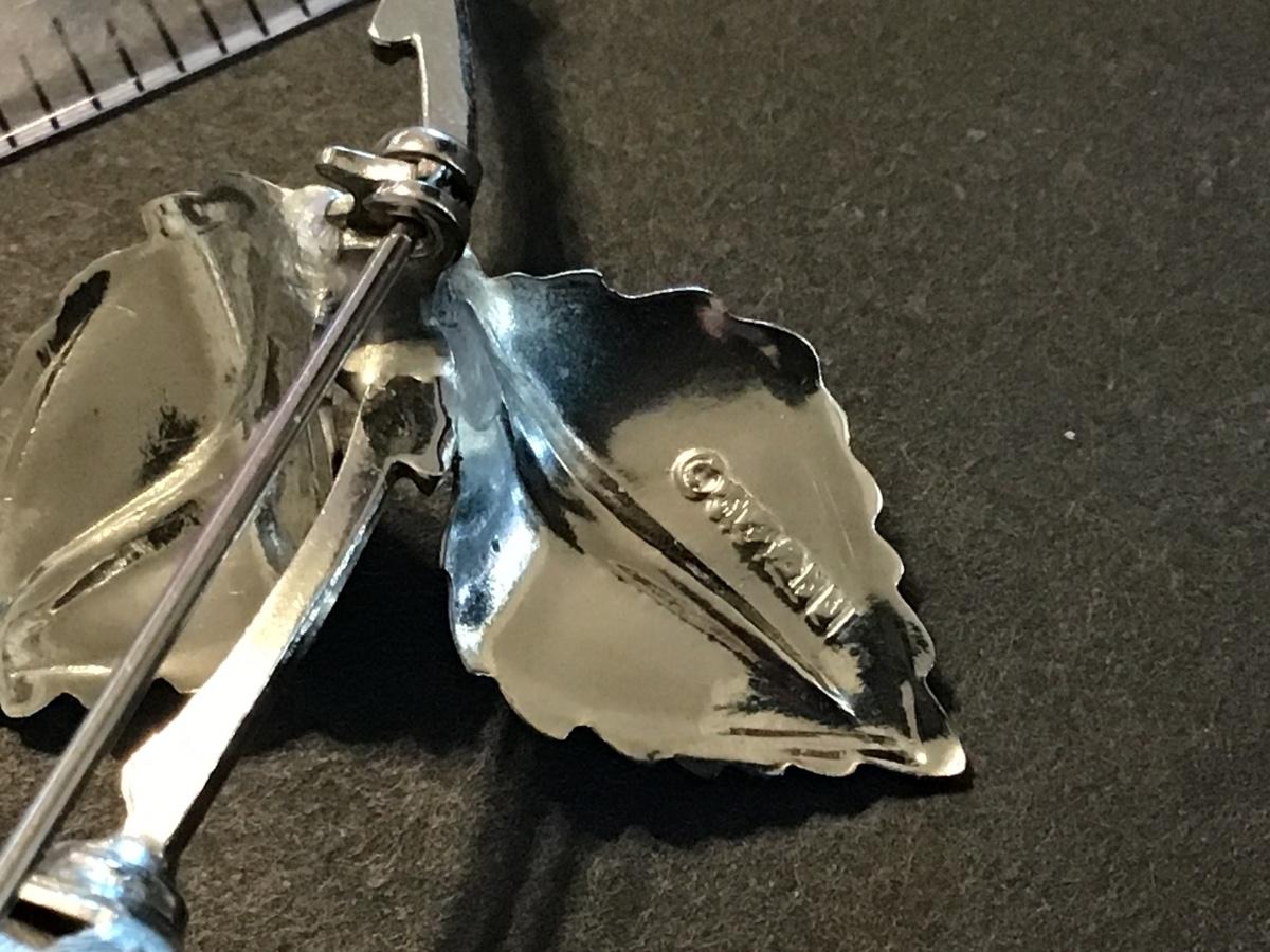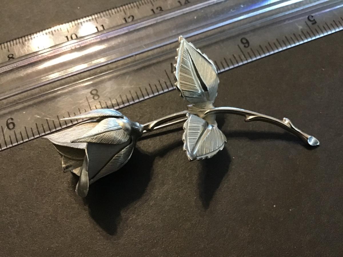 Signed Silver Tone Rose Brooch