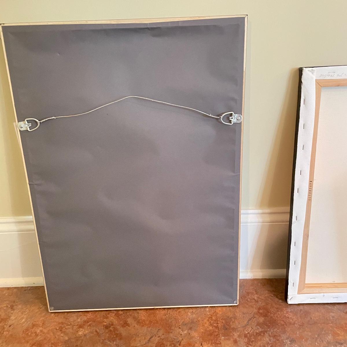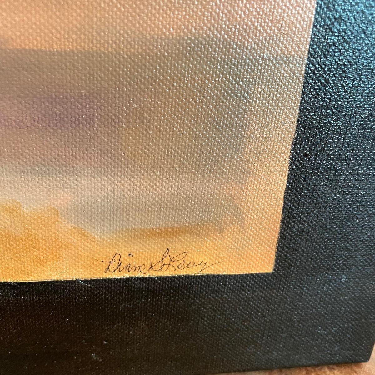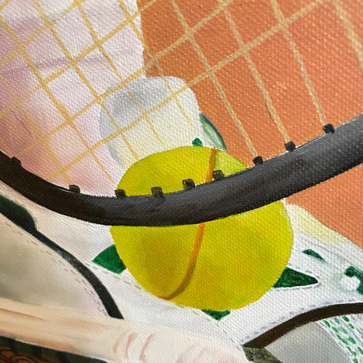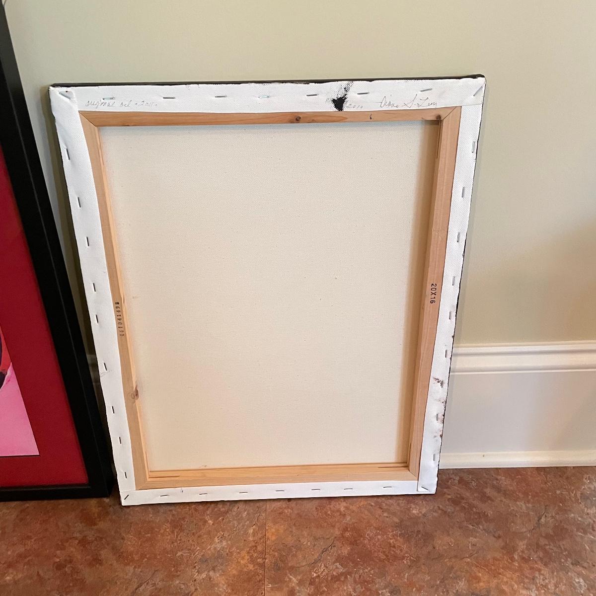 Two inspiring signed originals. The tennis art appears to be acrylic on a 16” x 20” canvas with a painted border. Next appears to be a professionally framed bicycle water color. Art sits behind glass in a 16.75” x 23.5” black painted wooden frame. See images. Shipping available. Please call UPS with dimensions at 828-252-6930 for a shipping quote prior to bidding.