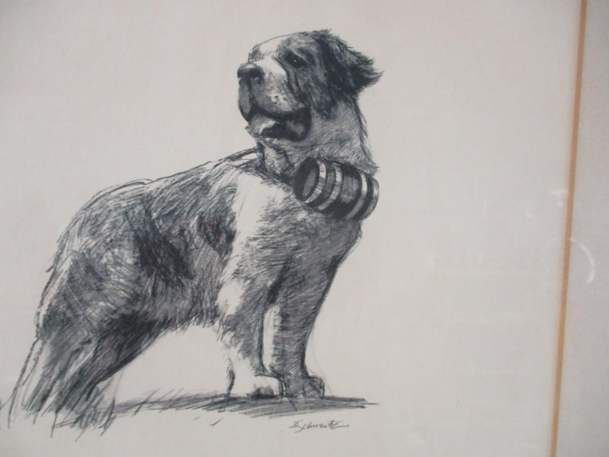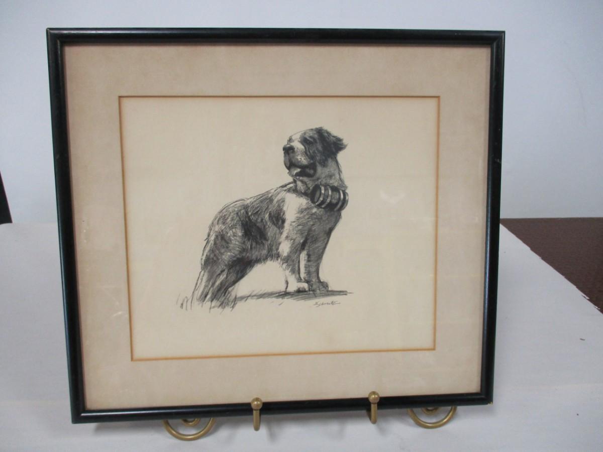 Signed St Bernard Drawing
