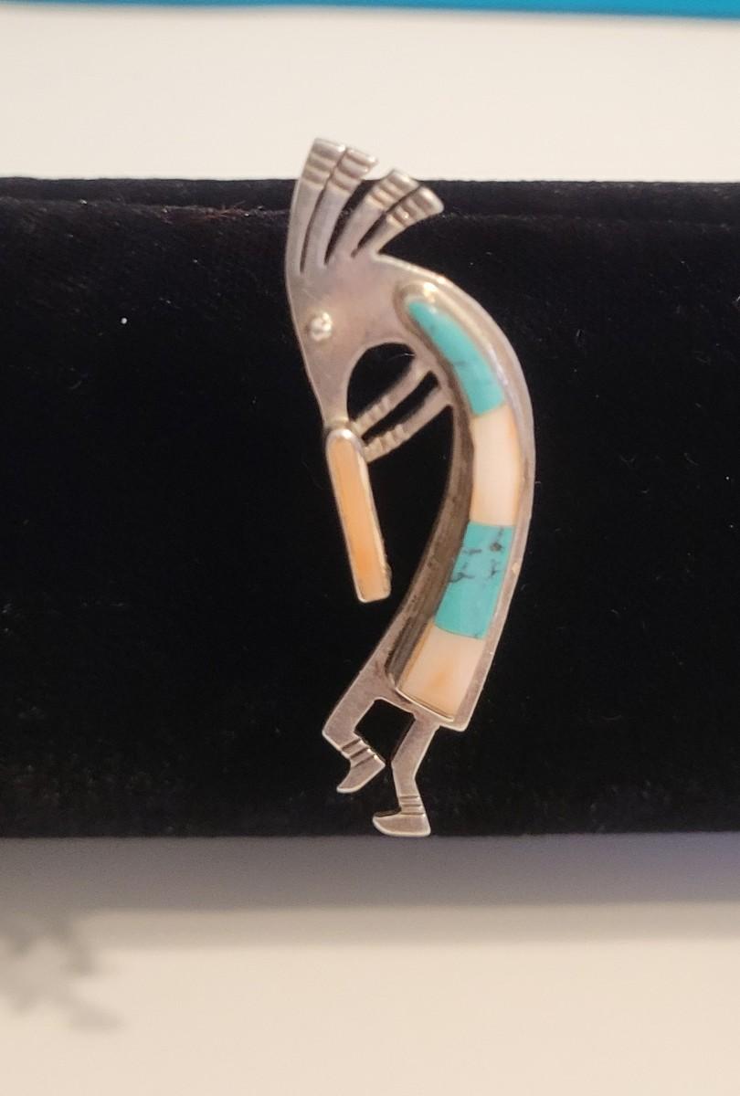 SIGNED STERLING BROOCH 5.90g & LIQUID SILVER BRACELET 5.56g