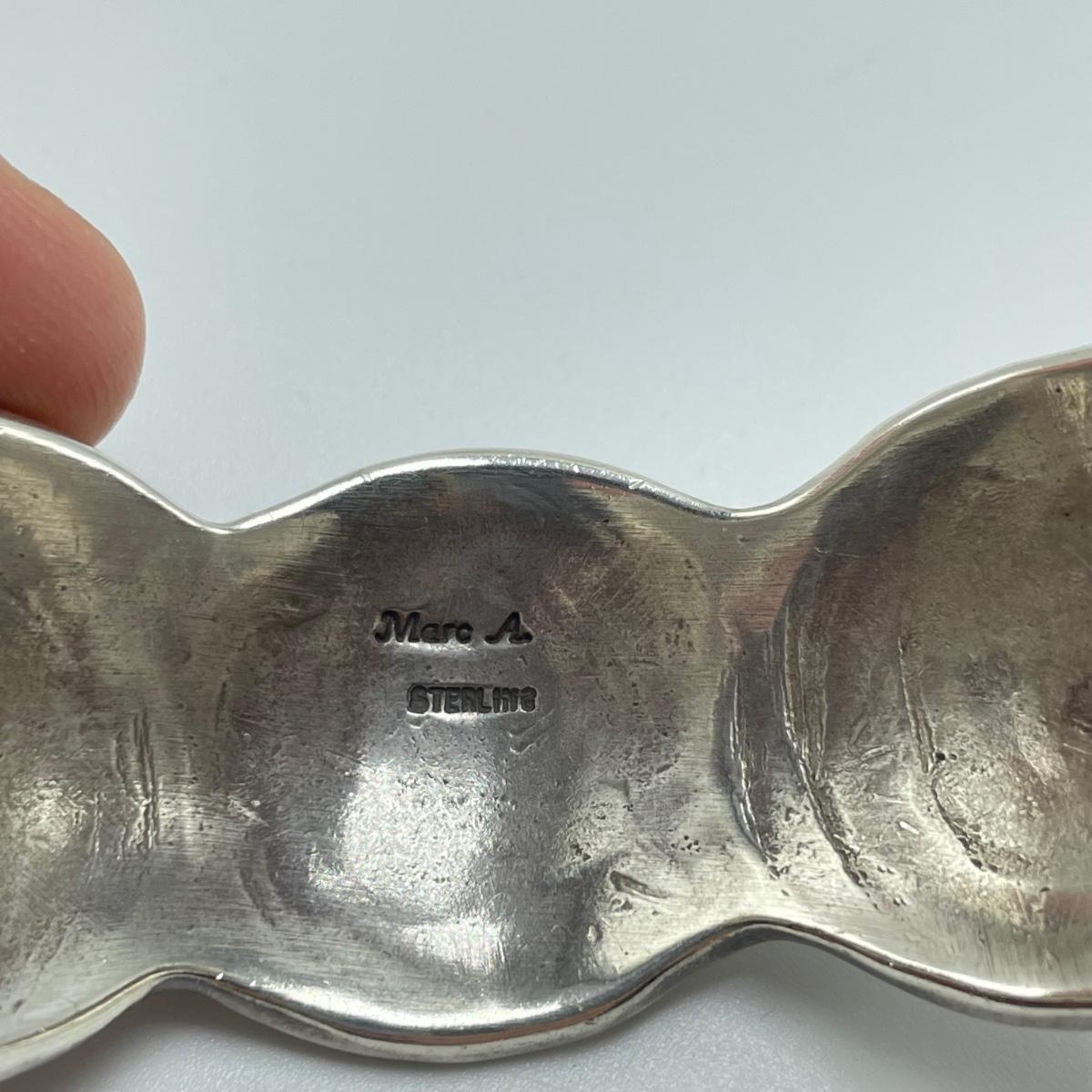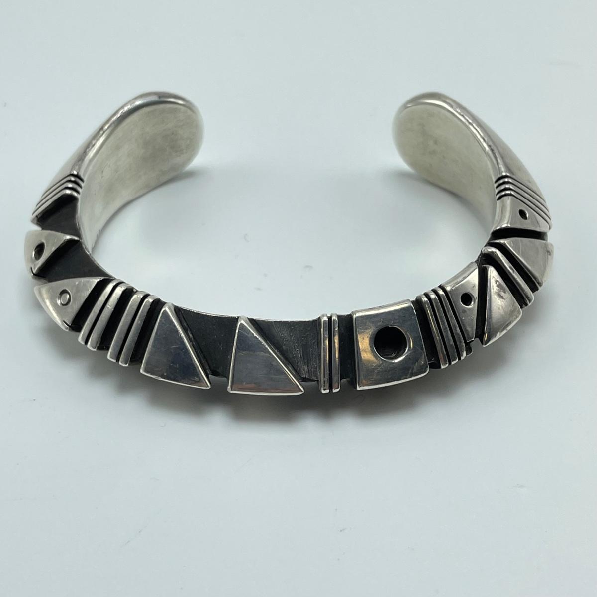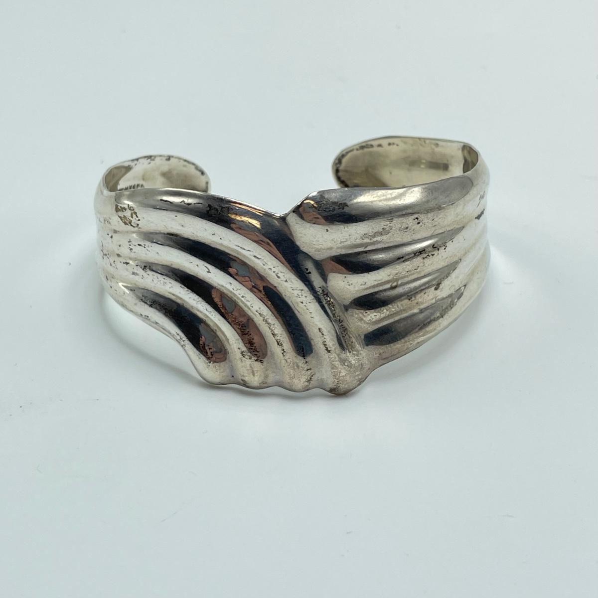 Three sterling cuffs, two with very clear markings. The Charles Ortiz has a heavy weight for its size, the thinner yet wide bracelet appears to have Mexico next to its 925 marking. Three bangles are also included in the lot, two are matching with ARV markings. The third bangle doesn’t appear to be marked. Starting bid is at or near melt value. All sales are final. No returns or refunds. Please bid accordingly.