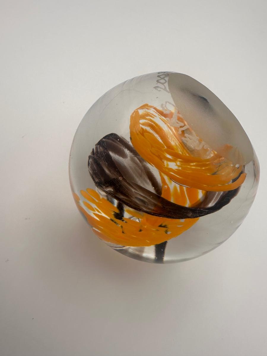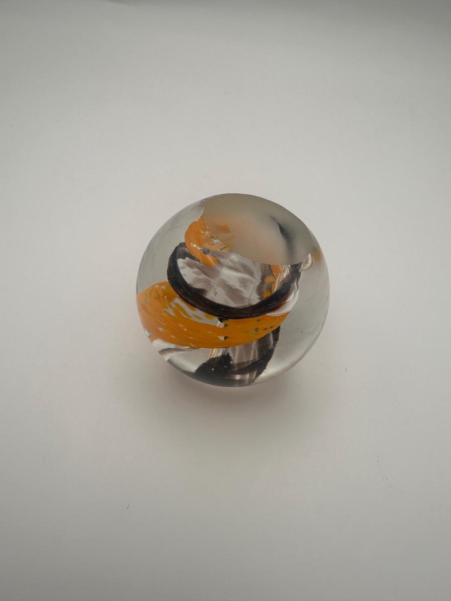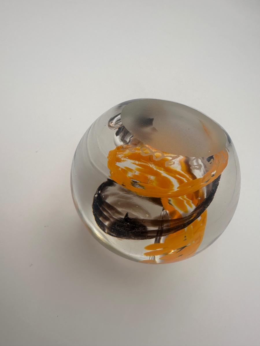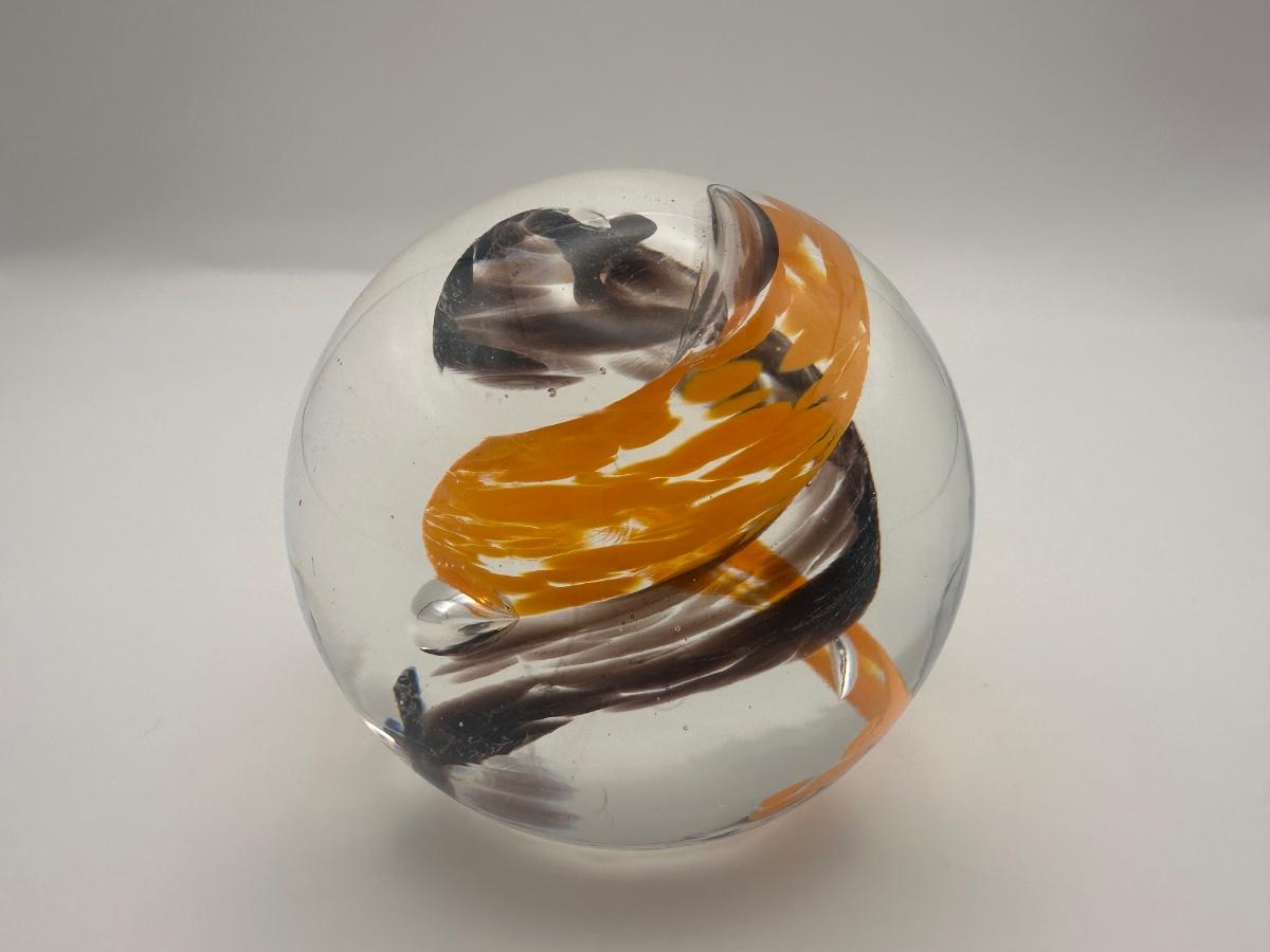Signed Studio Art Glass Paperweight, Abstract Swirl Design, Etched “Weis” 2006