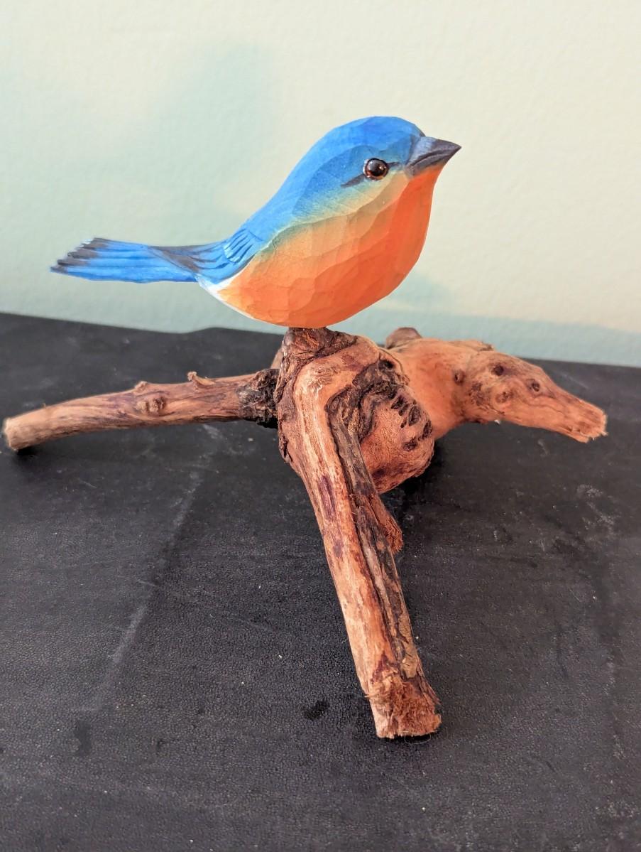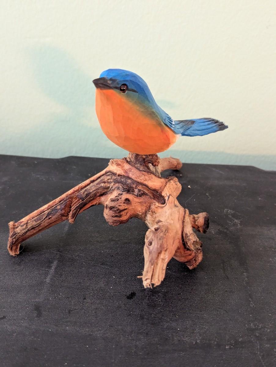 Wood Carved Male Blue Bird (HW)