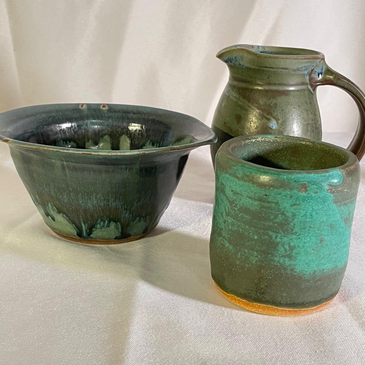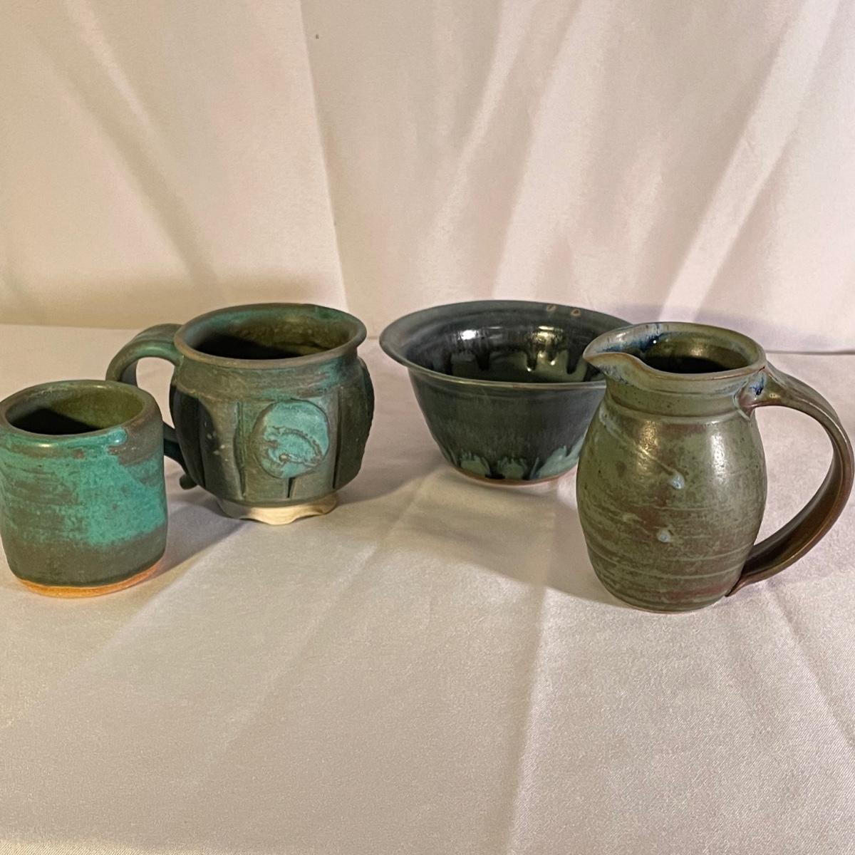 Four pieces of pottery here, 3 are signed (2 signed MRB, the other is indecipherable). No chips or cracks in any pieces.