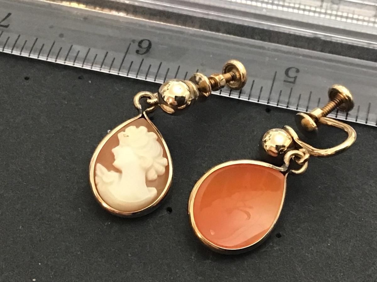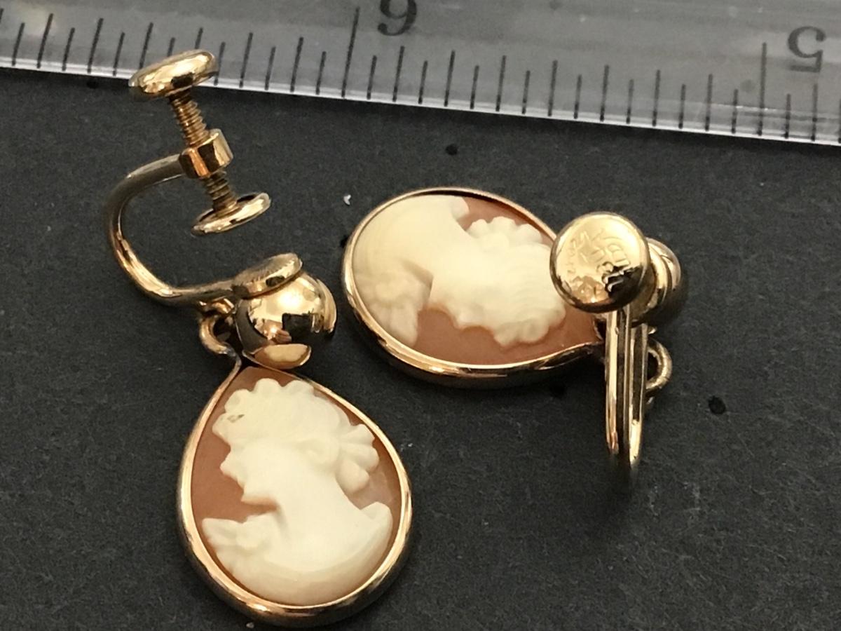 Signed Van Dell. Gold Filled Vintage Cameo Earrings