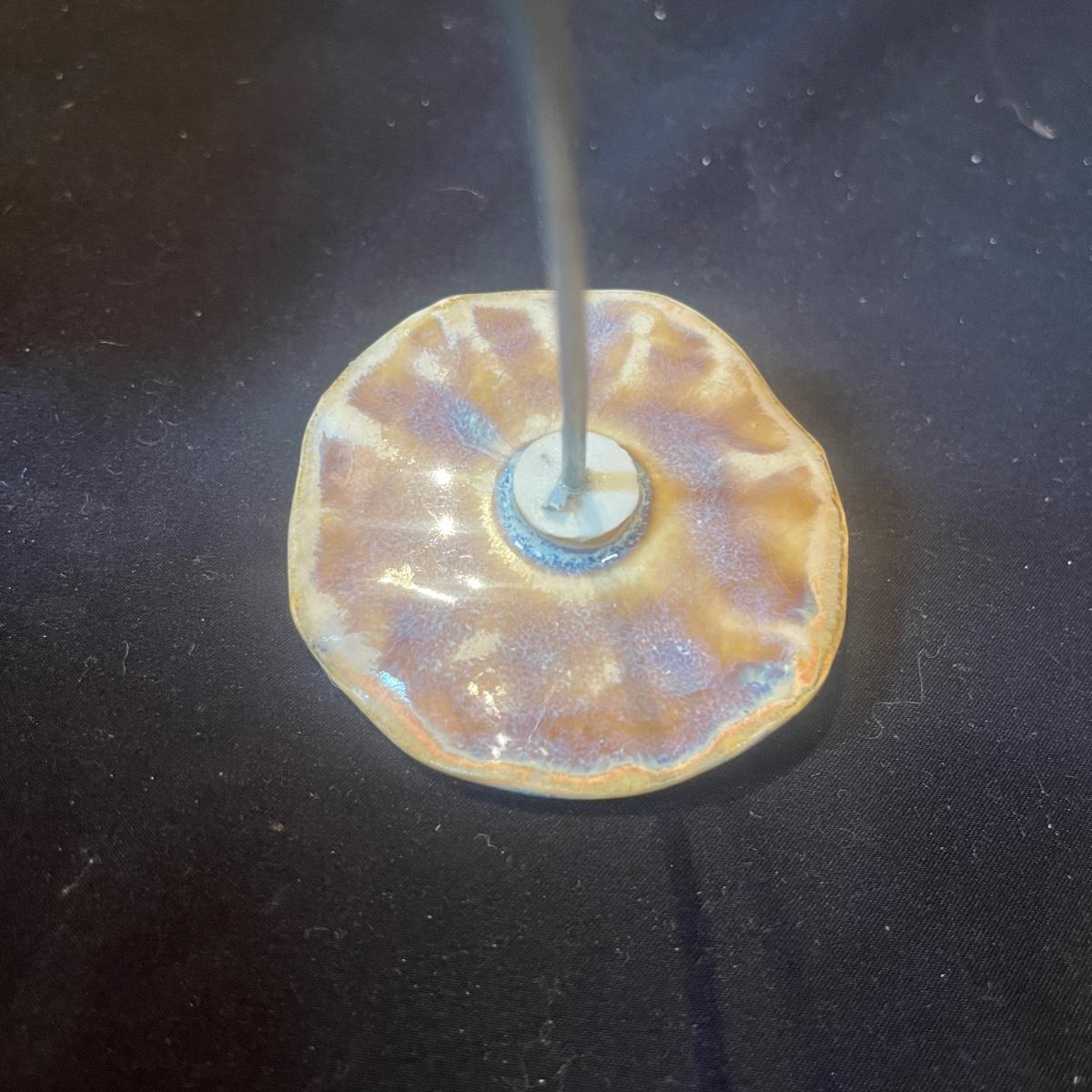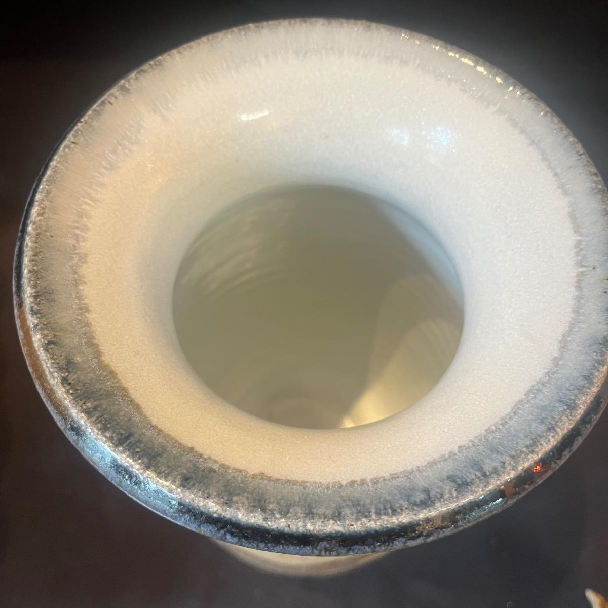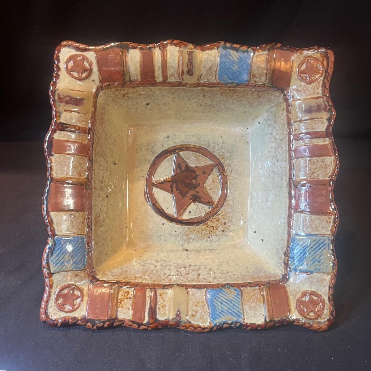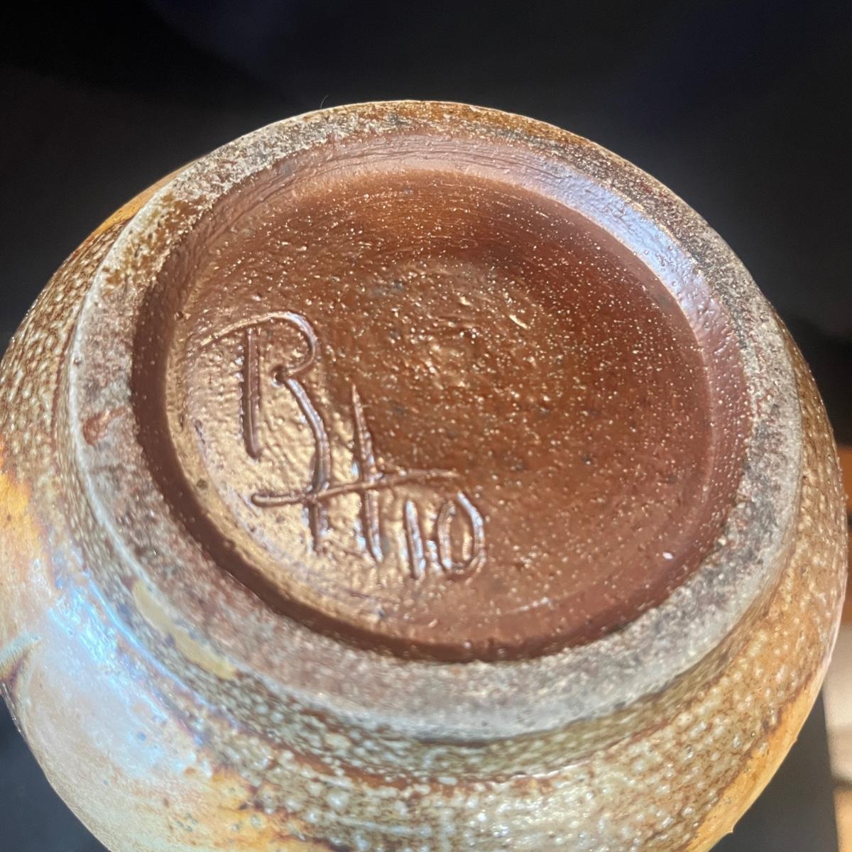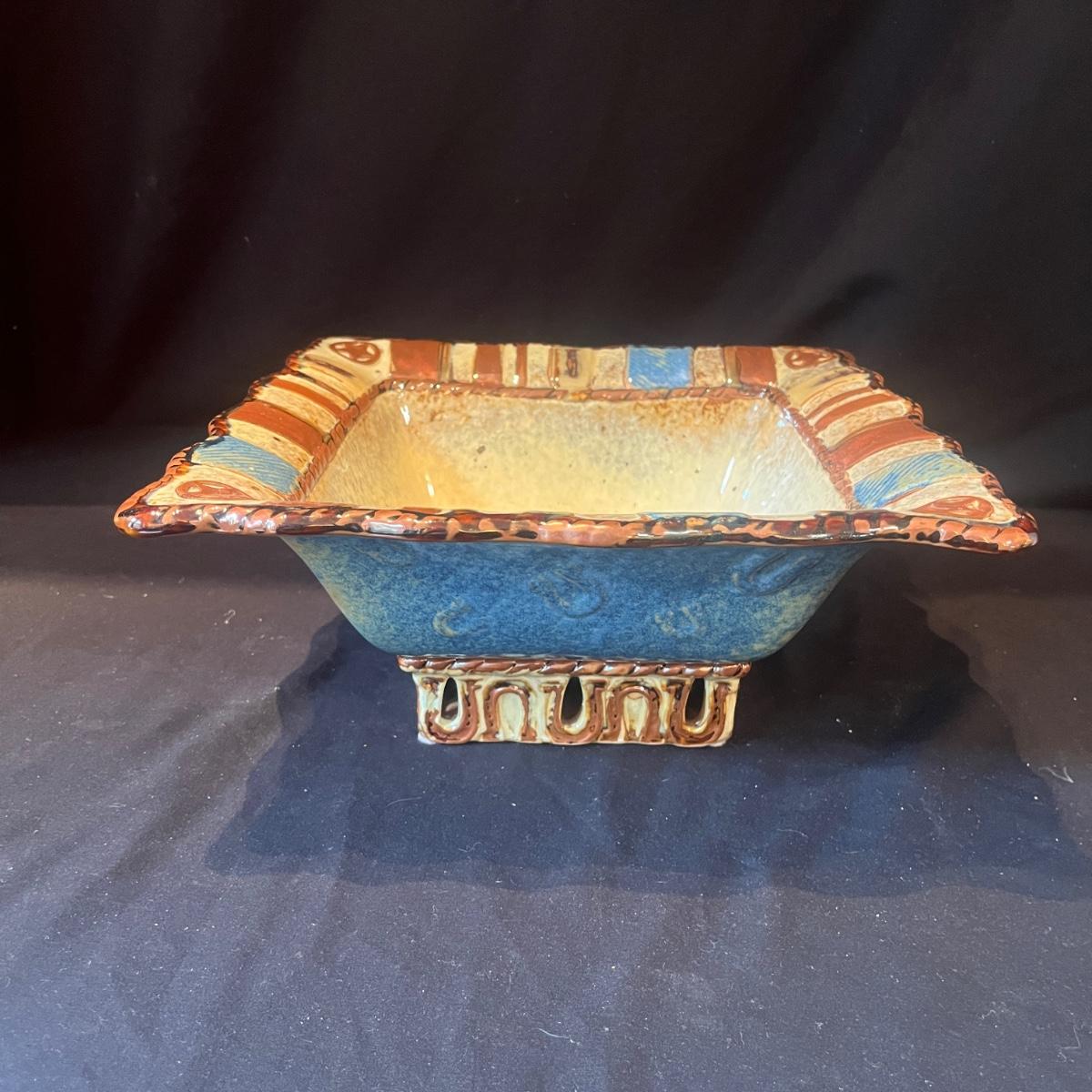 Lot includes a signed vase, ceramic flower and a Canyon Ranch dish. Vase measures 6.5”D x 10.5”H.