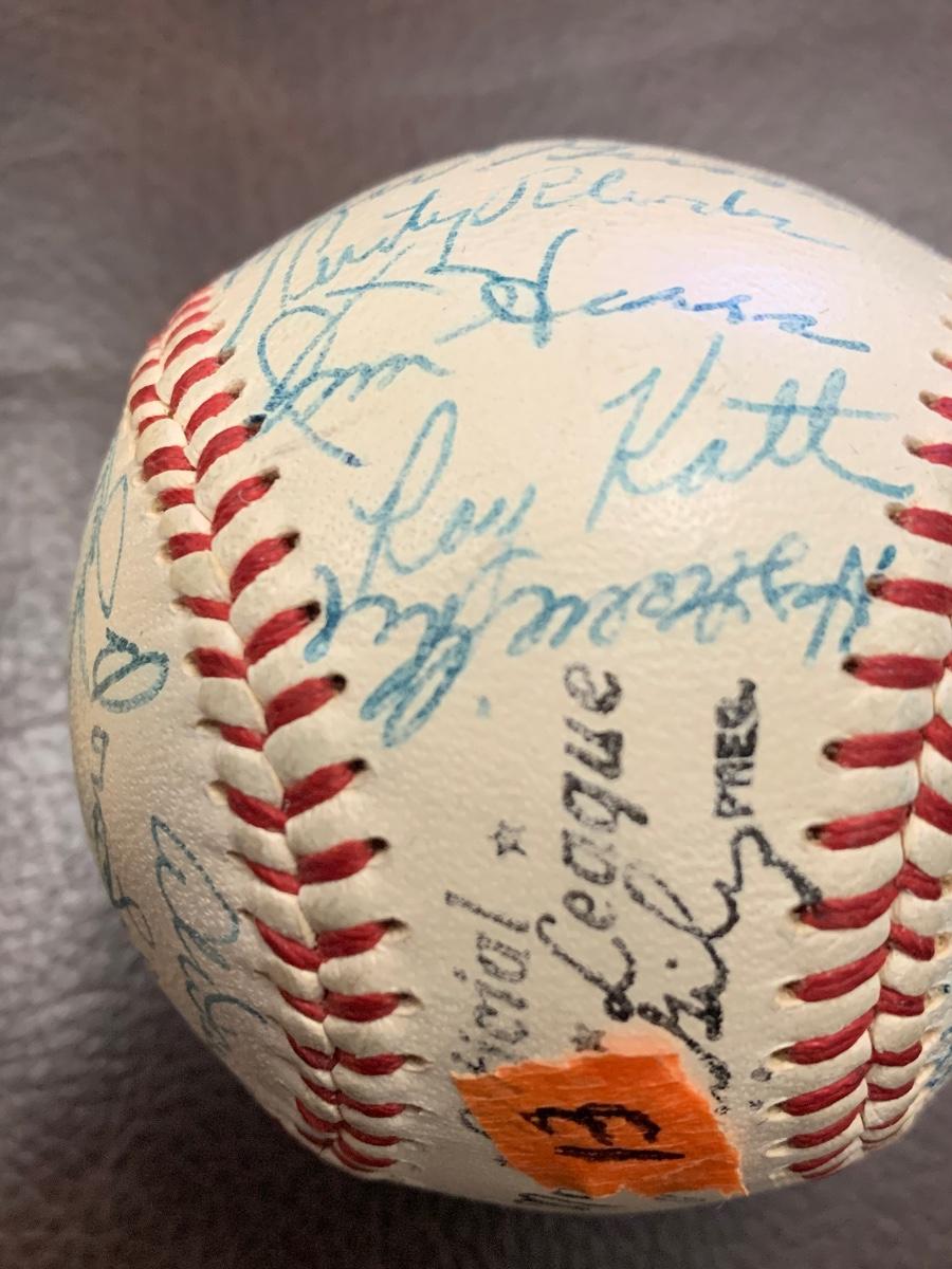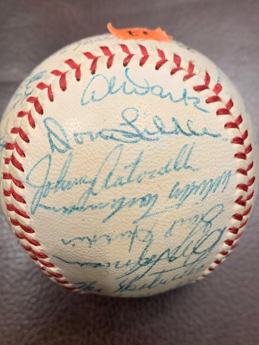 One of MANY vintage, autographed baseballs being offered in this wonderful estate. Hopefully you can make out a few of the names - when in doubt, think Brooklyn Dodgers, that seems to be the theme with his collecting. We assume everything in this home of a lifelong collector is authentic but we make no guarantees - you are buying as is, as found in the state. Please see MANY photos for content, condition and dimensions. Never a Buyers Premium or Credit Card Fee. All items start at just $10 and sell to the highest bidder with No Reserve. Good luck bidding!