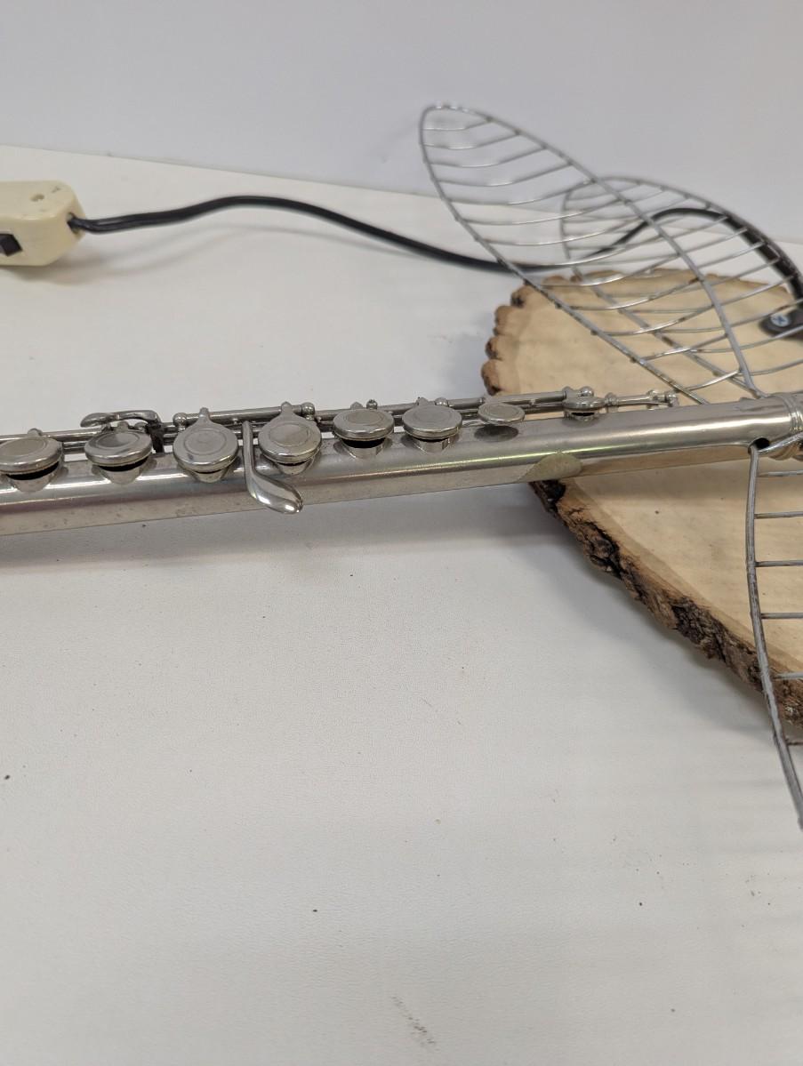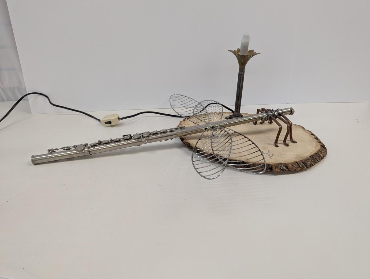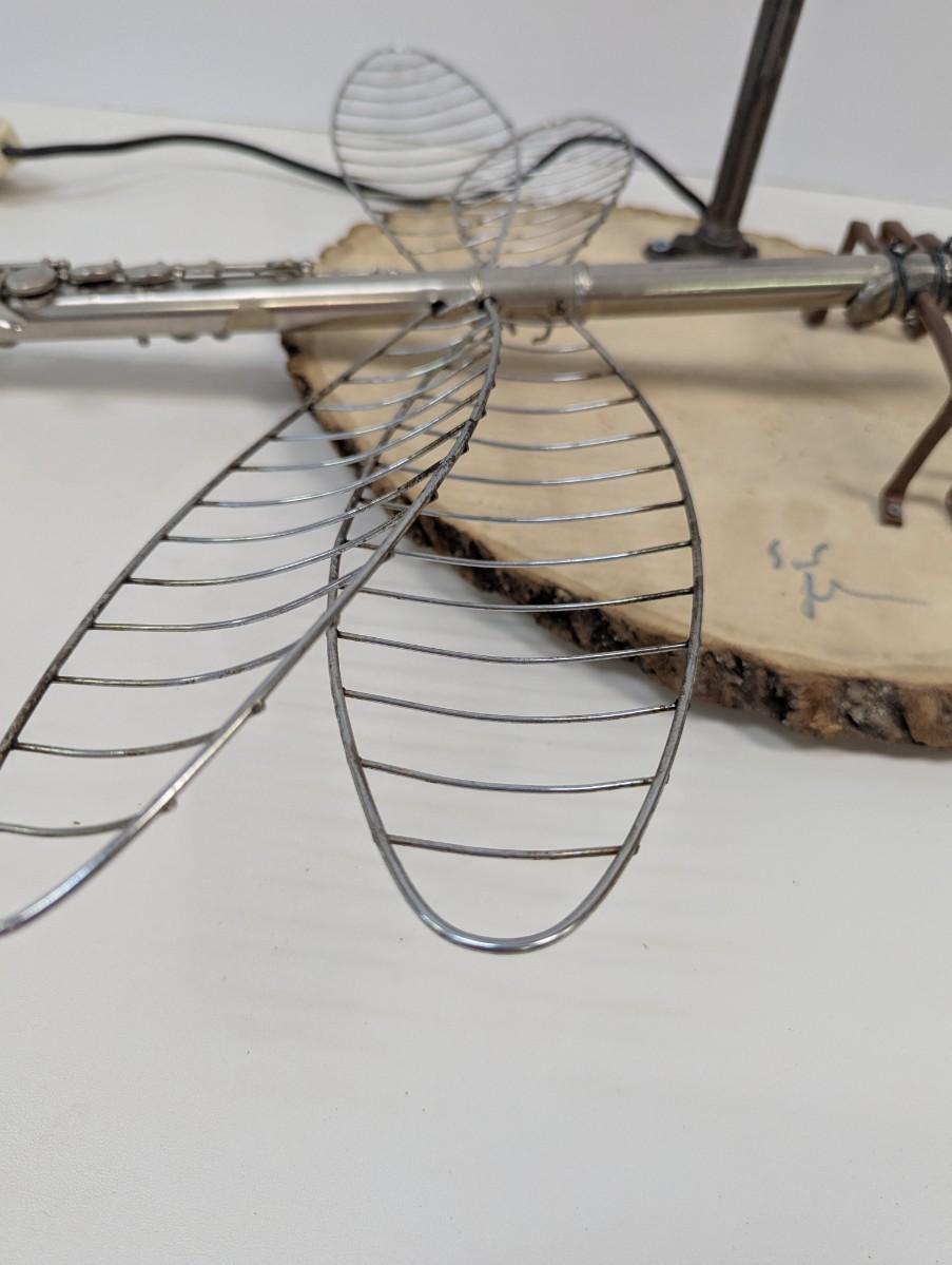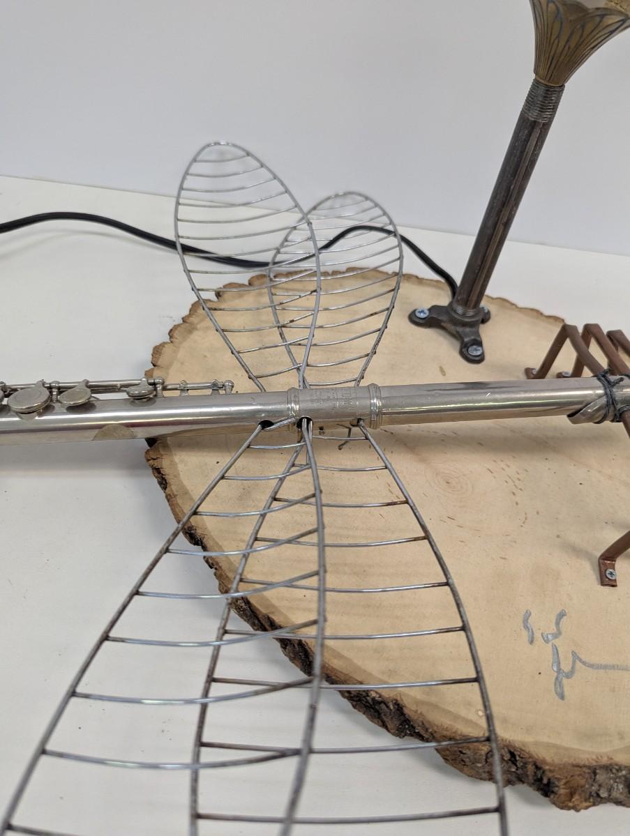 Artist Signed Vintage Dragon Fly Body Is A Flute & Metal Legs & Wings - Untested