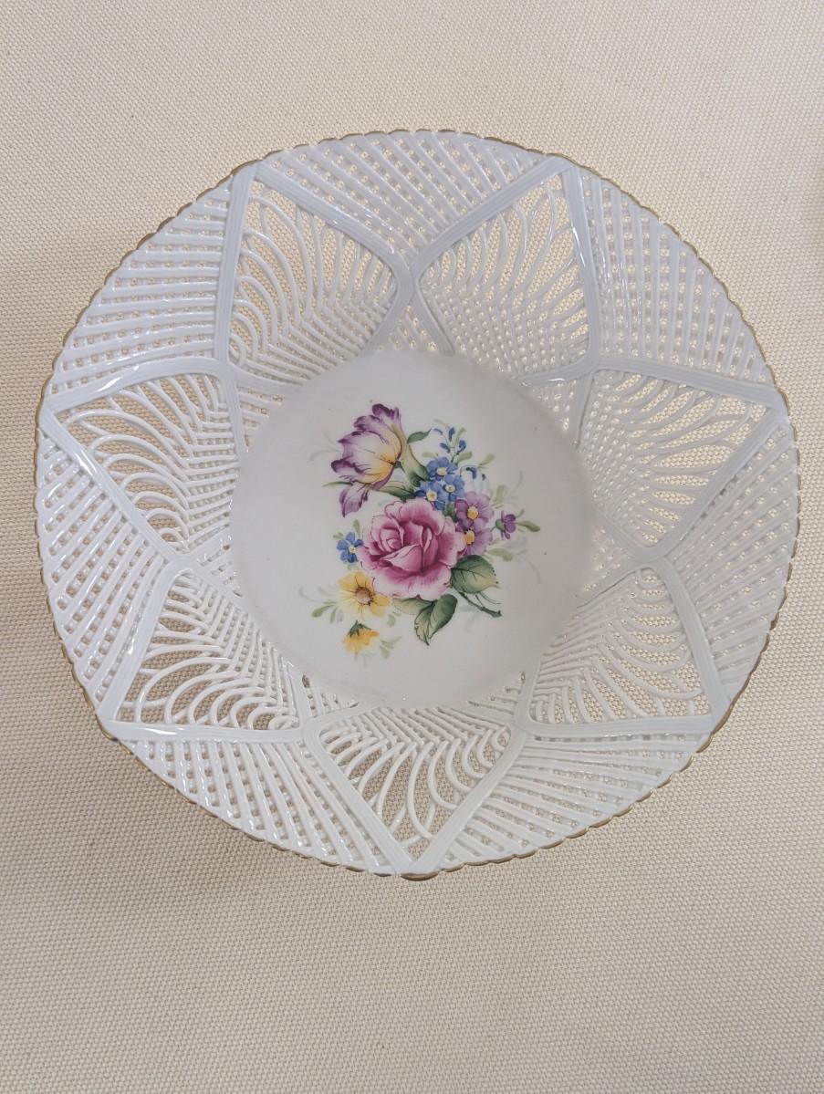 Vintage Klausenburg Porcelain Reticulated Basket Weave Bowl