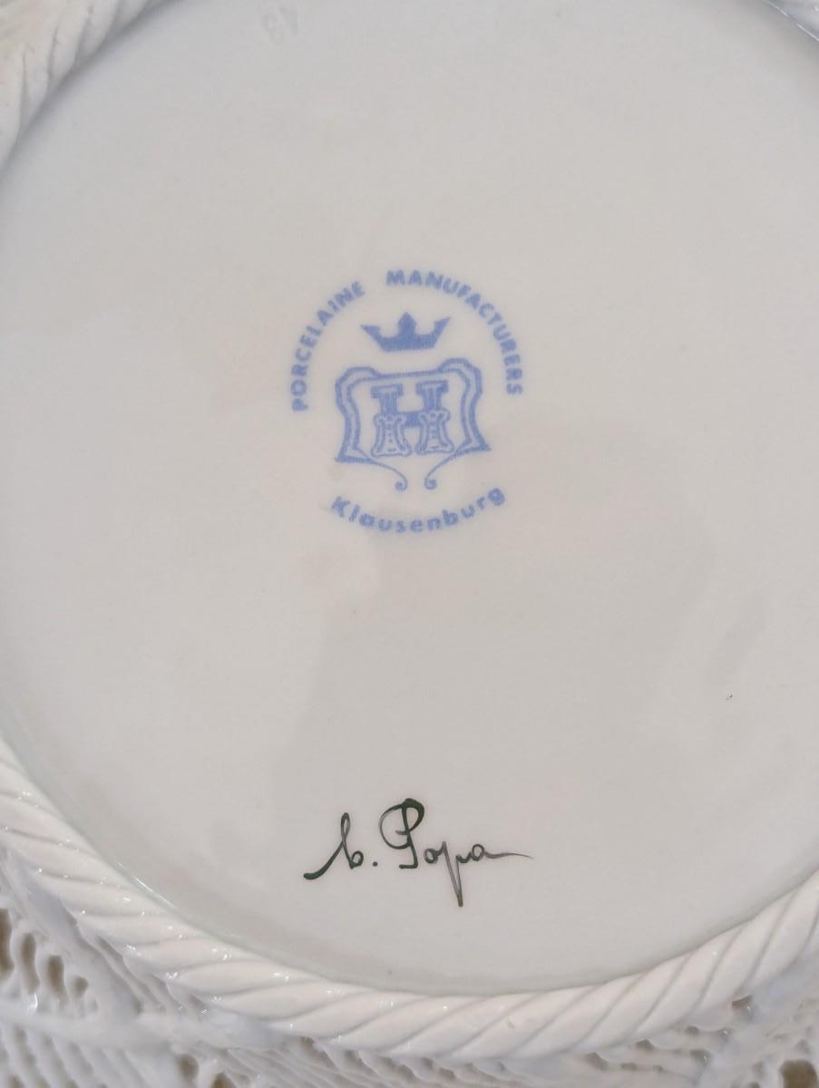 Signed Vintage Klausenburg Porcelain Reticulated Basket Weave Bowl