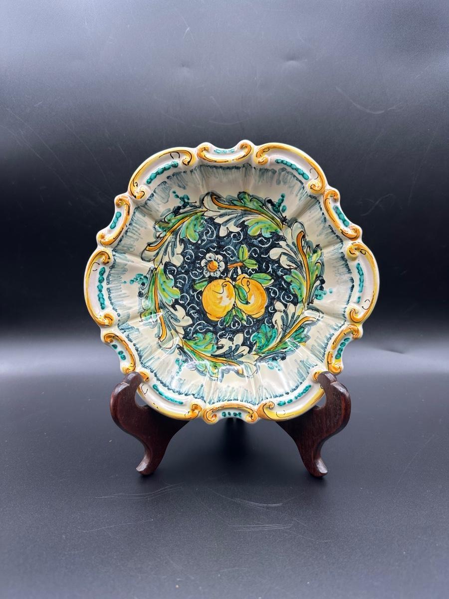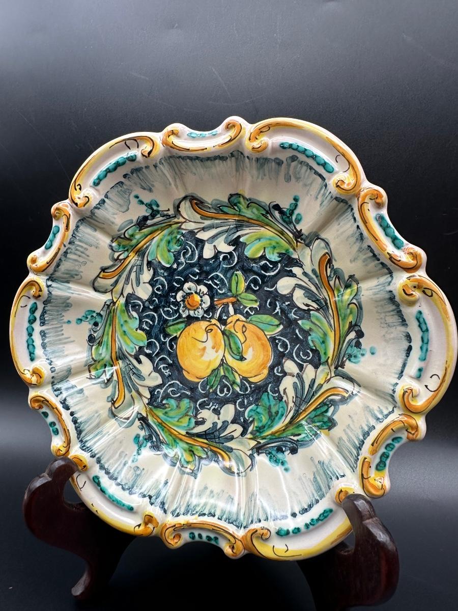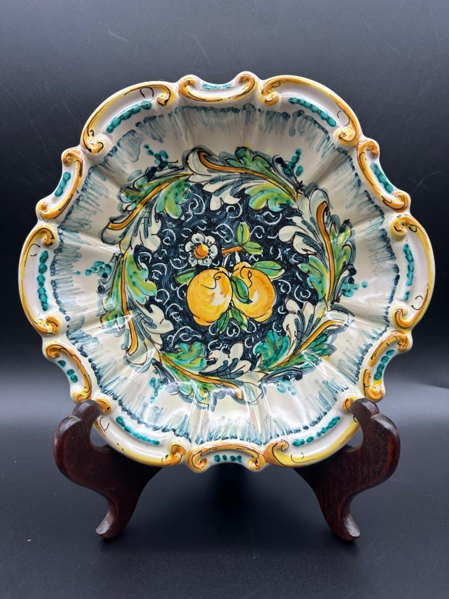 Vintage Sicilian Caltagirone Hand Painted Pottery dish.