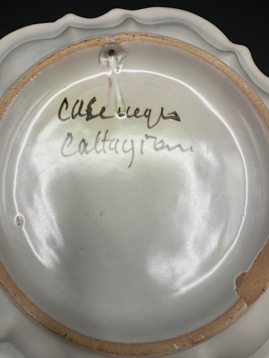 Signed VTG Sicilian CALTAGIRONE Hand Painted Pottery Dish
