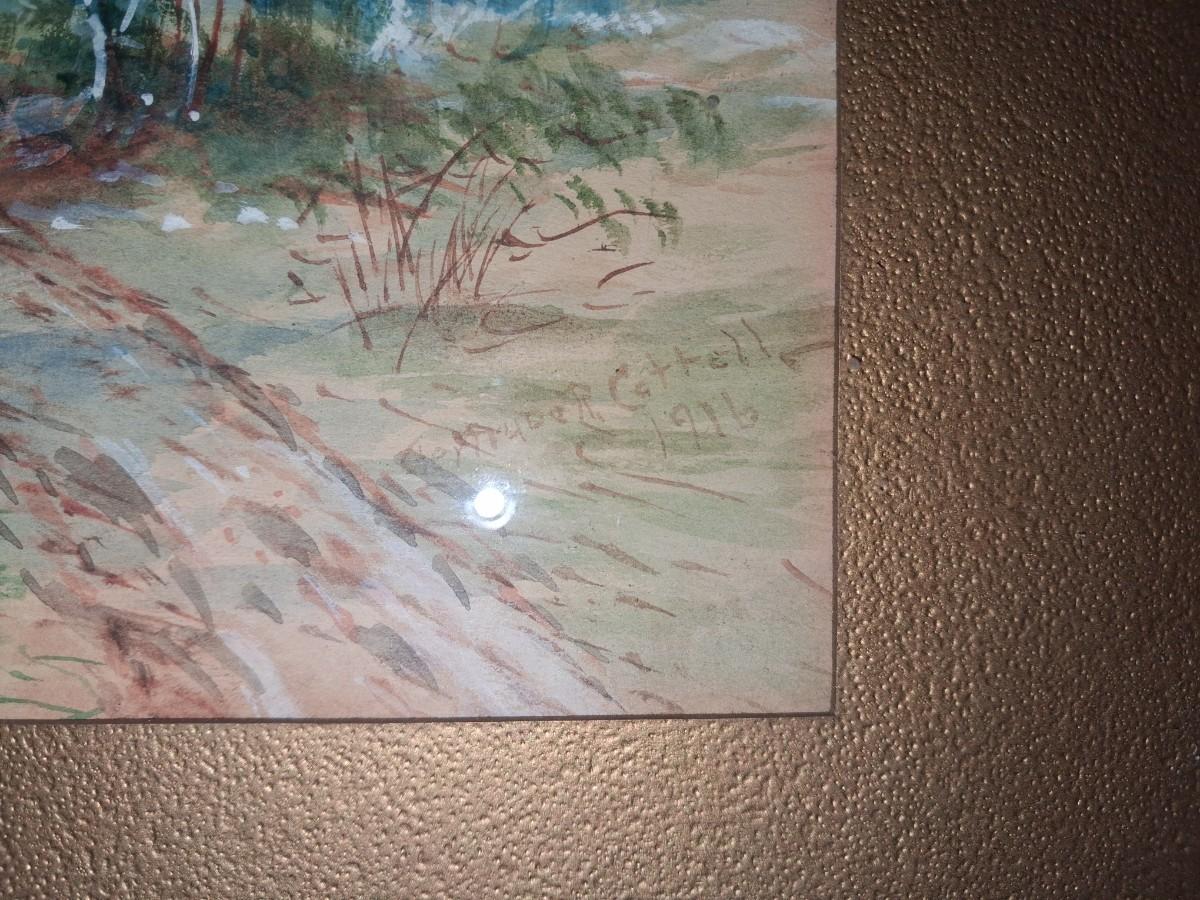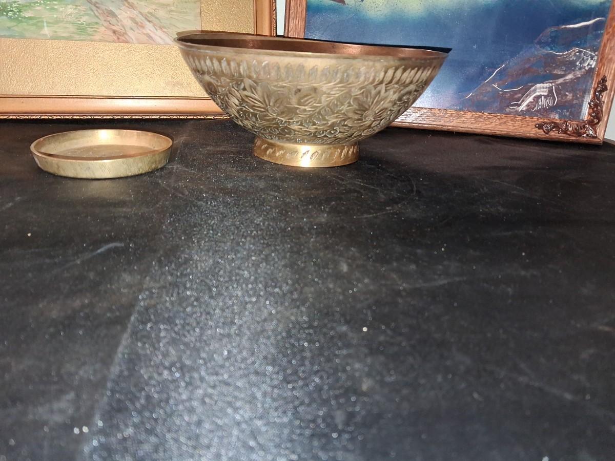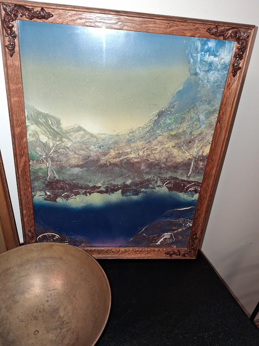 SIGNED WATERCOLOR AND SCENERY PICTURE PLUS BRASS BOWL