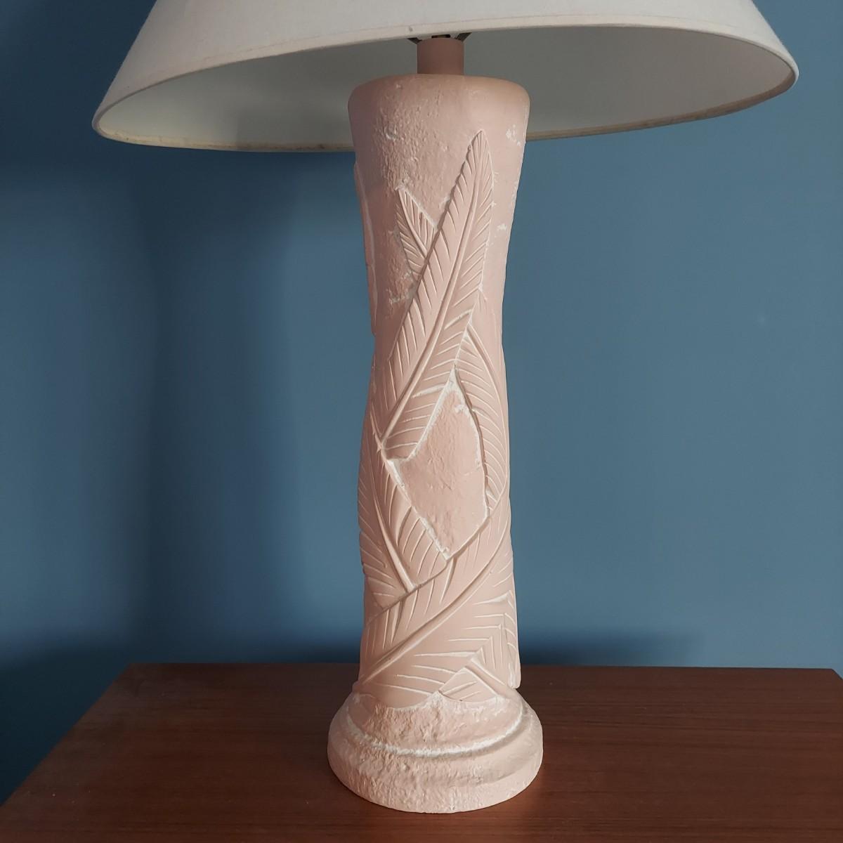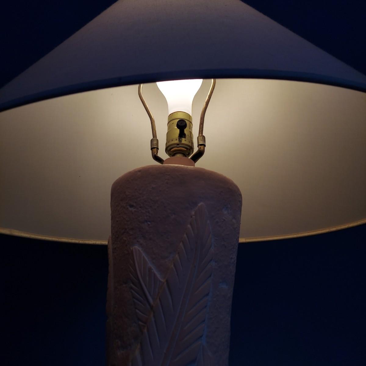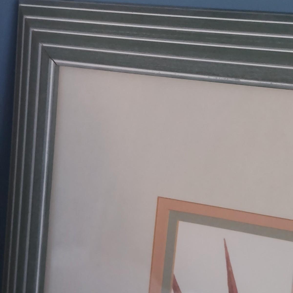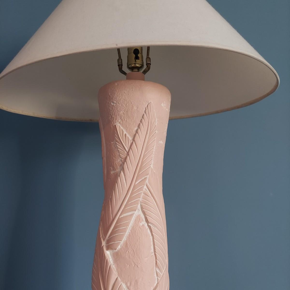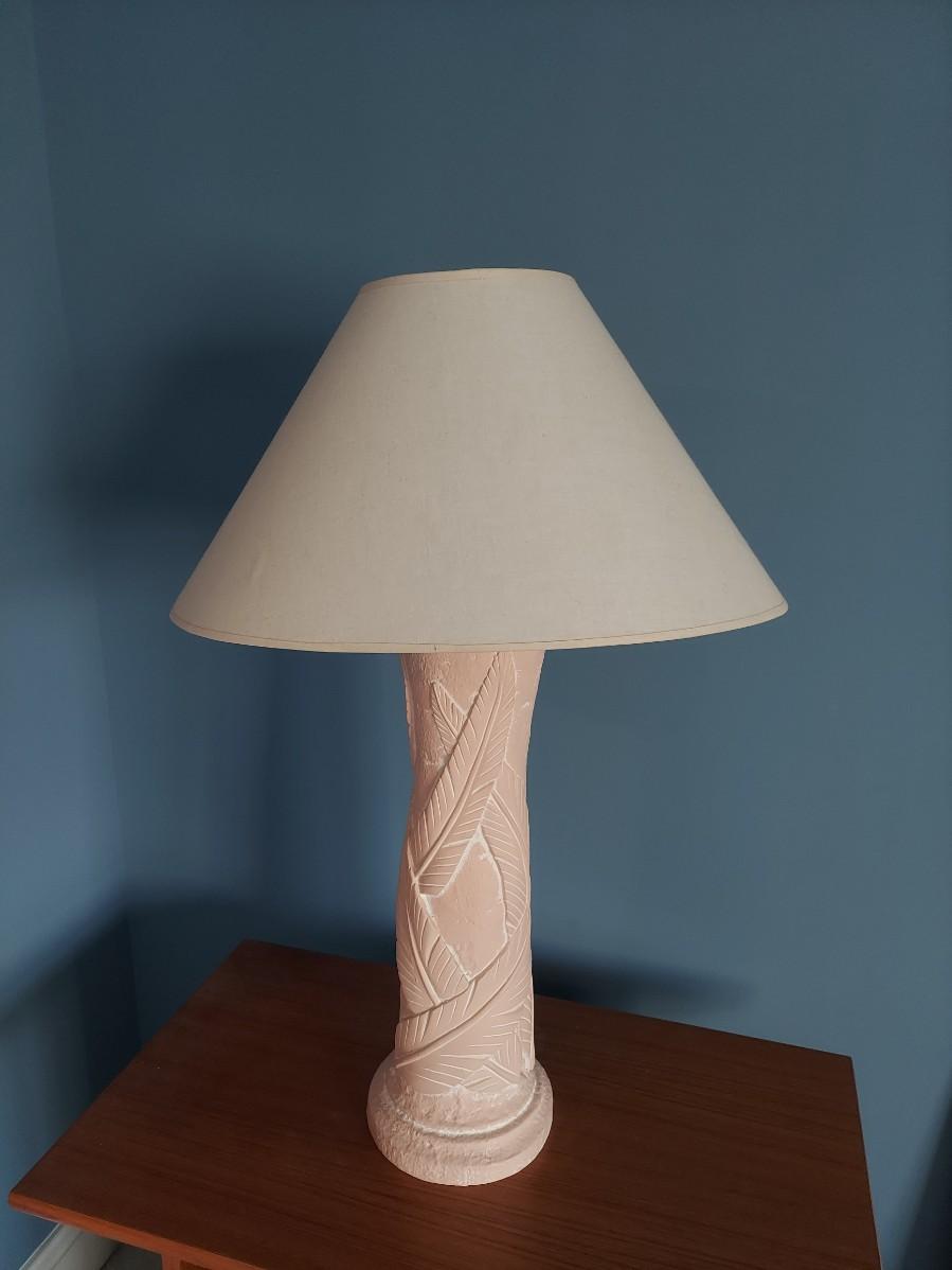 Beach themed decor including two signed watercolor prints with triple matte and matching wood frames. Frames measure 21.5” x 24.5"H. Also a ceramic lamp with palm leaf carvings that appears to be terracotta. Lamp is 33"H with a cloth shade measures approximately 22” x 14”. Please see photos for details. Local Pickup Only