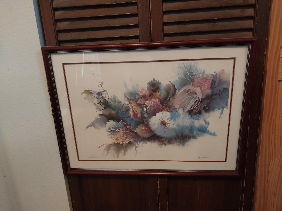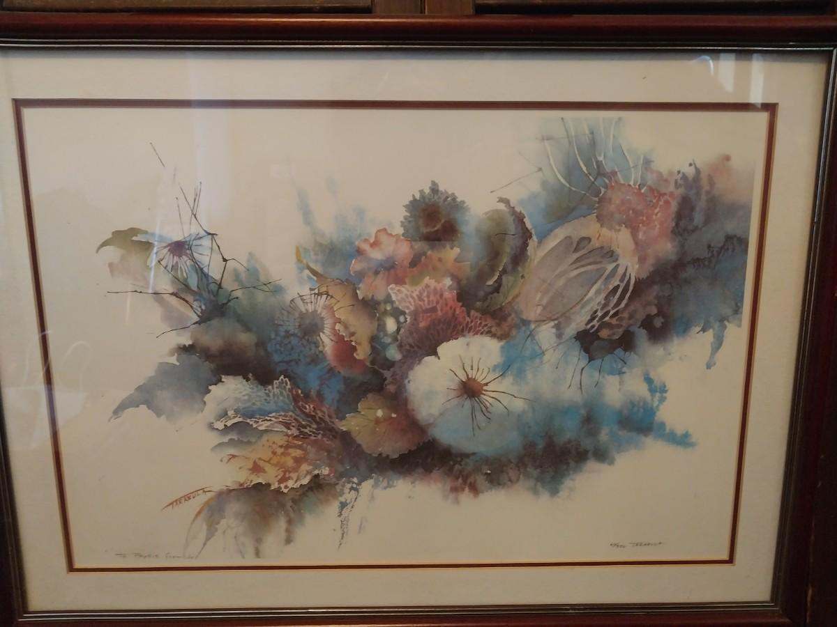 SIGNED WATERCOLOR BY TARABULA AND 2 FLOOR LAMPS