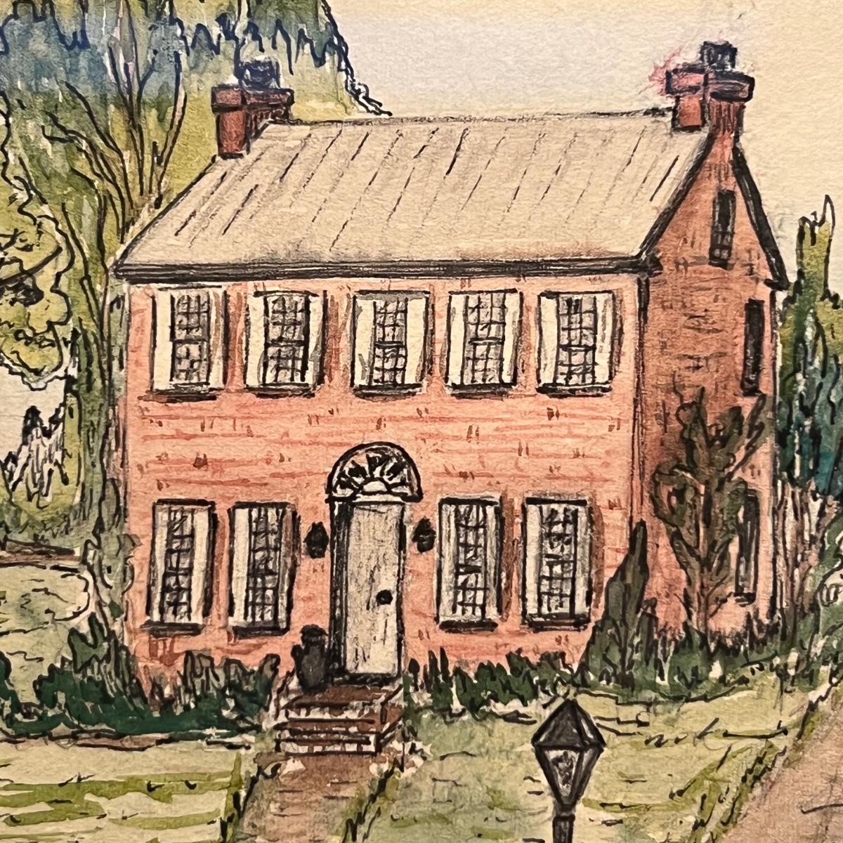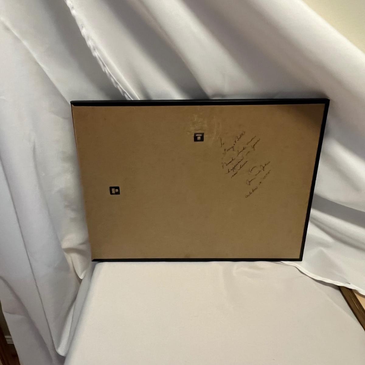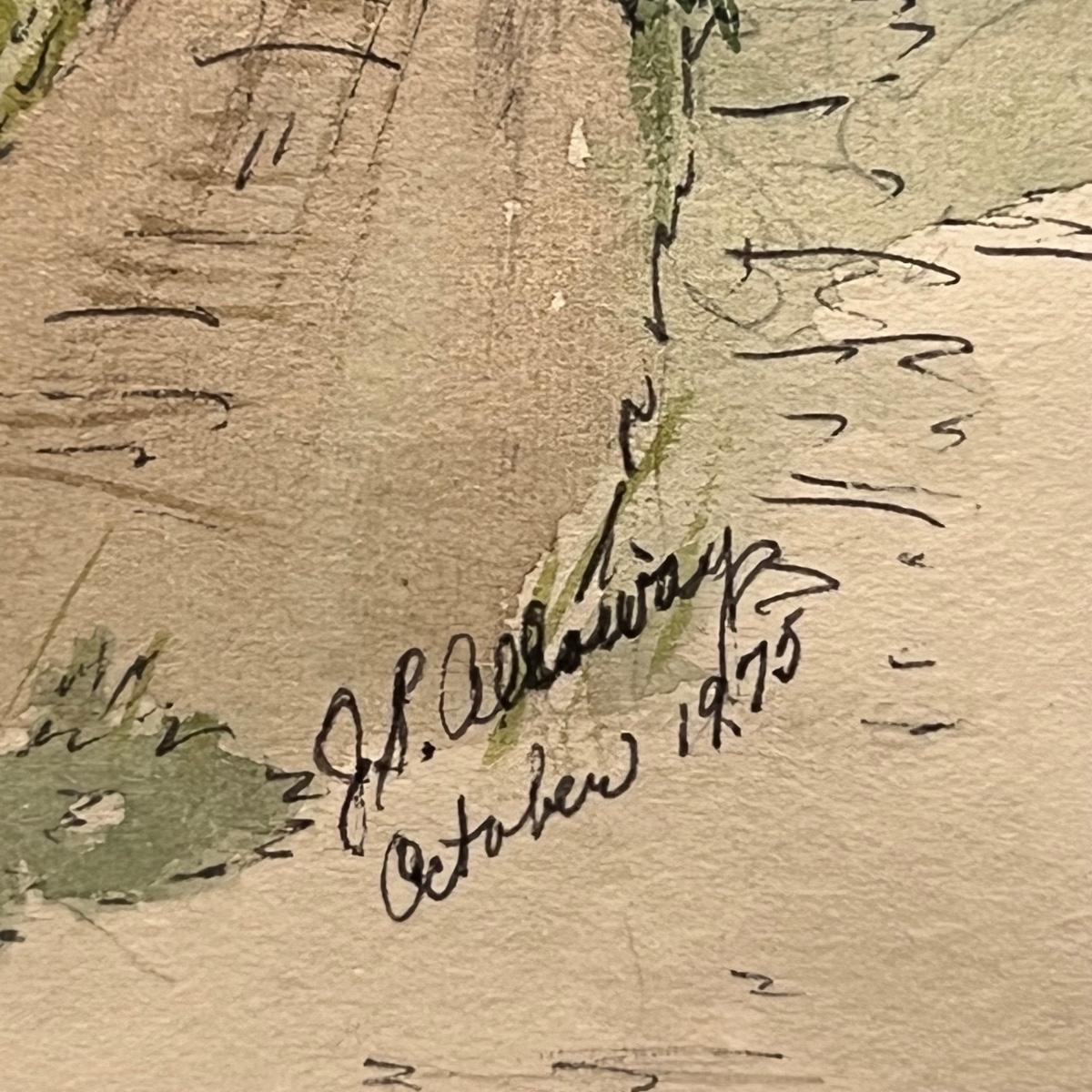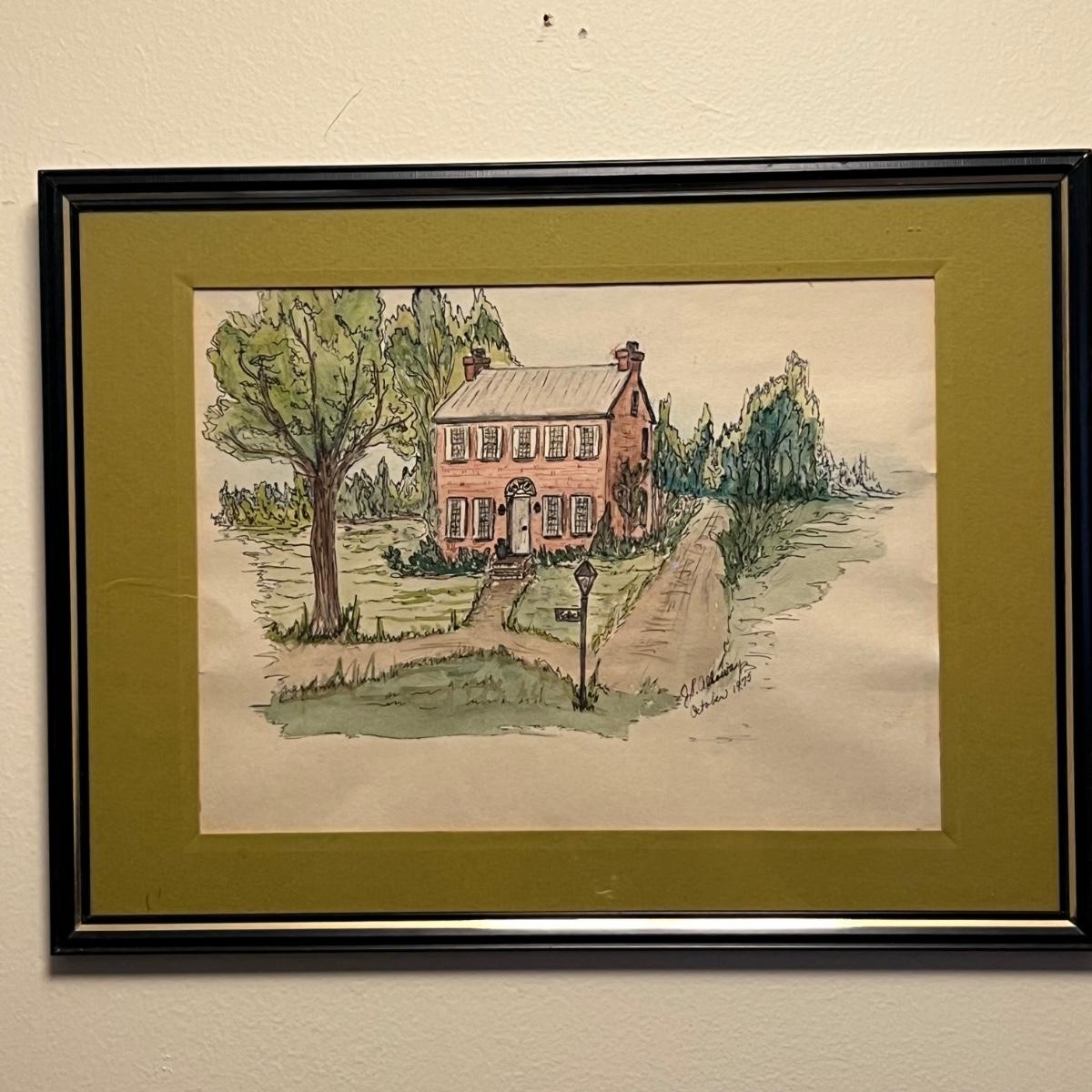 This watercolor painting appears to be an original and has a penned signature with a date of October 1975. Matted, under glass and mounted in a composite dark brown frame that measures 16” x 12”.
