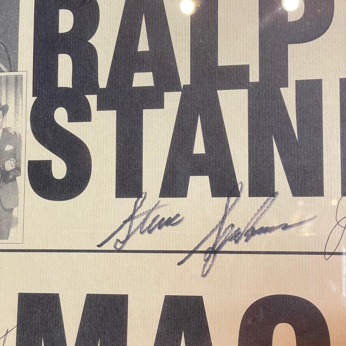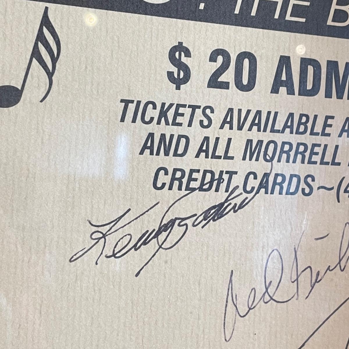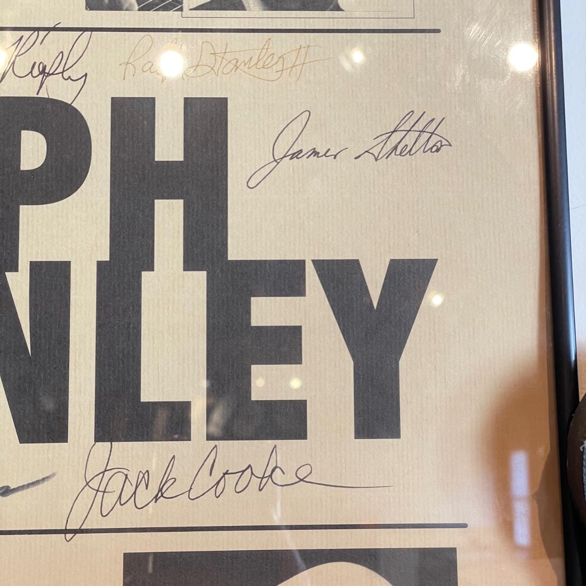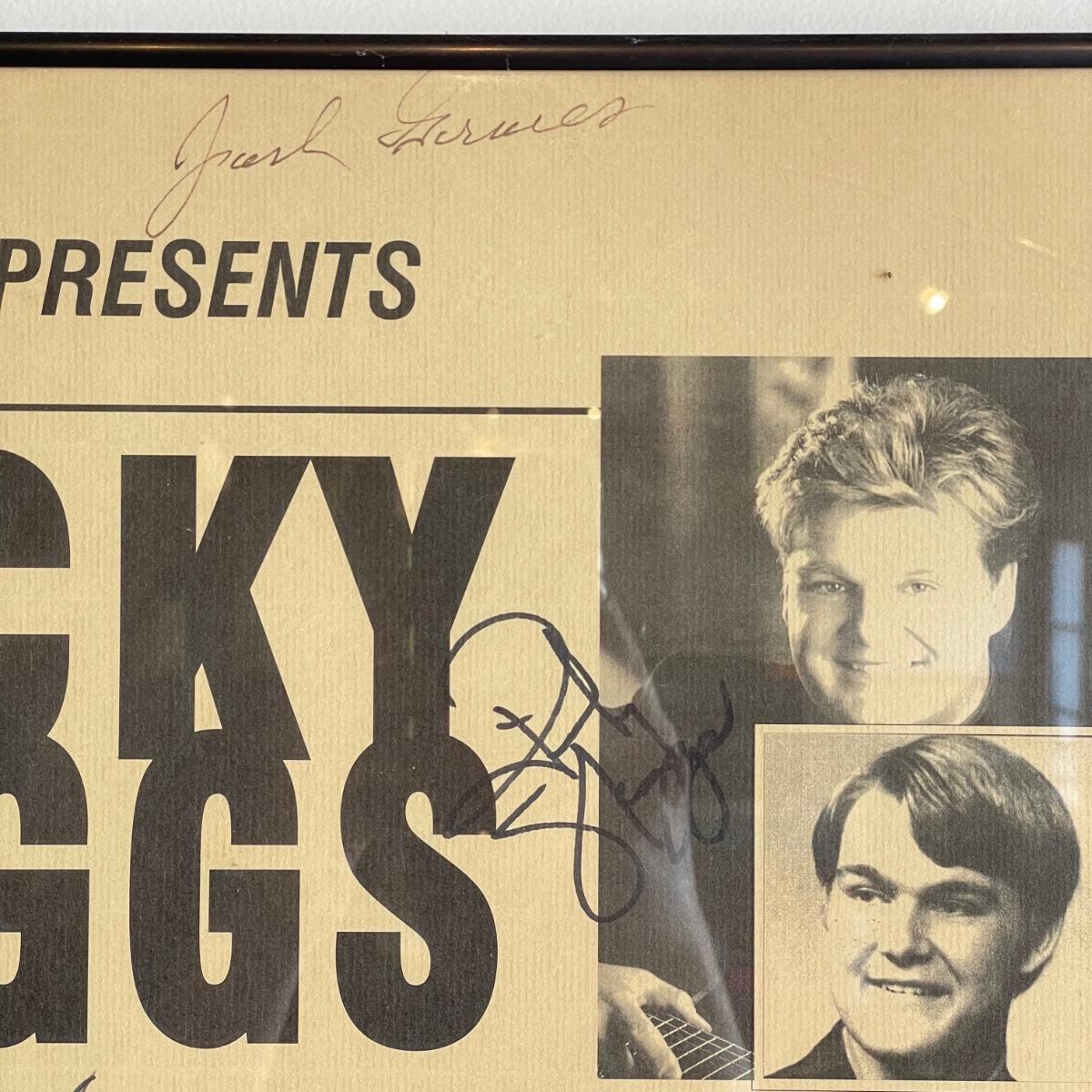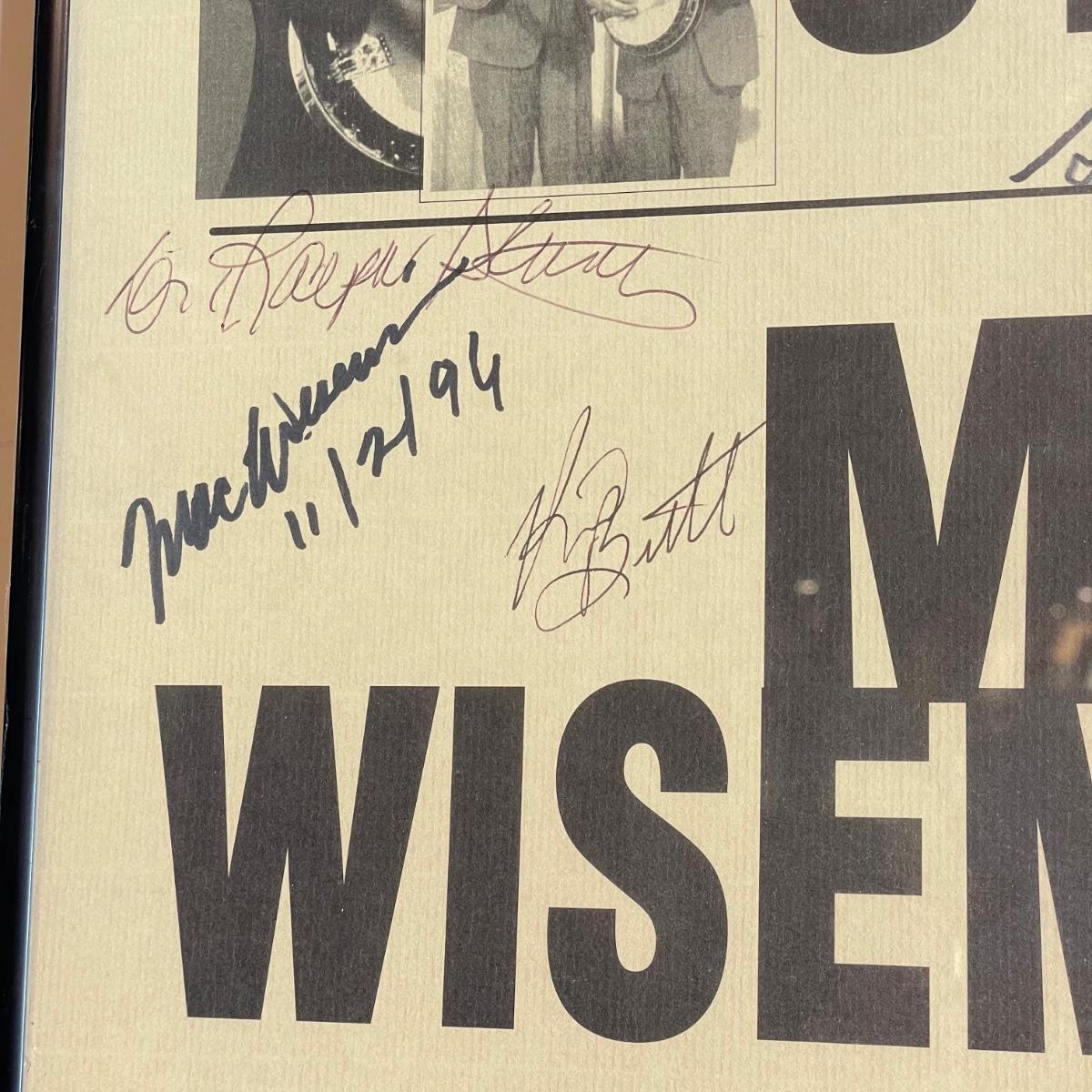 Signed and framed poster. The Birthplace of Country Music Presents Ricky Skaggs, Ralph Stanley, Mac Wiseman and the Bristol All Stars. Over twenty signatures cover the poster dated 11/2/96. The black metal frame measures 17.25” x 28.25”. Shipping available. Please call UPS with dimensions at 828-252-6930 for a shipping quote prior to bidding.