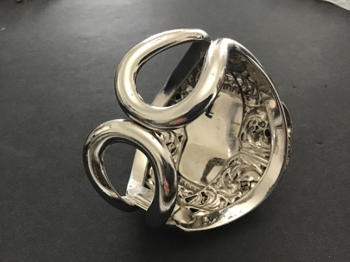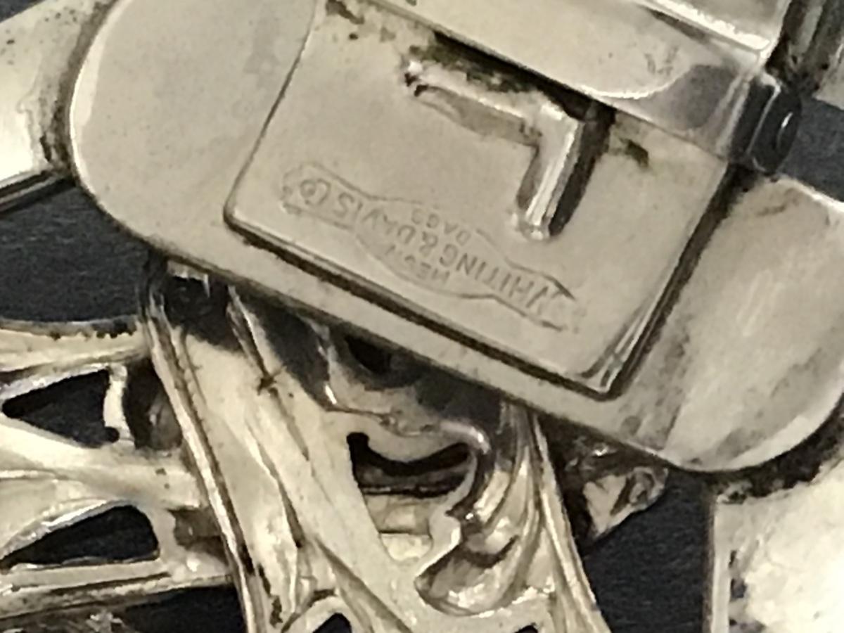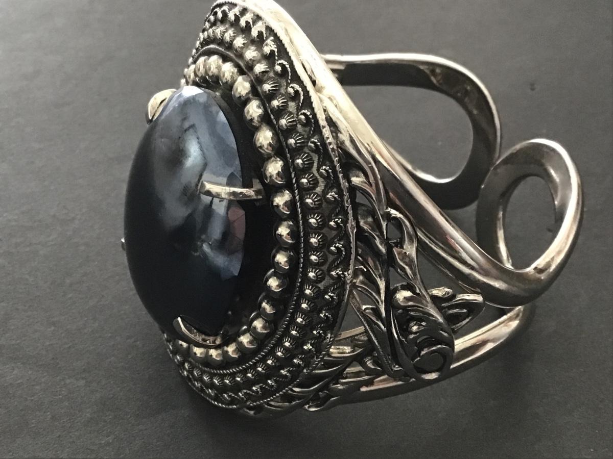 Signed Whiting and Davis Ornate Wide Oval Hematite Hinged Cuff