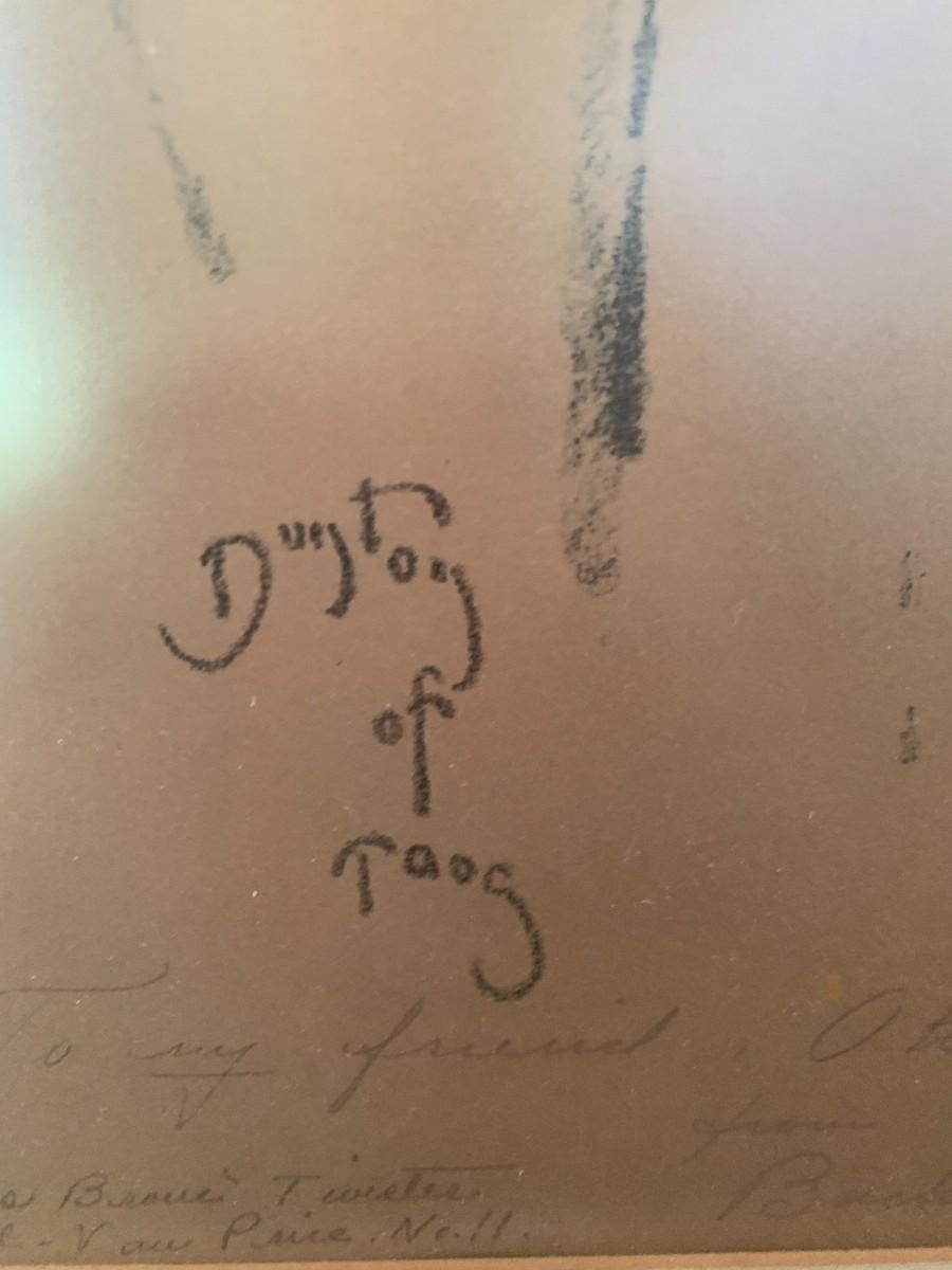 Limited Edition Lithograph Print Signed by the artist , William Herbert Dunton, in pencil along with a personal note to his friend Otis. The print is titled Texas Bronc Twister.