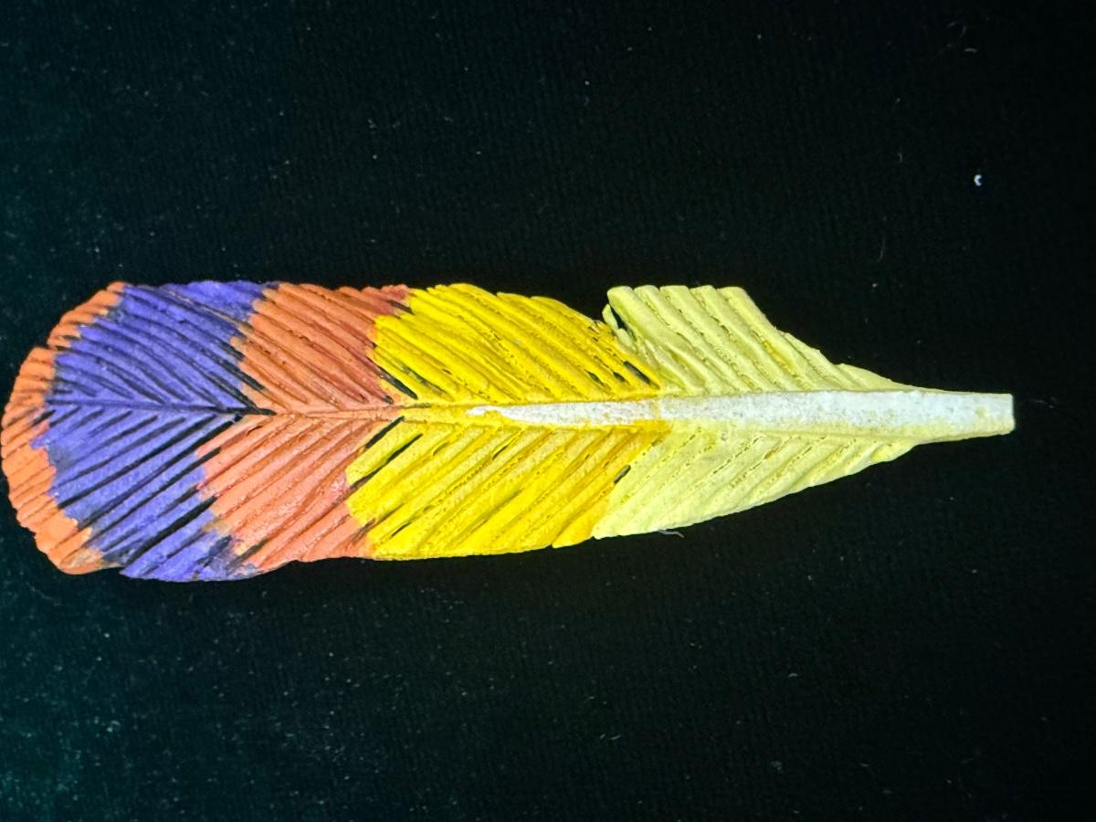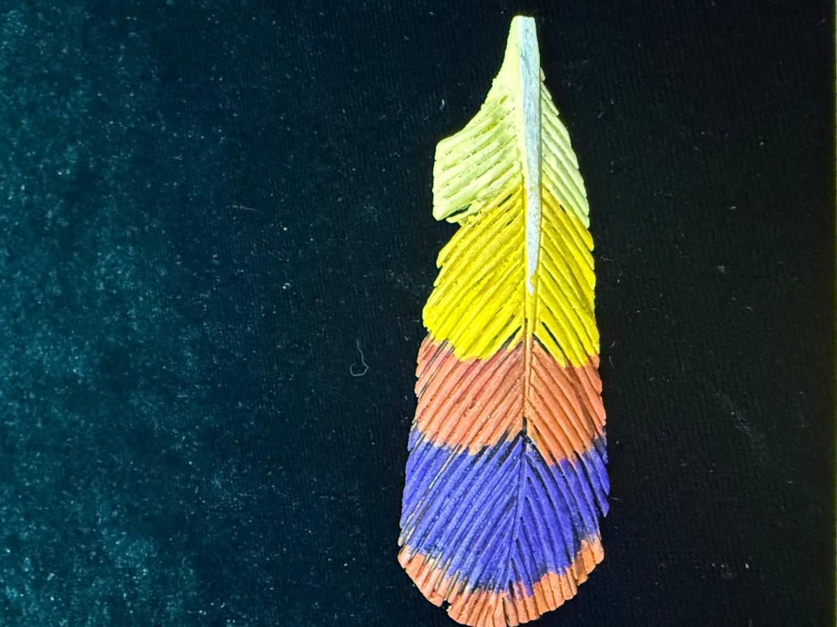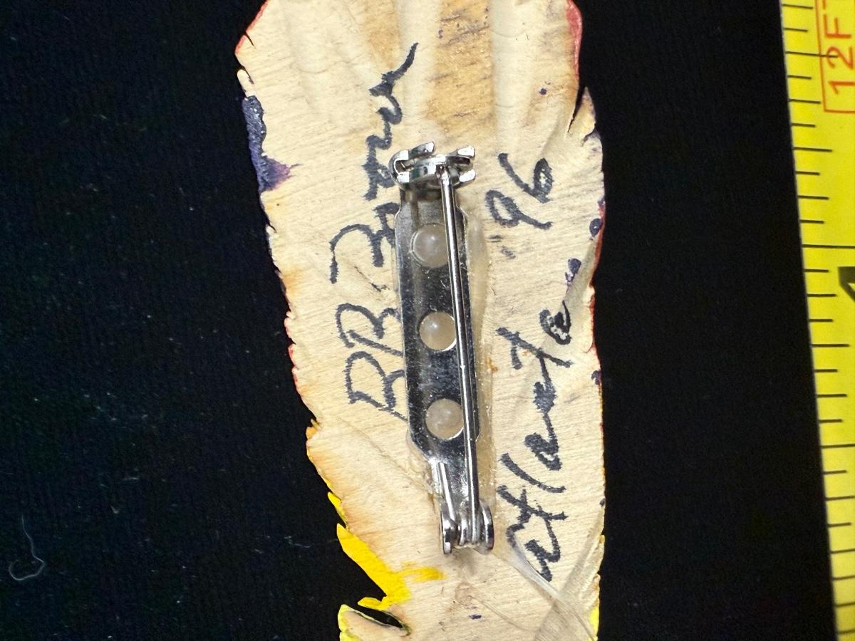 Signed Wooden Feather Pin