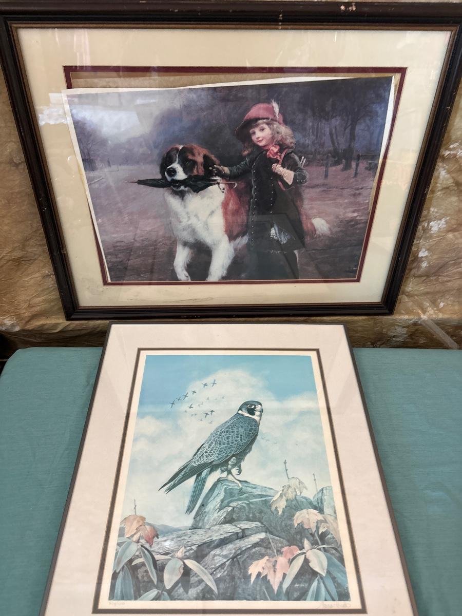 Falcon 21x25.5. Girl 30.5x25. Girl frame and print need love