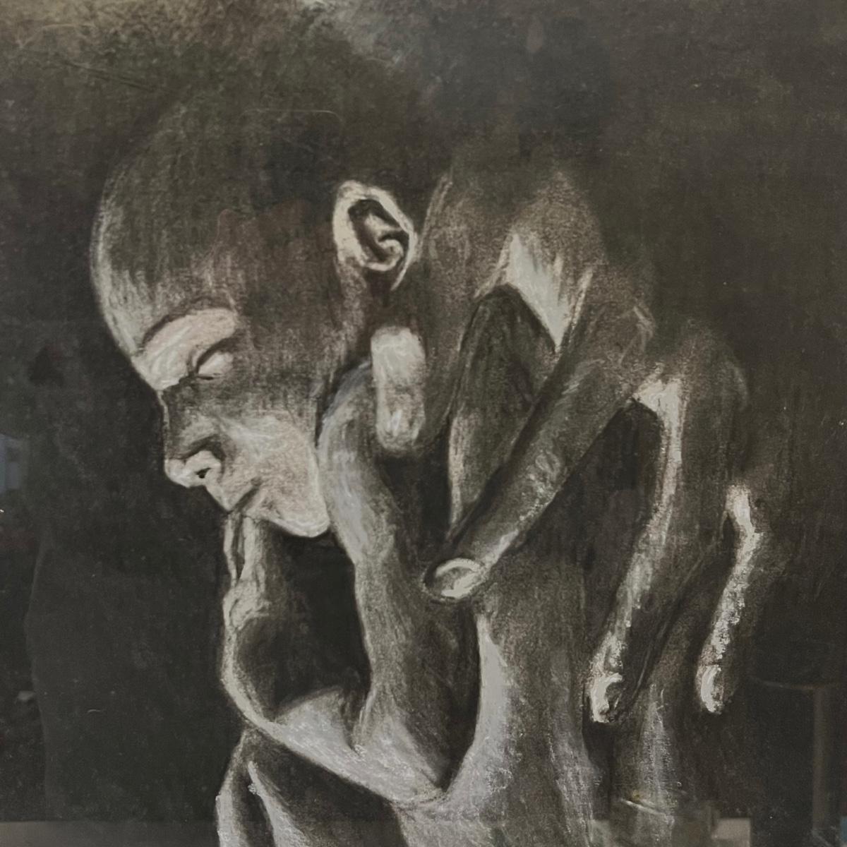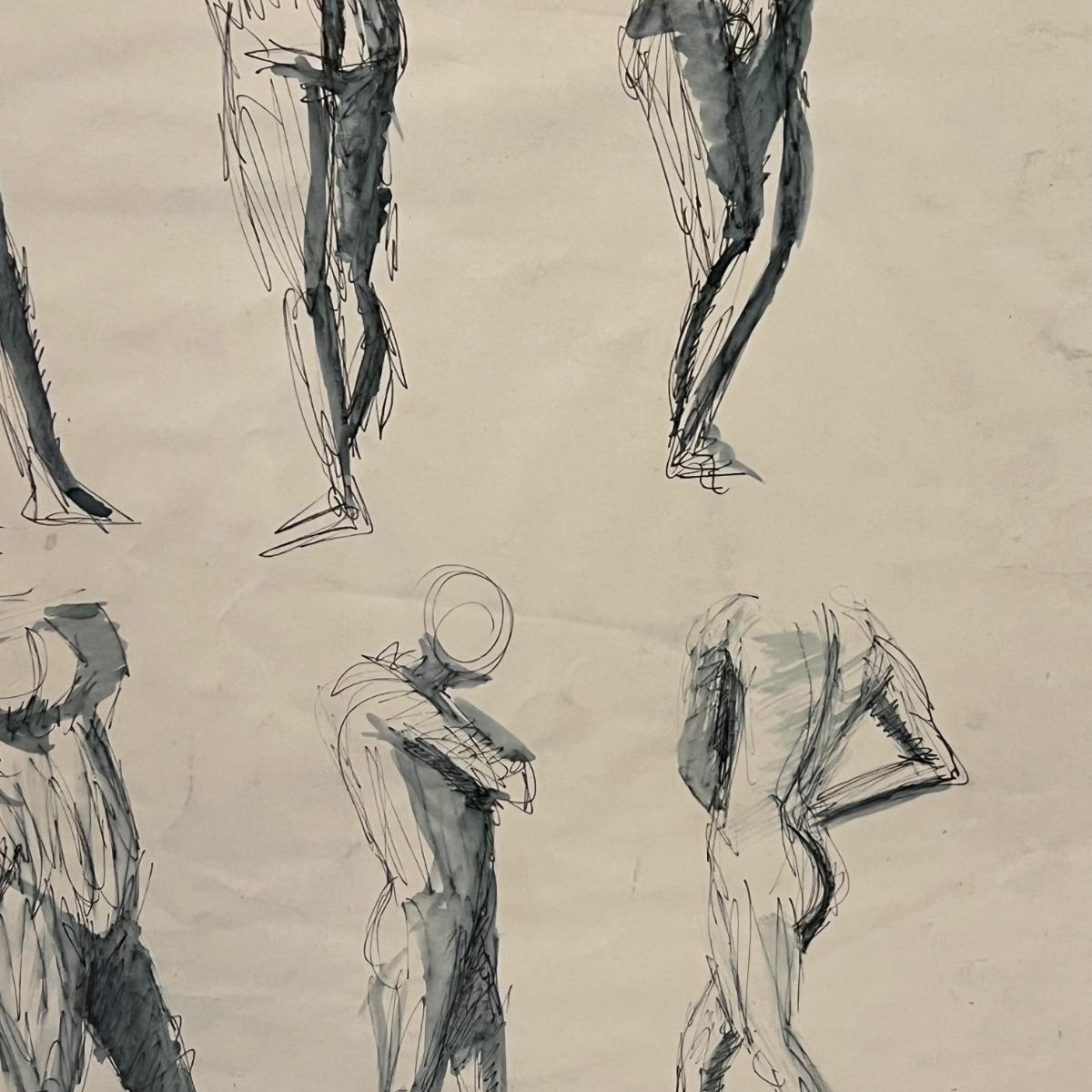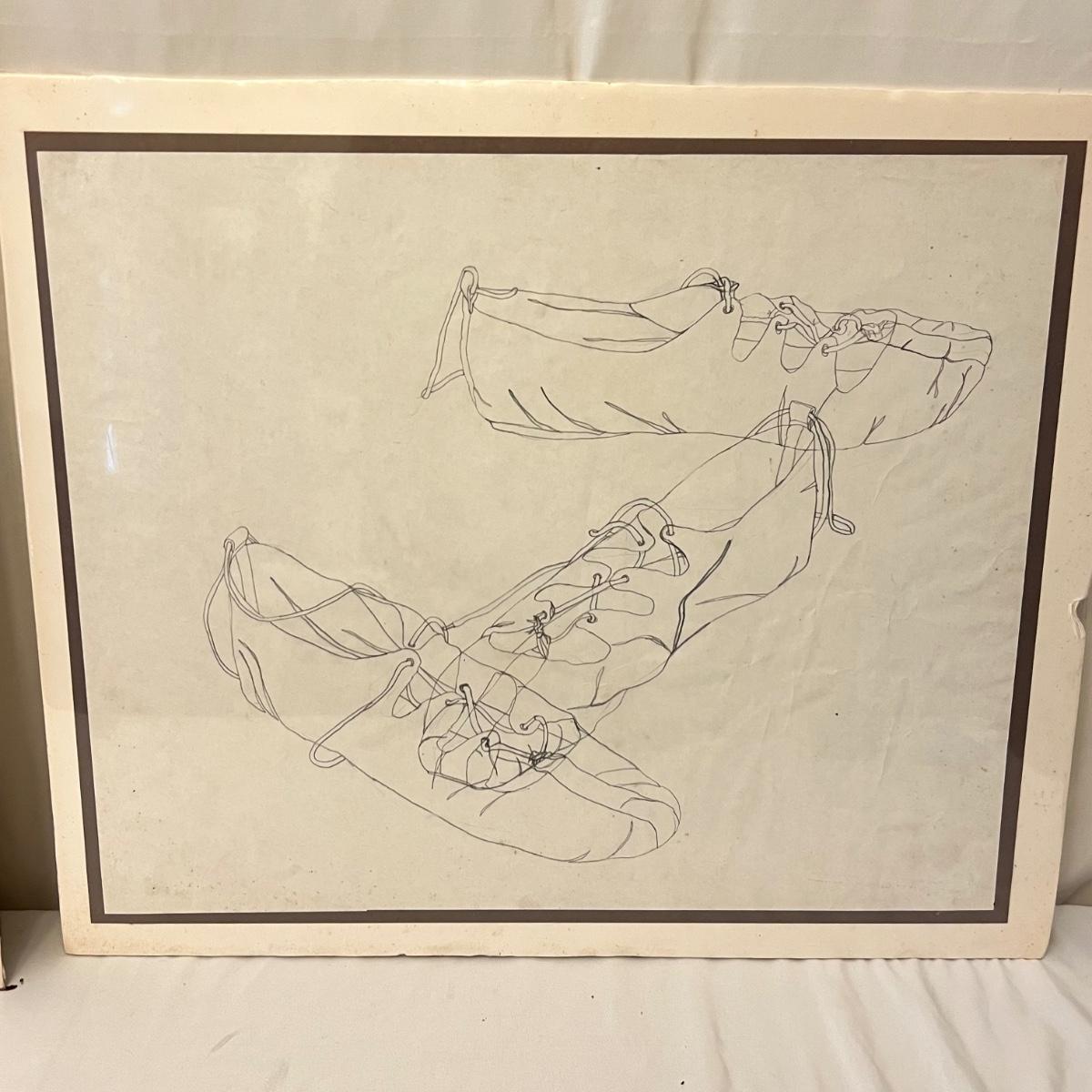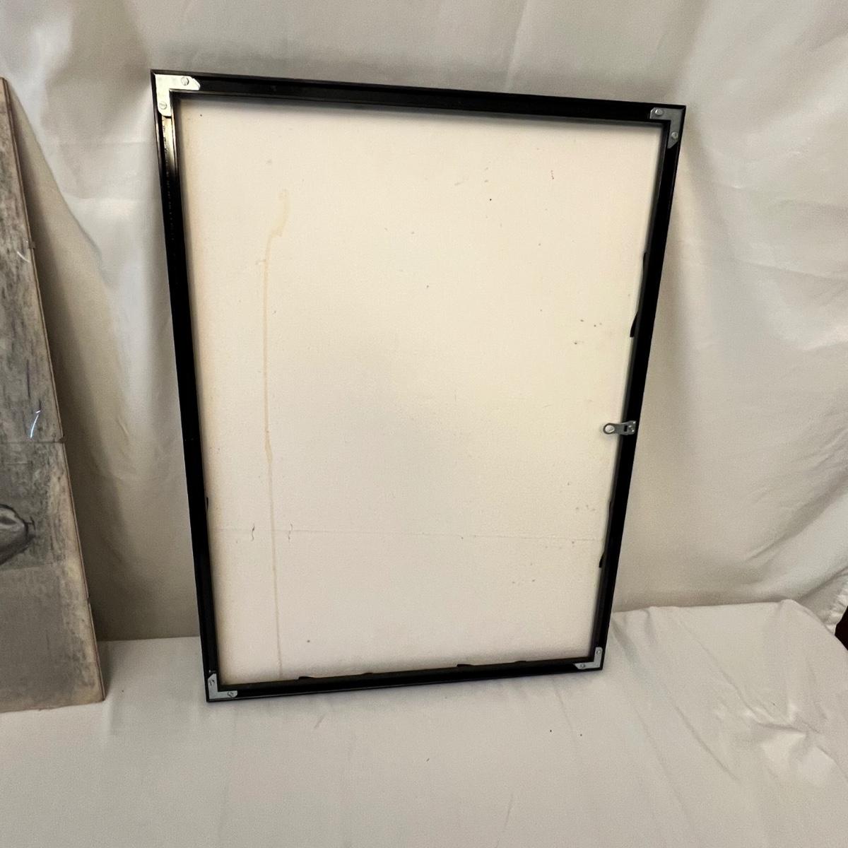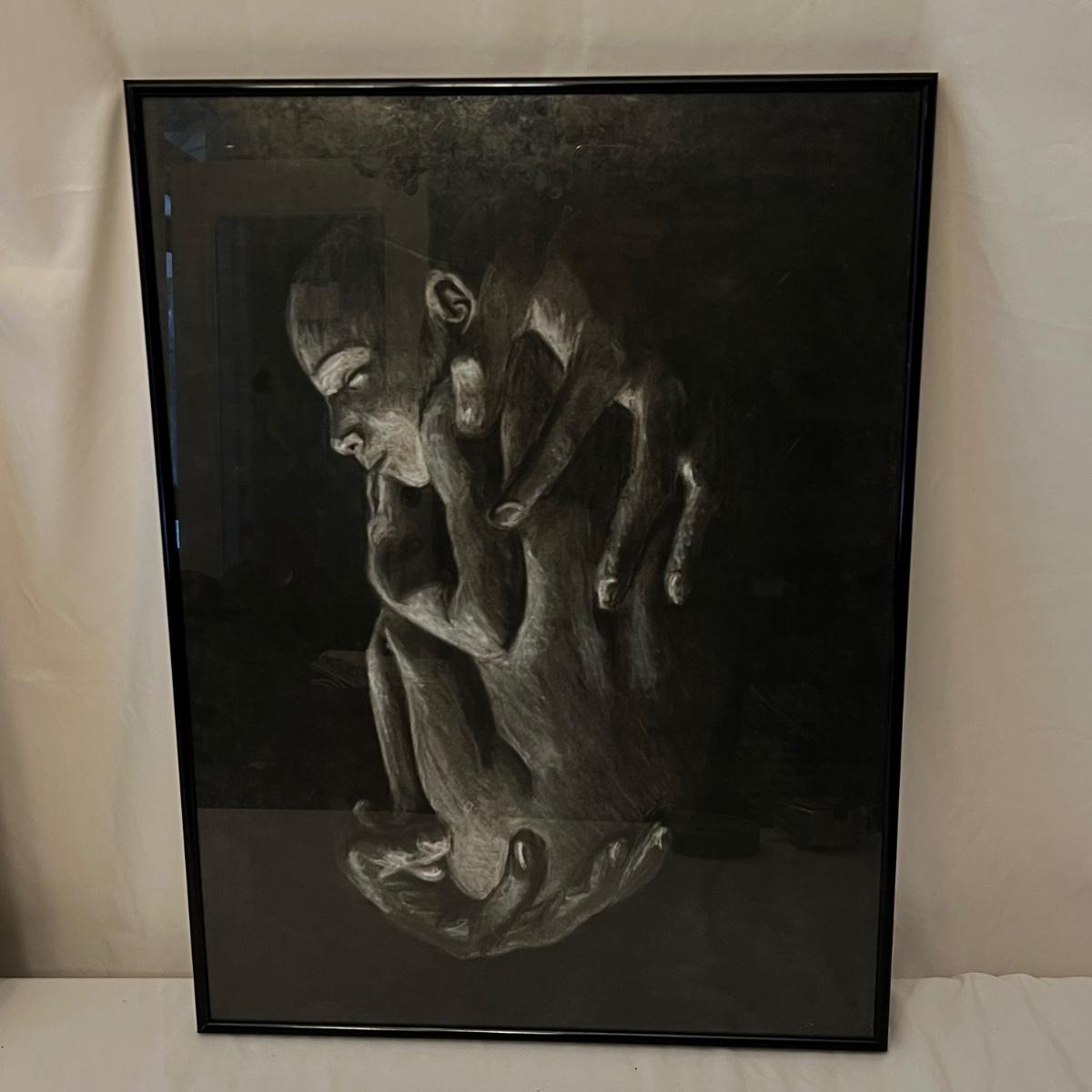 Five pieces of black, white and grayscale human form art. The female form in a black metal frame (measures 16” x 20”H) is pencil signed and numbered; signature is hard to read but is possibly E. Renee Jones. This is the only piece under glass but two more have plastic frames and plexiglass. The other two are unframed and in plastic sleeves.