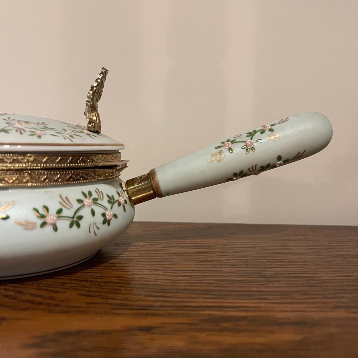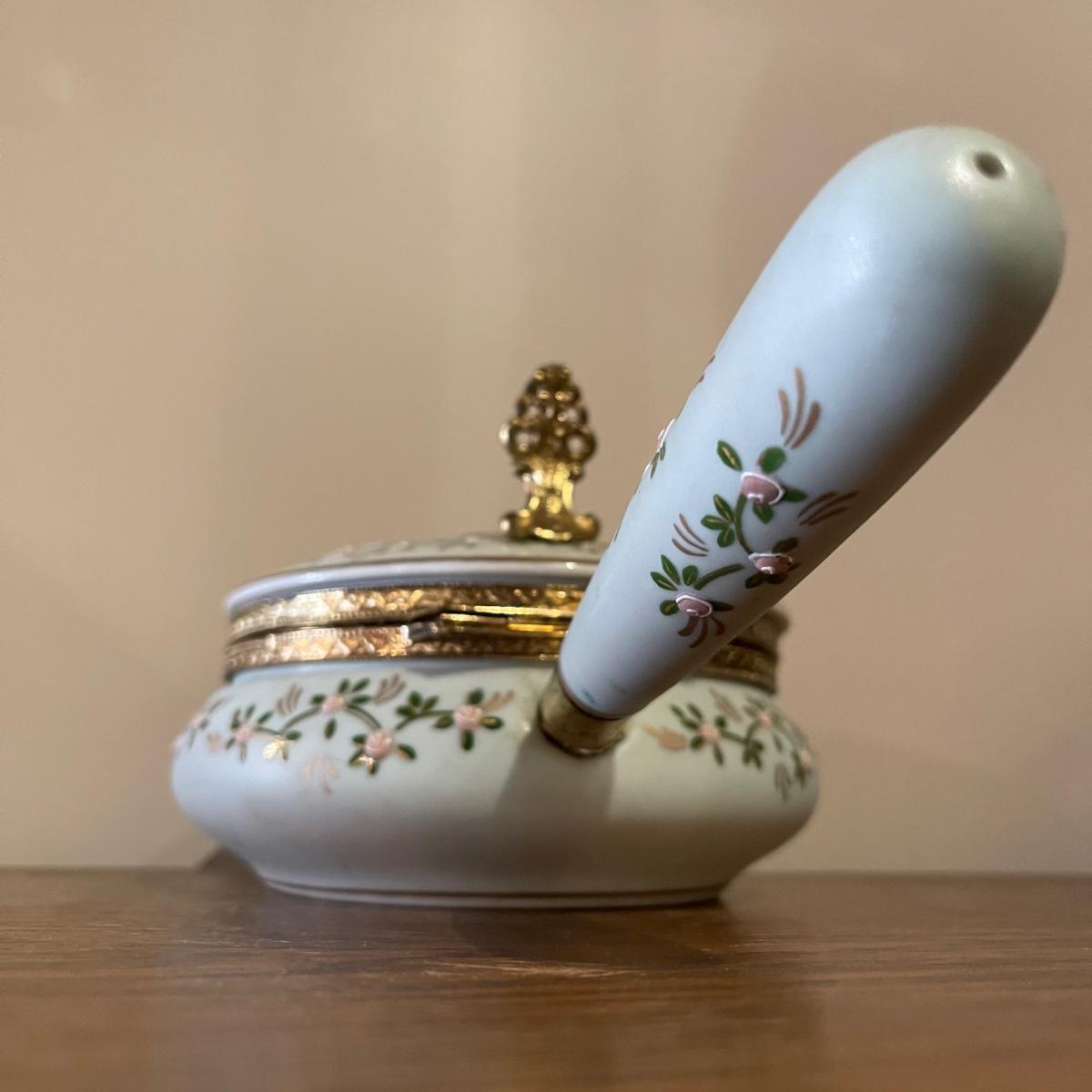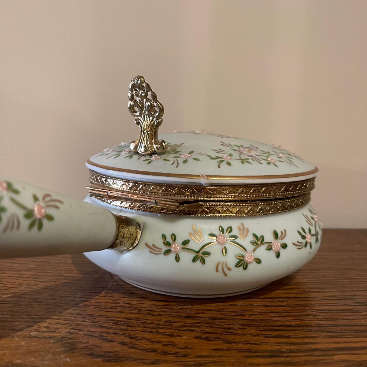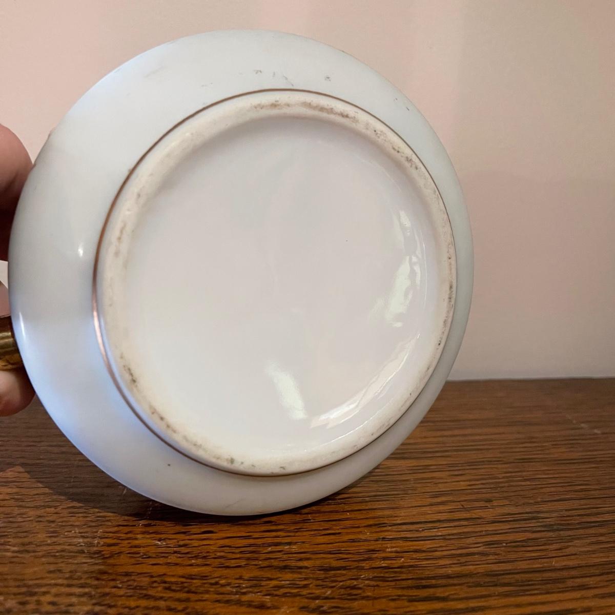 Items in this lot include a silent butler, miniature spoon and ship dish, and a set of salt and pepper shakers. The silent butler is ceramic and is decorated with hand-painted flowers, there is no signature. The small ship dish is a viking ship and has a tiny spoon to match. The underside of the ship says “Stopt Tinn Pewter” and “Tinn-per-norway” on both the ship and spoon. Lastly the two matching miniature salt and pepper shakers also have “pewter” on their undersides.