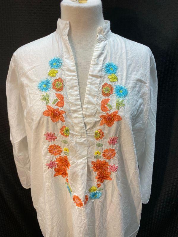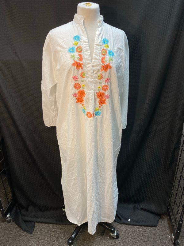 Silhouettes Flower Embroidered Cotton Night Shirt Loungewear Kaftan Size XL YD#020-1220-02059