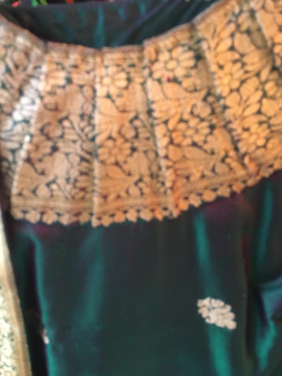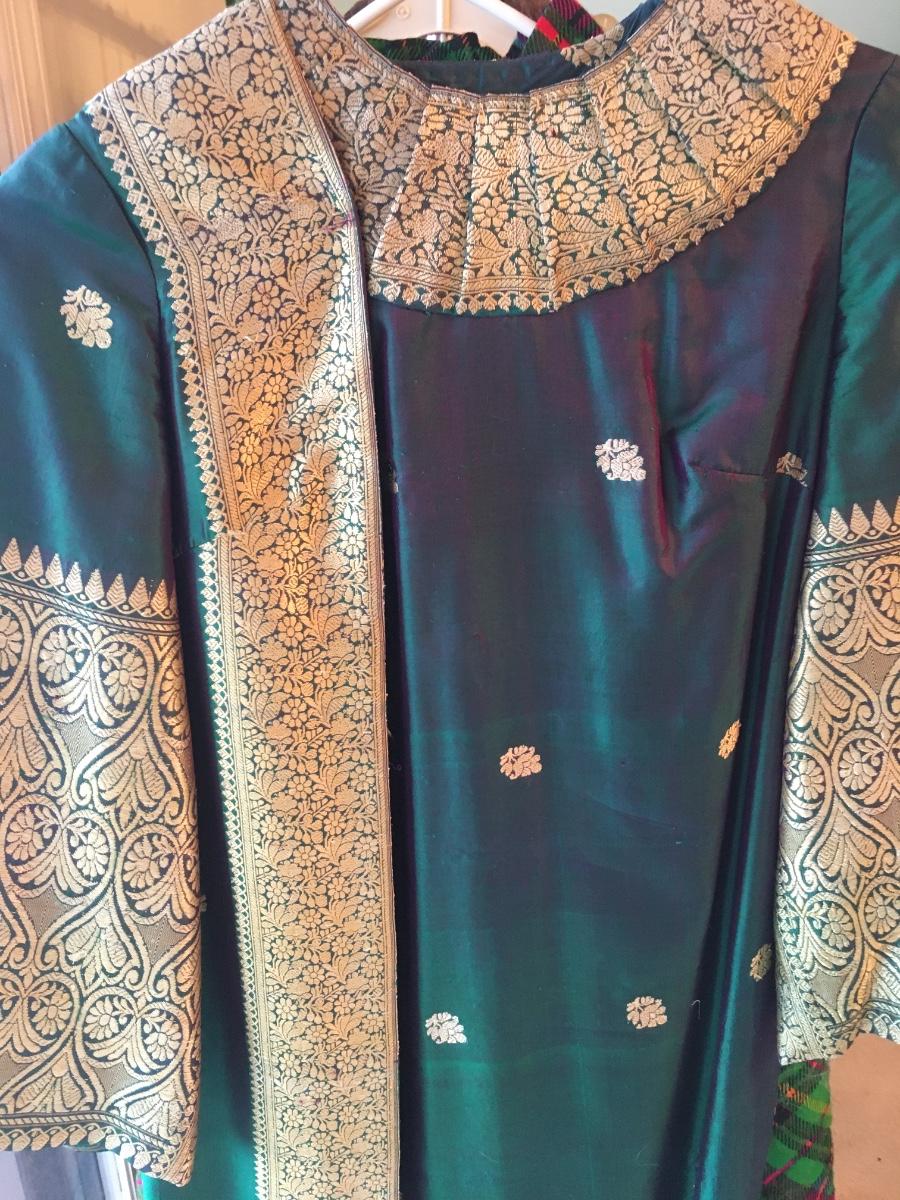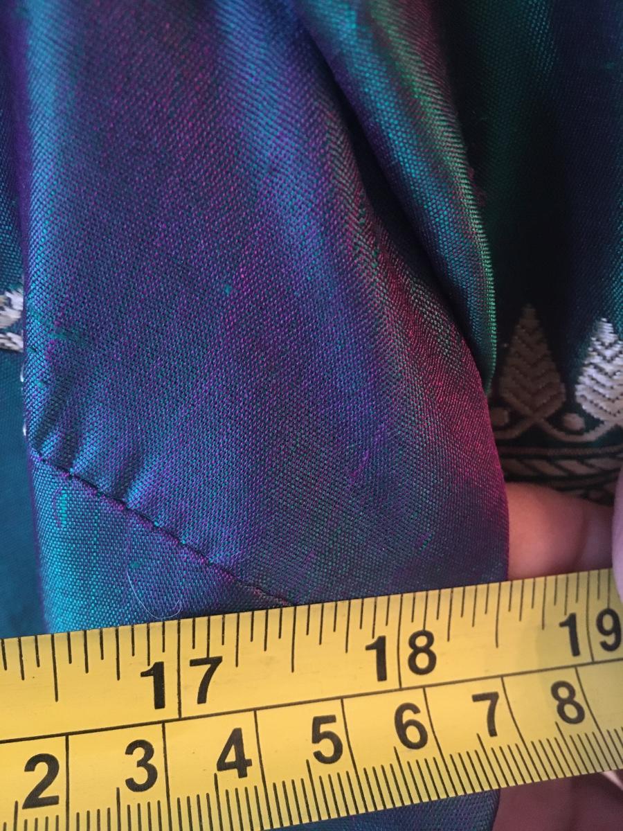 Sloor length dress snaps at neckline and shoulder. Fully lined. Luxurious feel.