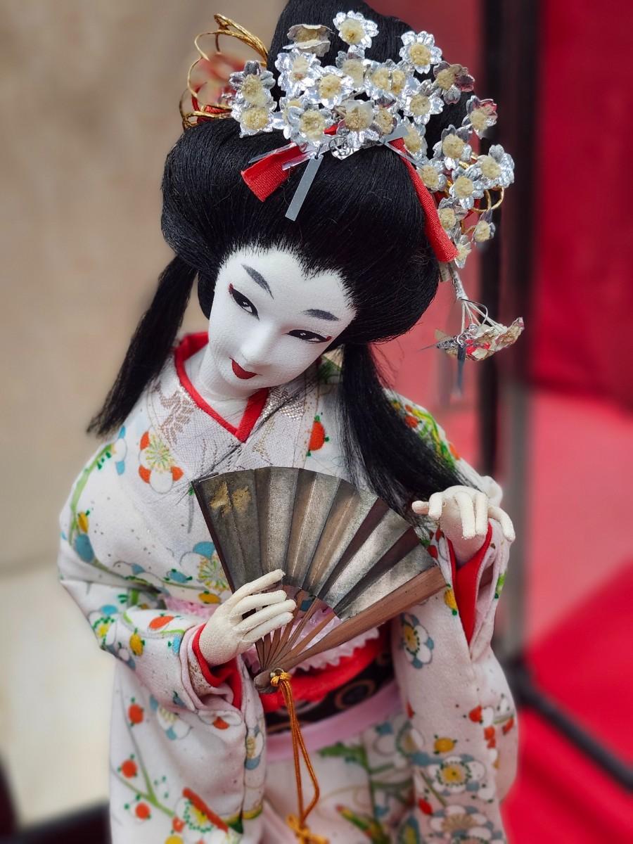 This very beautiful silk doll has been well cared for. She was purchased in Japan in the 1950s and was donated by the original owner. She is 17 inches tall. Similar pieces retail at ~ $350. Excellent condition. Will consider shipping, it will require special packing.