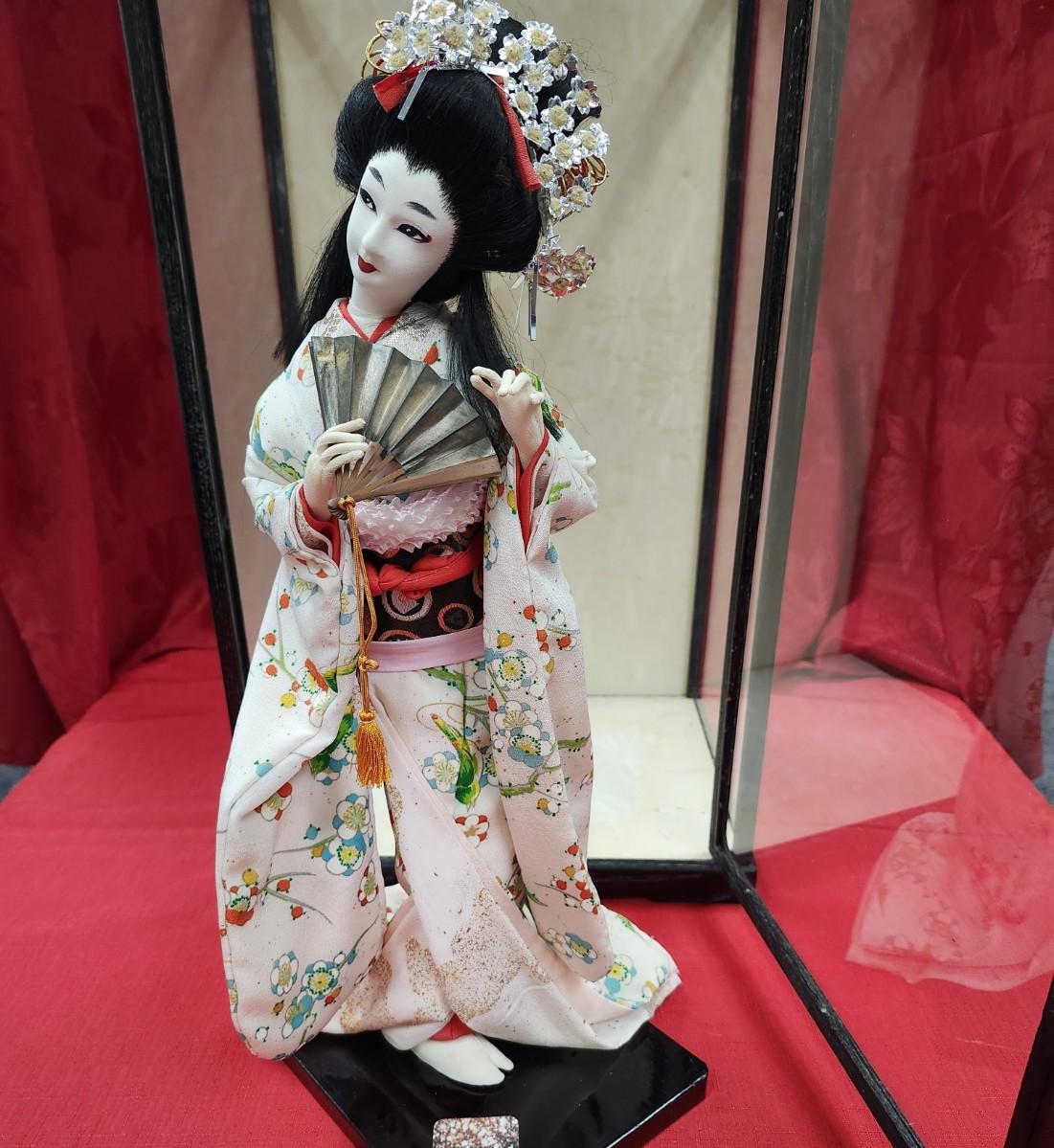 SILK Geisha Doll in Glass Case
