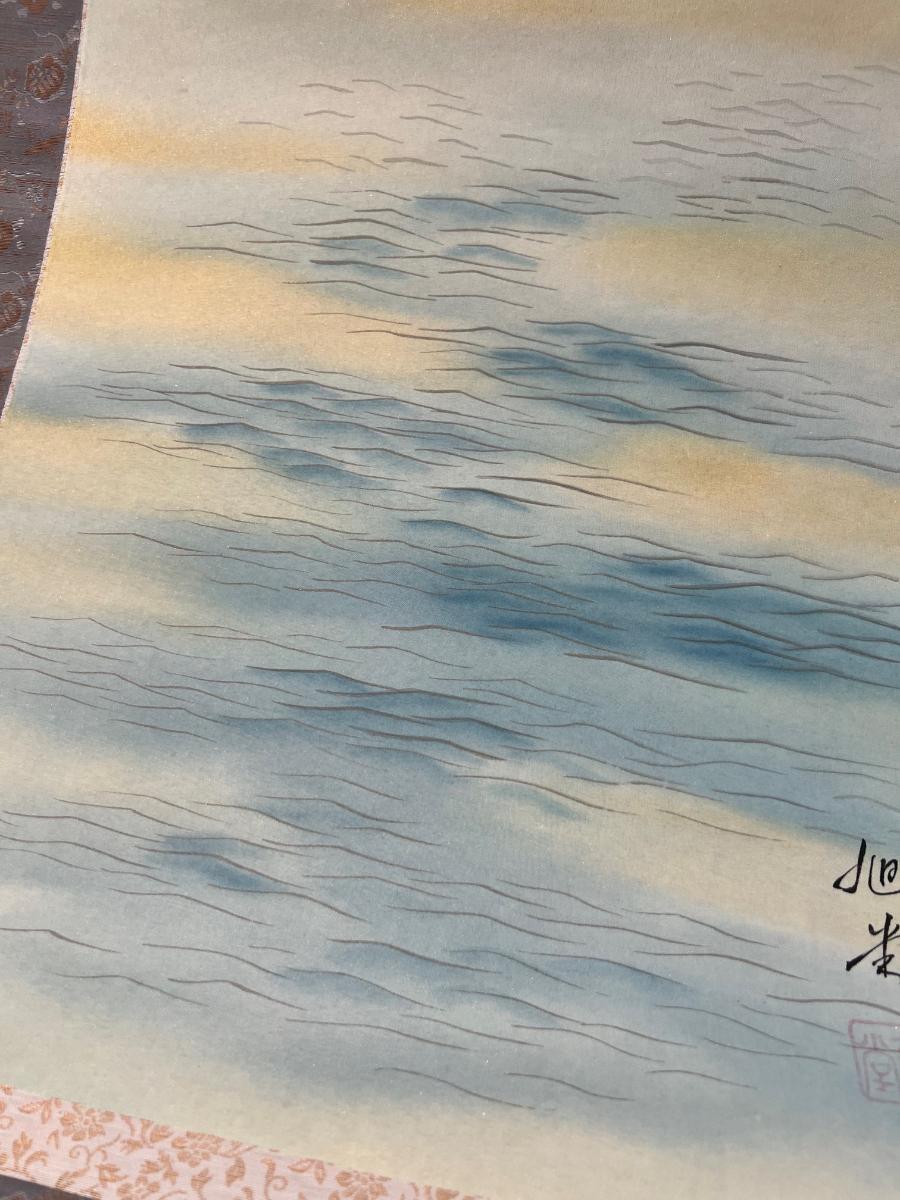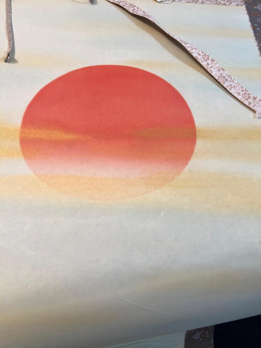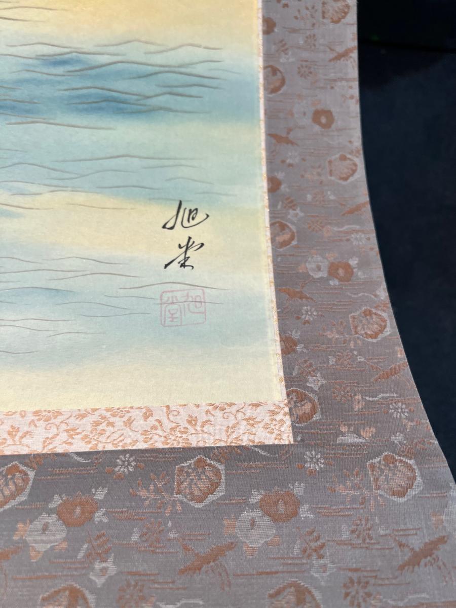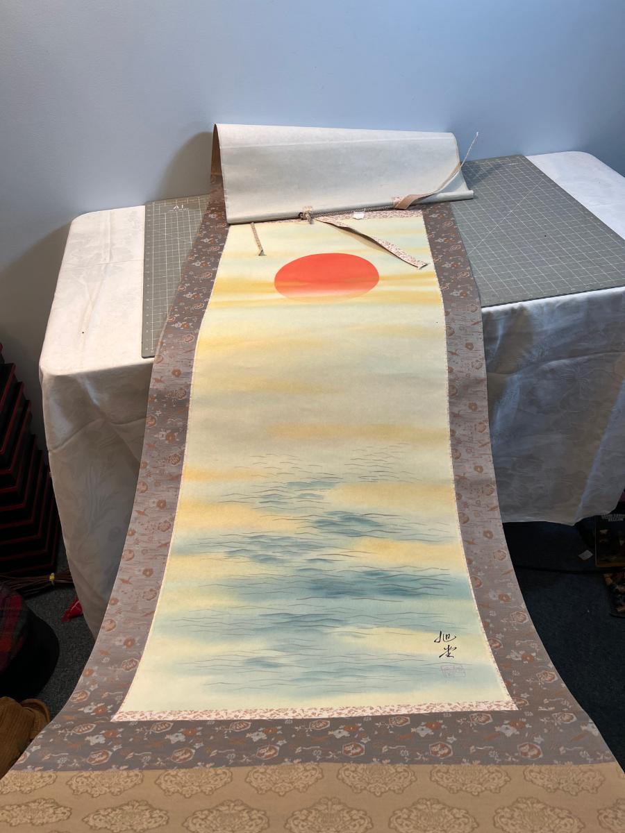 Silk Painting Scroll - Sun over the Ocean. Signed