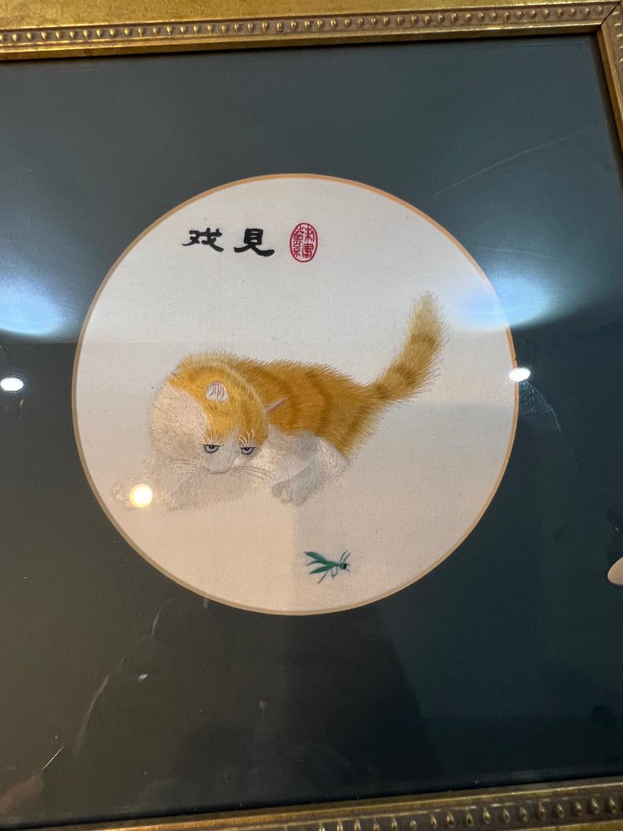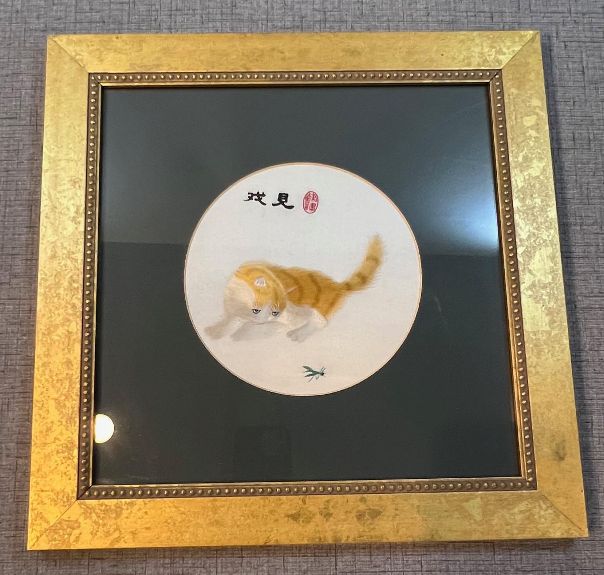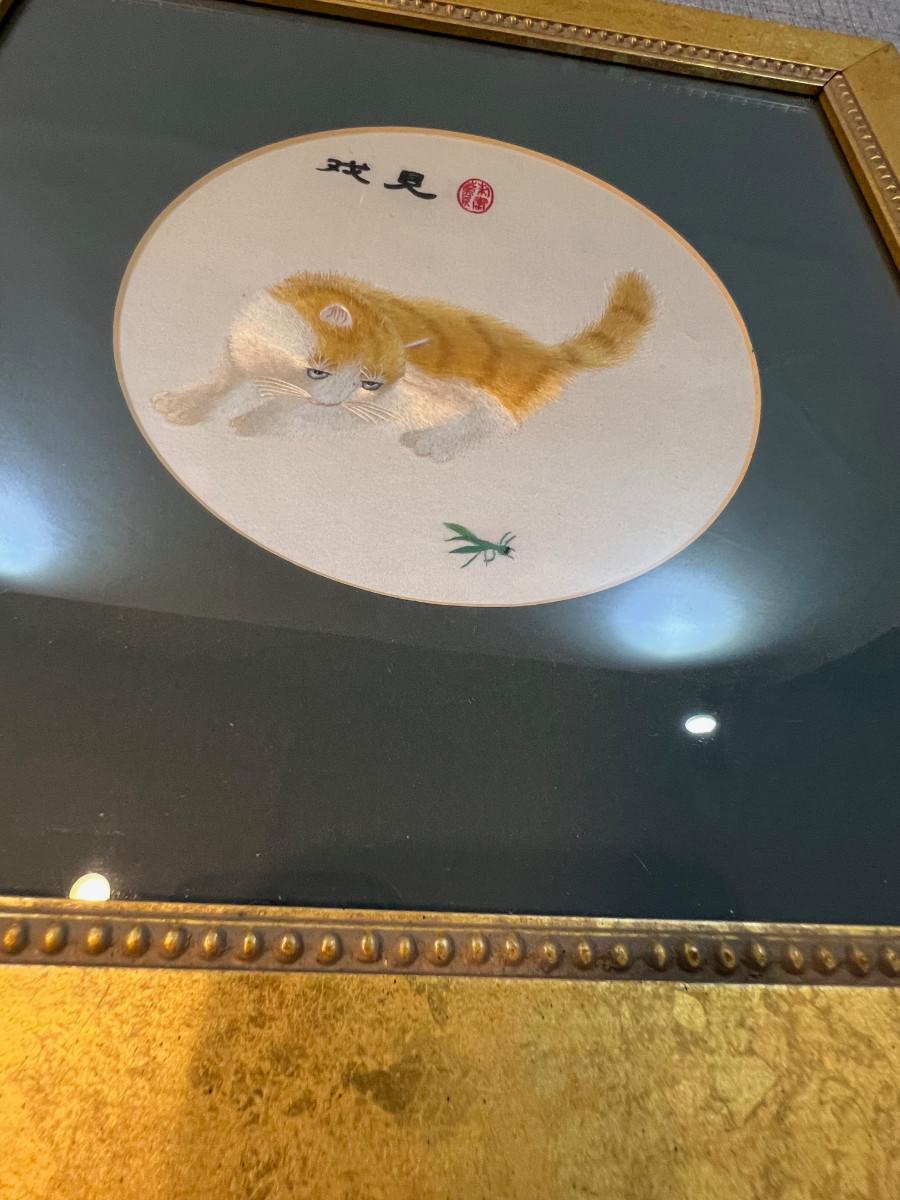 Silk Picture of Kitten and Grasshopper, No Shipping!