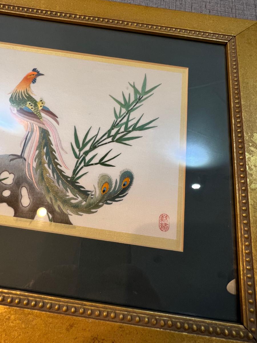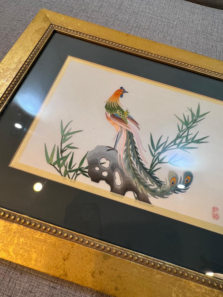 Silk Picture of Pheasant and Bamboo