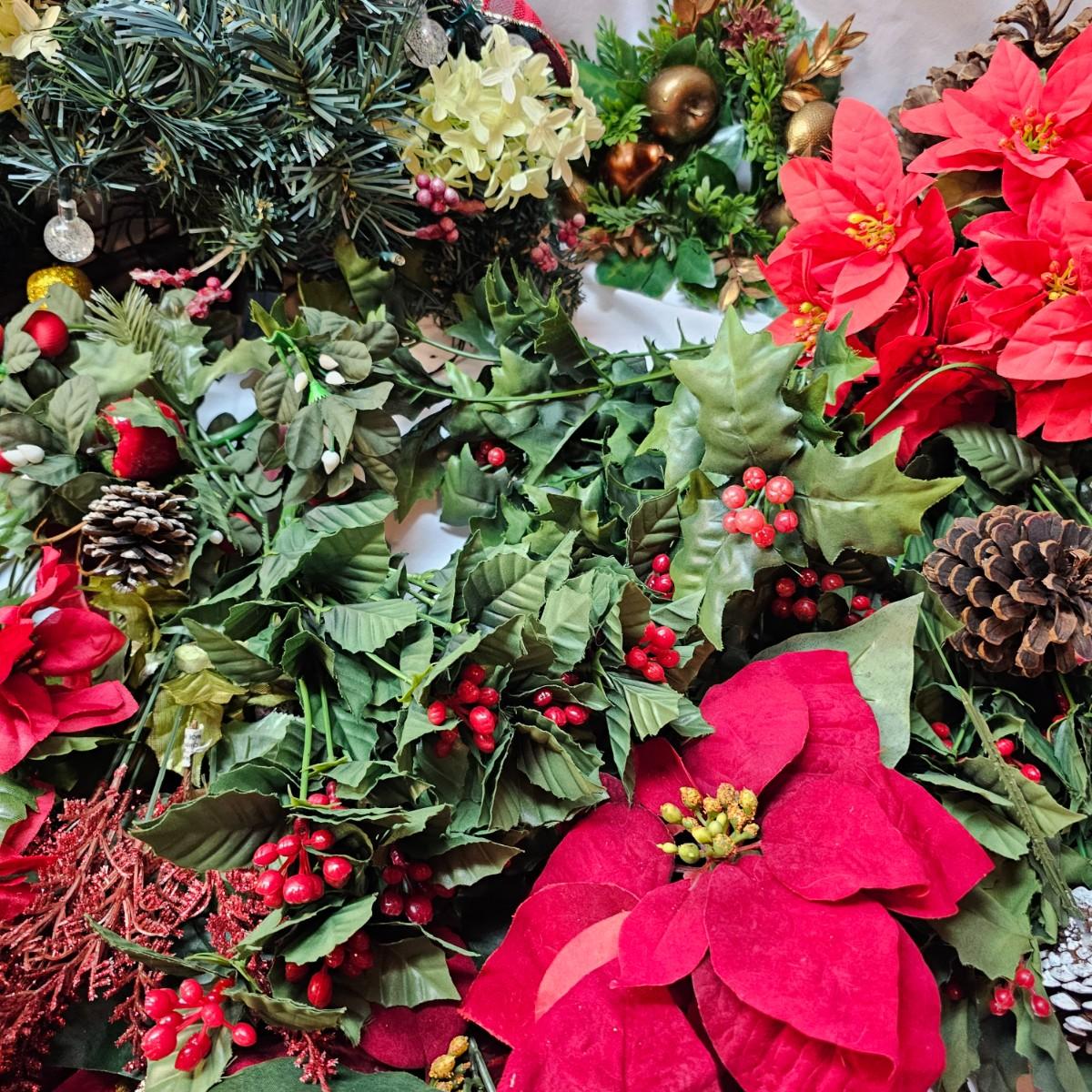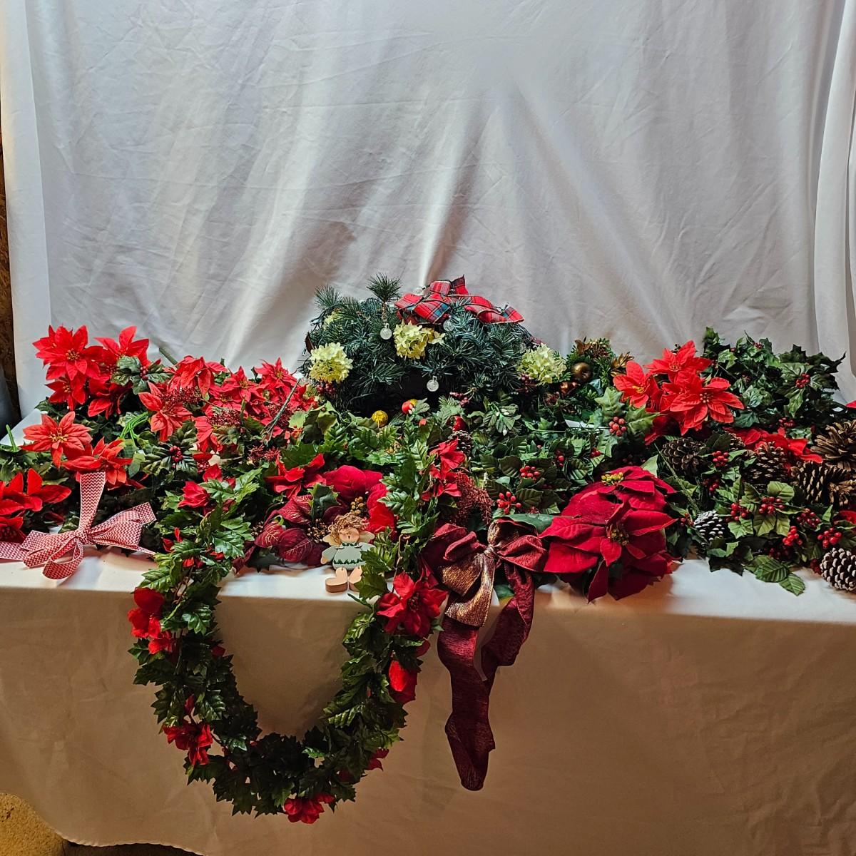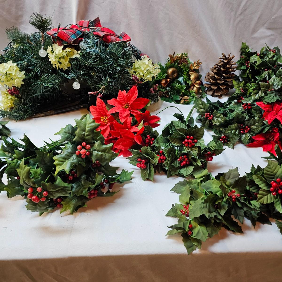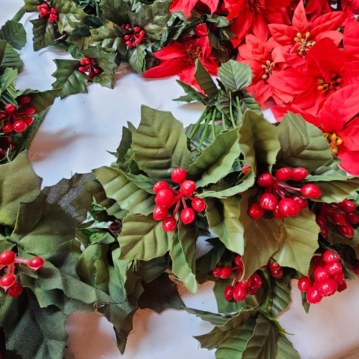 Silk Poinsettias, Greenery & Wrapping Items (S1-JS)