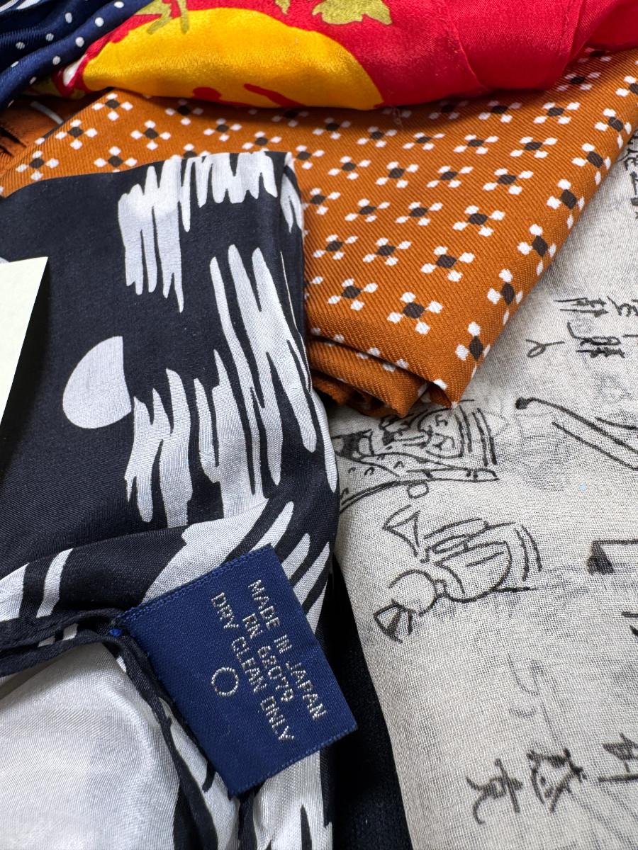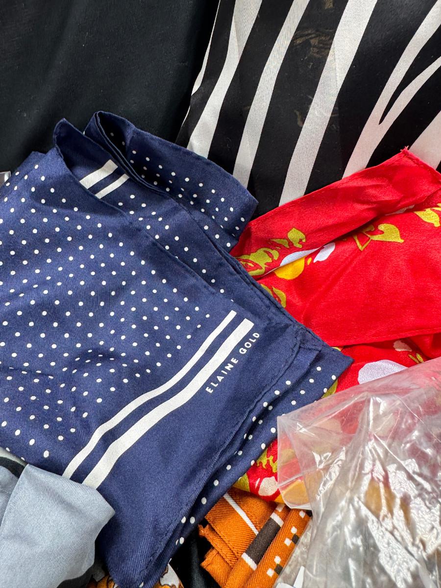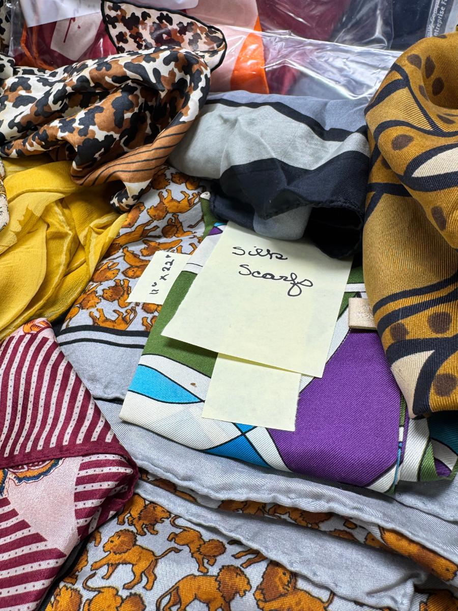selection of different silk scarves, some designer, some blends, all in good conditon.